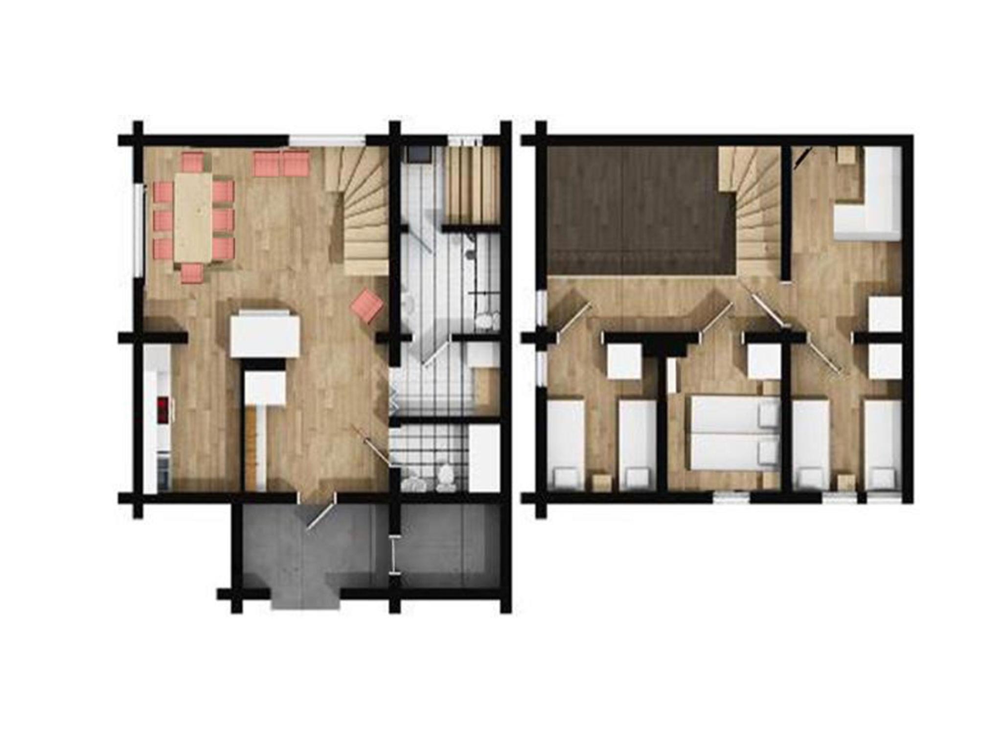 A log duplex apartment located 165 km north of Rovaniemi, in Ylläsjärvi village. Built 1991. Kitchen, living room, 3 x bedroom upstairs - 2 seperate beds in every room, tv-corner with bed sofa ( width 140 cm), electric sauna, washing room, toilet.