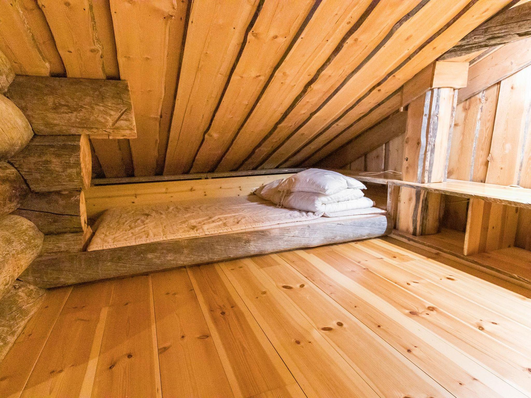 40 km North-East of Kolari, lake Ylläsjärvi 2,5 km, swimming beach 4 km. Log duplex apartment 1988 in Palovaara. Livingroom/kitchen (bar table as s dining table + 4 stools), two bedrooms, other with a double bed and other with a bunk bed and a loft (17 m², low room height). Electric sauna, shower, WC. Open porch. Travel bed for a child, feeding chair and potty.