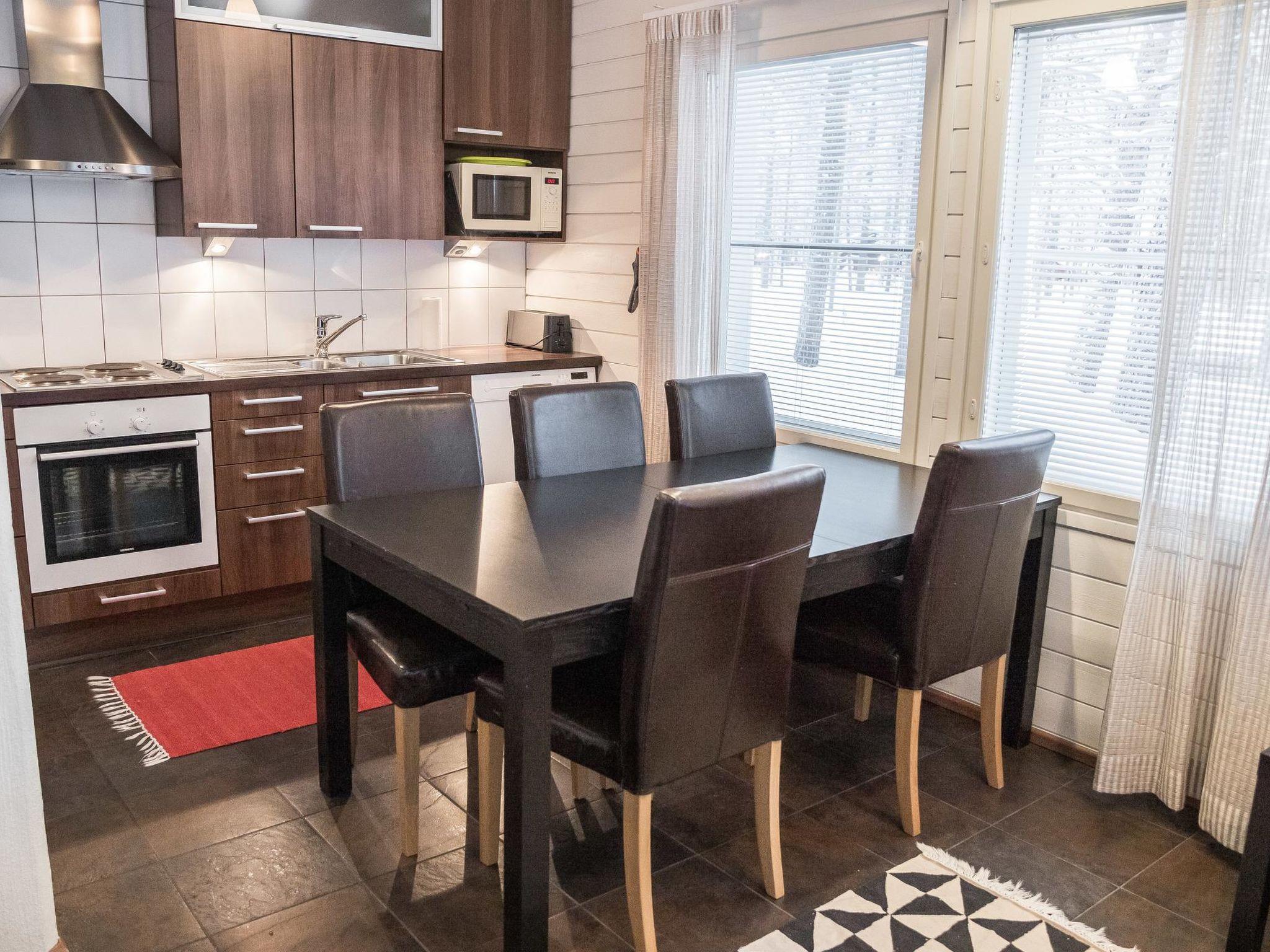 A duplex apartment located 165 km north of Rovaniemi in Maisematie area in Ylläsjärvi village. Combined living room-kitchen, two bedrooms - two beds in both rooms, two beds and mattress in loft (14 m²), sauna, washing room/toilet + one seperate toilet. Car shelter.