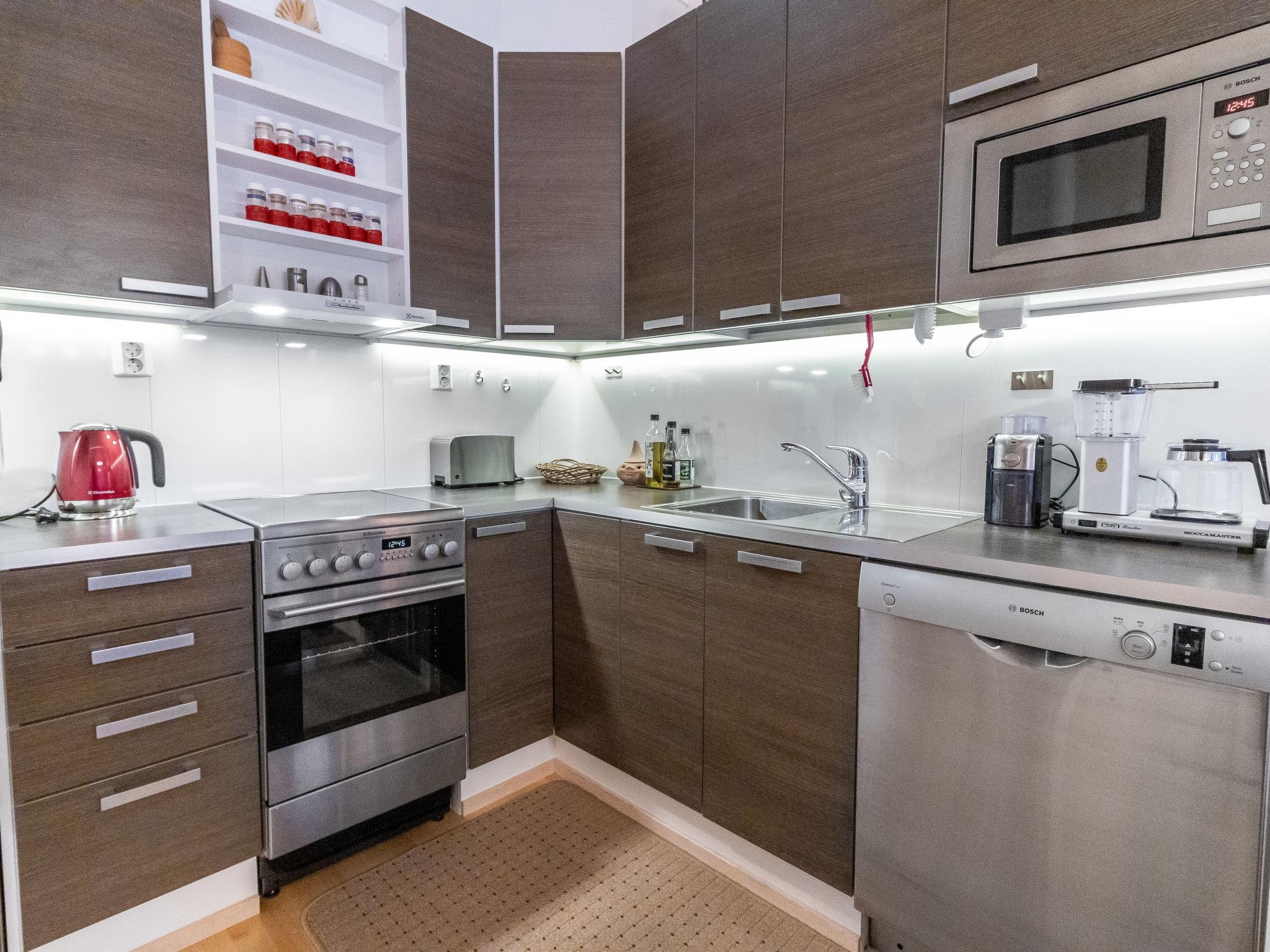 Built in 2011, the apartment has a floor area of 75 m², plus approximately 10 m² of additional space in the loft. The accommodation is suitable for up to 8 guests. The apartment features two bedrooms, each with a 160 cm wide double bed; in one of the bedrooms, the bed can be separated into two single beds. The upstairs loft has two 160 cm wide beds, which can also be separated if needed.