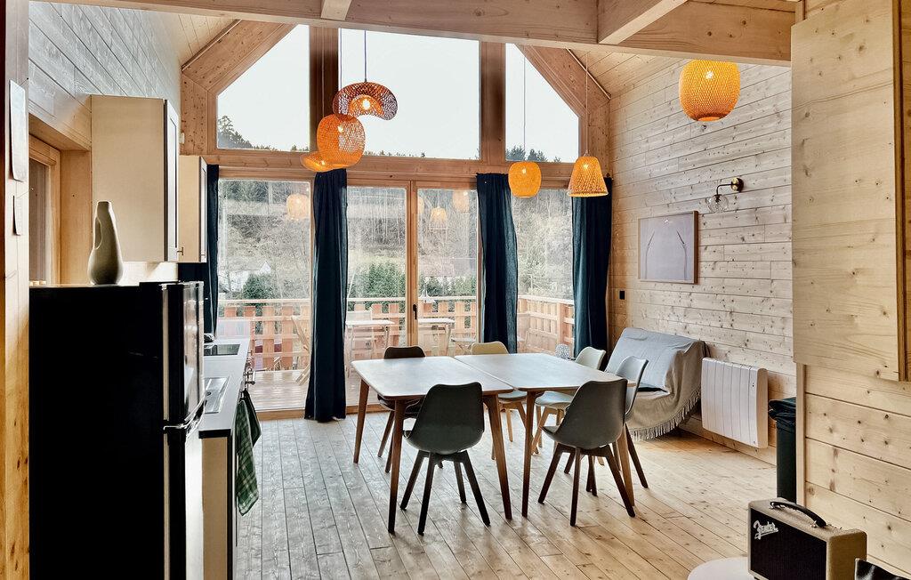 Oplev den fredfyldte charme ved en ferie i træhytte i Saint-Quirin, beliggende i Mosel Vosges, hvor naturen møder komfort. Denne ejendom består af tre forskellige hytter i skovkanten med en fantastisk udsigt over dalen. Loge 1 fungerer som hovedloge for to personer. Dens rummelige spisestue og terrasse inviterer til fælles sammenkomster. Det er spredt ud over cirka 47 m² og har en stue med en sovesofa, et veludstyret køkken, et brusebadeværelse og et åbent mezzanin-soveværelse med panoramaudsigt. Lodge 2, der også strækker sig over omkring 47 m², rummer komfortabelt fire gæster. Dens stue byder på fængslende udsigter, mens stueetagen er vært for et soveværelse, og ovenpå på mezzaninen er der et andet soveværelse med en betagende udsigt over dalen. Lodge 3, der dækker 23 m², har plads til to gæster. Dens tekøkken, stue åbner ud til en terrasse med en pragtfuld udsigt over dalen, et brusebad og en mezzanin giver komfort og en ærefrygtindgydende udsigt. Hver lodge har en privat terrasse med en grill, der tilbyder det perfekte sted at nyde det naturskønne landskab og nyde udendørs spisning. Bemærk venligst, at Lodge 1 har en åben mezzanin uden skillevægge mellem opholdsstuen og soveværelset. Lodge 2 og 3 giver sikret trappeadgang til deres mezzaniner uden stigrør. Oplev roen og skønheden ved Mosel Vogeserne i disse lyse, rummelige og uafhængige trælodges, som hver tilbyder et unikt perspektiv af de fredfyldte dalomgivelser. Landsbyen og dens restauranter ligger inden for gåafstand. Nabobyen Sarrebourg giver dig mulighed for at opdage Mosel historiske arv. Naturelskere vil være ivrige efter at besøge den enestående dyrepark Sainte Croix, eller blot at leje cykler i landsbyen for at udforske skovstierne. Lodgerne er også udgangspunktet for mange gå- og vandreture. Brøddepot, delikatesseforretning og cykeludlejning i landsbyen. Sommerbegivenheder og julemarkeder må ikke gå glip af i de omkringliggende landsbyer.