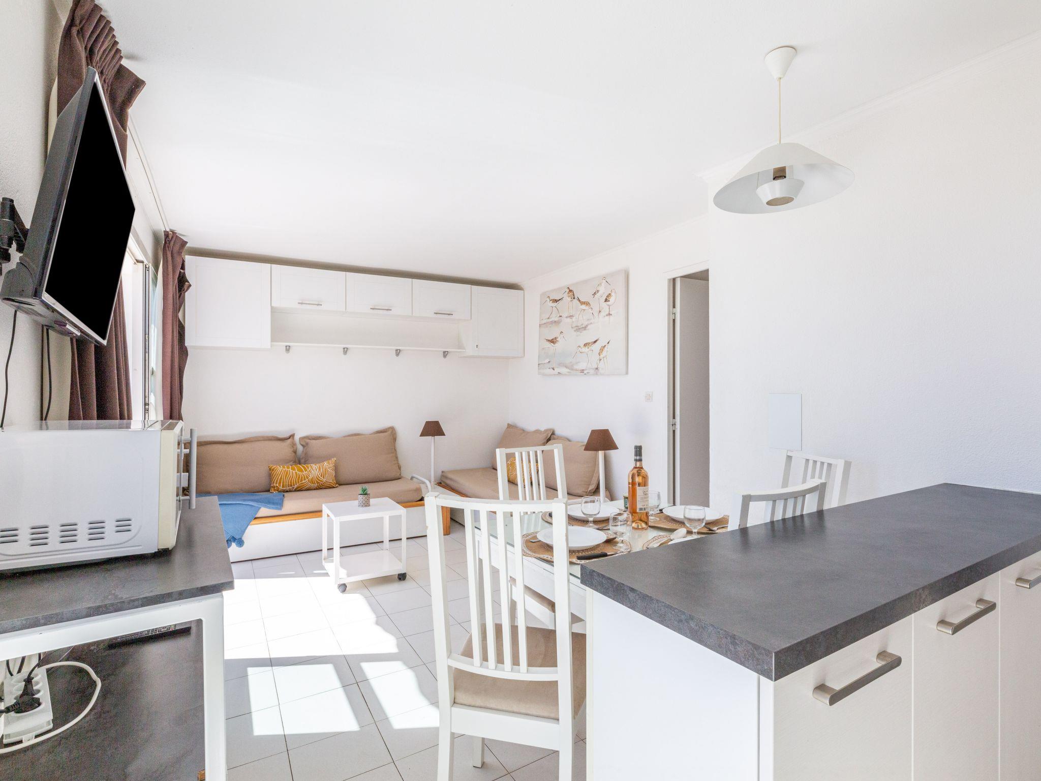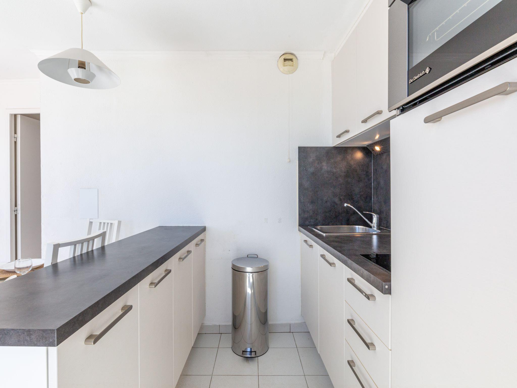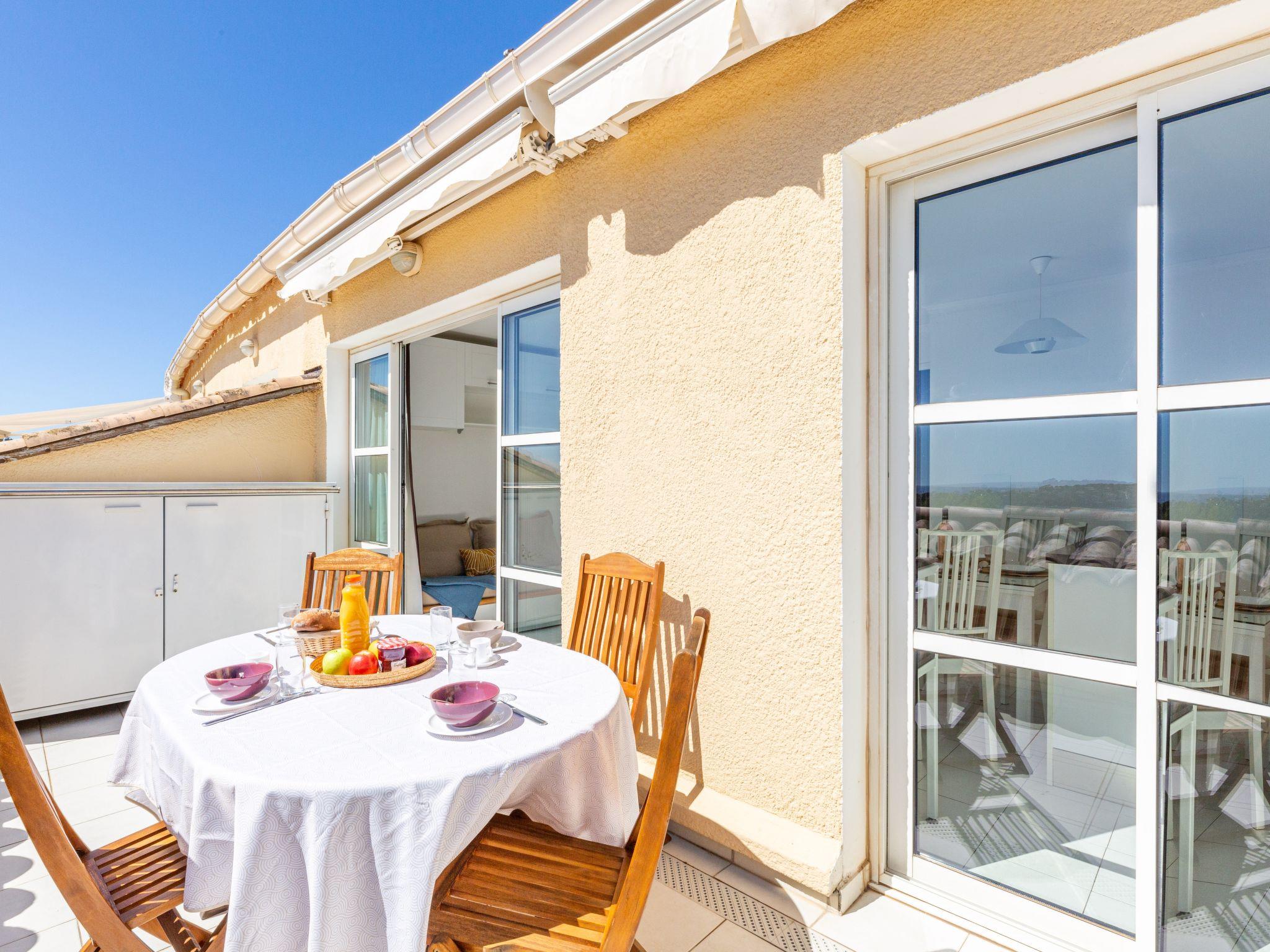 "Le Belvédère (V3 207)", 3-room apartment 45 m2 on 1st floor. Object suitable for 4 adults + 2 children. Spacious, comfortable furnishings: living room with 2 sofabeds (80 cm, length 190 cm), TV (flat screen). Exit to the terrace. 1 room with 1 french bed (140 cm, length 190 cm). Sleeping alcove with 1 x 2 bunk beds (80 cm, length 190 cm). Kitchenette (oven, dishwasher, 2 ceramic glass hob hotplates, toaster, kettle, microwave, freezer, electric coffee machine). Bathroom, shower/WC. Electric heating. Terrace 10 m2. Terrace furniture. Side view of the sea. Facilities: washing machine, children's high chair. Internet (WiFi, extra). Parking space n 2056 (roofed, 1 car), height 180 cm. Please note: non-smokers only. Smoke alarm. Instead of an enclosed bedroom, some sleeping areas are located in an open-plan area (gallery, alcove, etc.). Offer by a commercial proprietor according to Art. 155, IV, CGI
