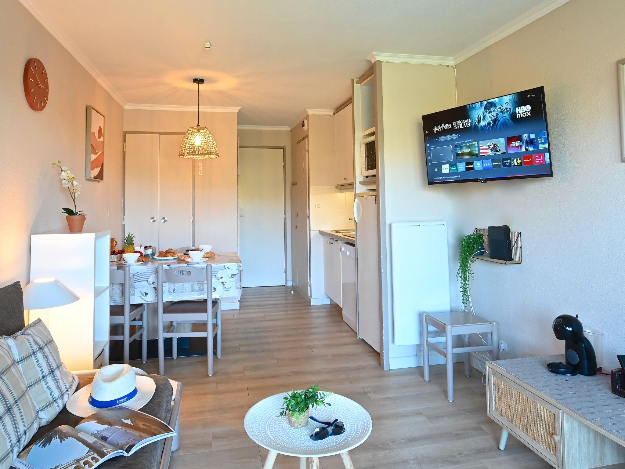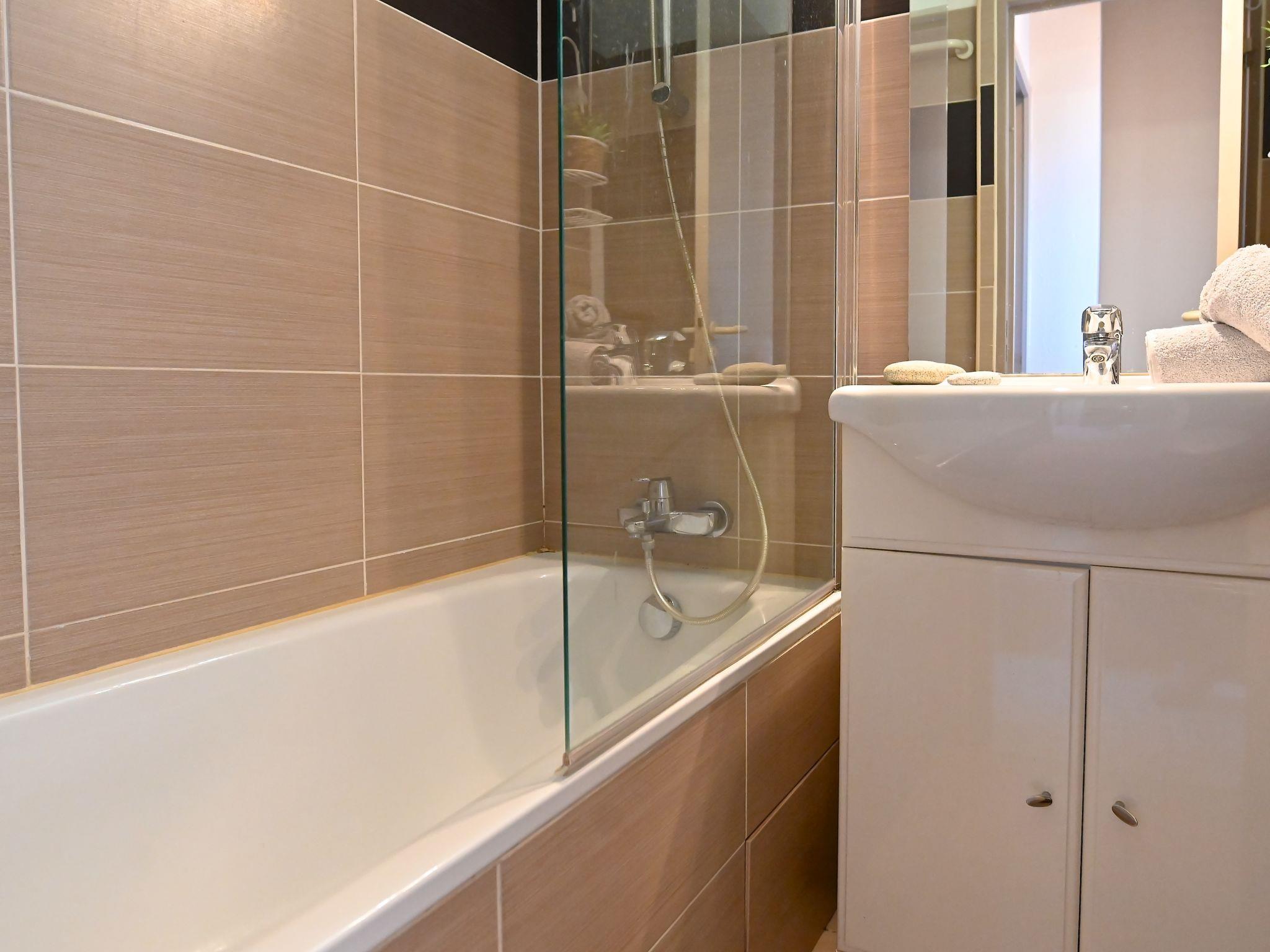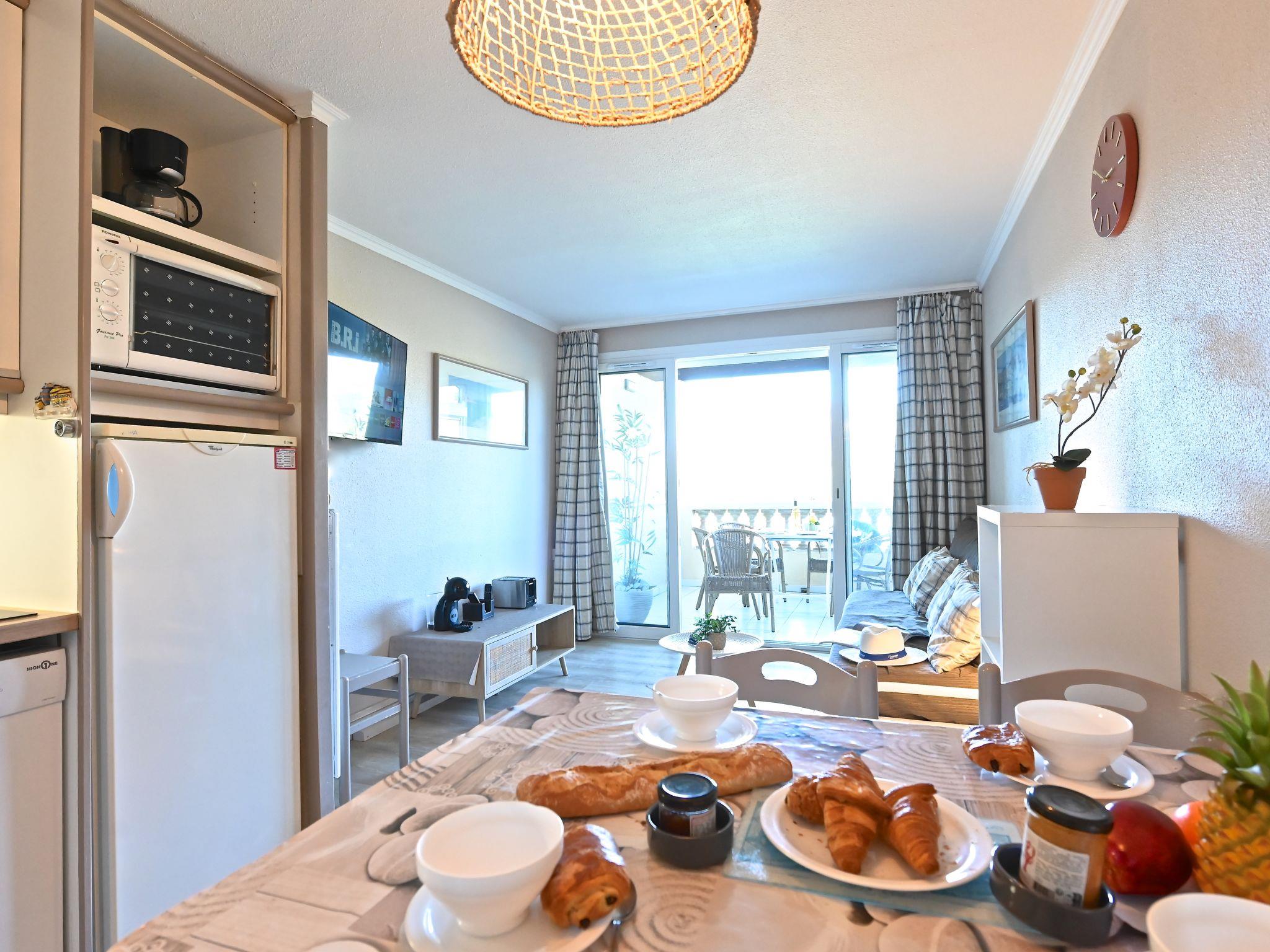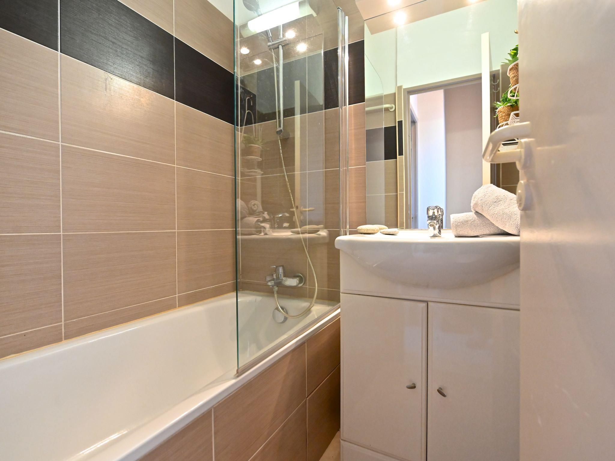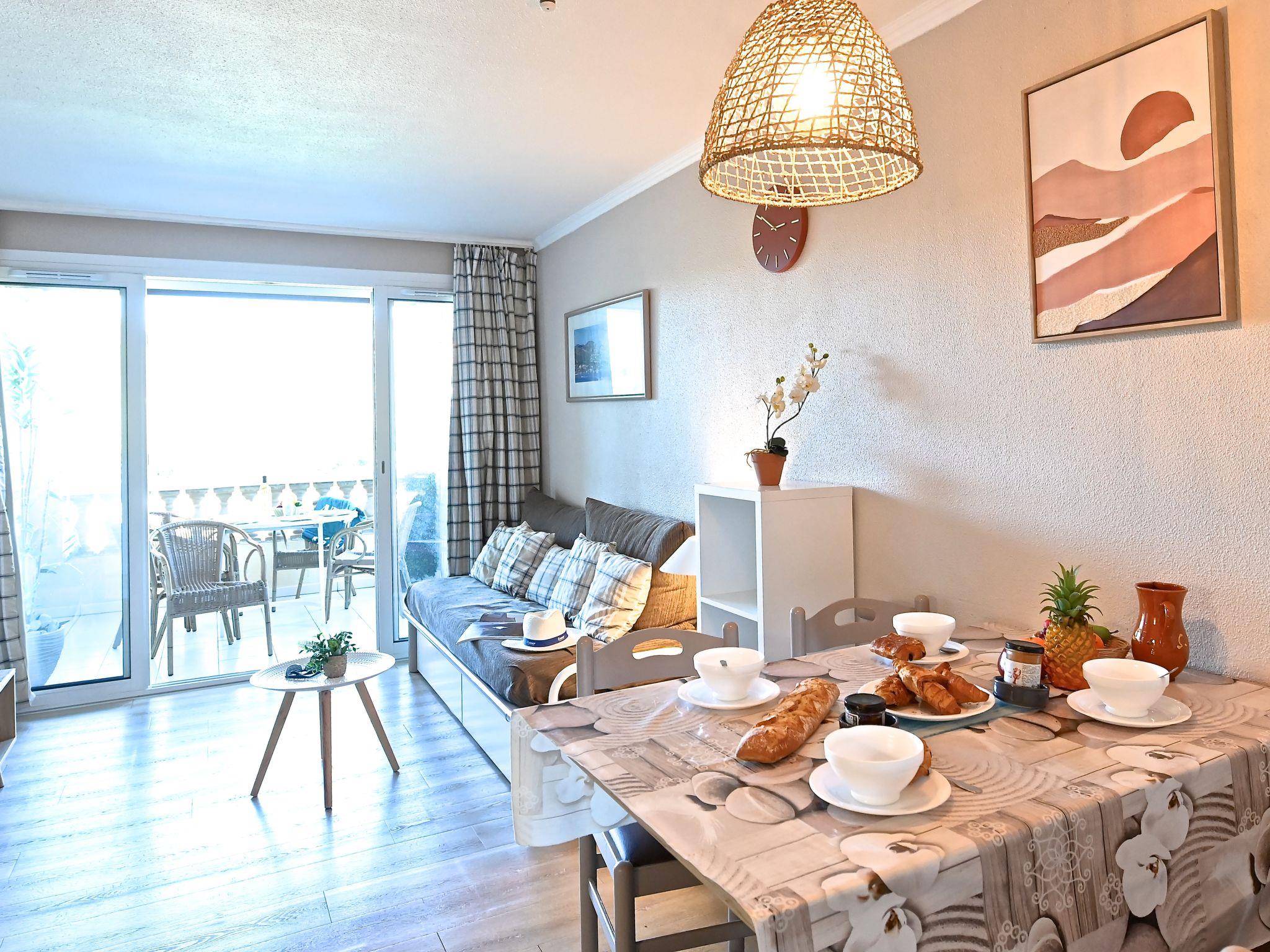 "Le Belvédère V1 202", 3-room apartment 37 m2 on 2 levels on 1st floor. Partly renovated in 2025, comfortable furnishings: living room with 1 double sofabed (2 x 80 cm, length 190 cm), TV (flat screen), air conditioning. Exit to the terrace. Kitchenette (dishwasher, 4 ceramic glass hob hotplates, toaster, kettle, microwave, freezer, electric coffee machine). Shower/WC. Upper floor: 1 room with 1 french bed (140 cm, length 190 cm). Exit to the terrace. Sleeping alcove with 1 x 2 bunk beds (80 cm, length 190 cm). Bath/WC. Terrace 15 m2, roofed, east facing position, small terrace 4 m2. Terrace furniture. Side view of the sea and the mountains. Facilities: washing machine. Internet (WiFi, free). Parking space n 2040 (roofed, 1 car), height 180 cm. Please note: non-smokers only. Smoke alarm. Offer by a private individual according to Art. 155, IV of CGI.