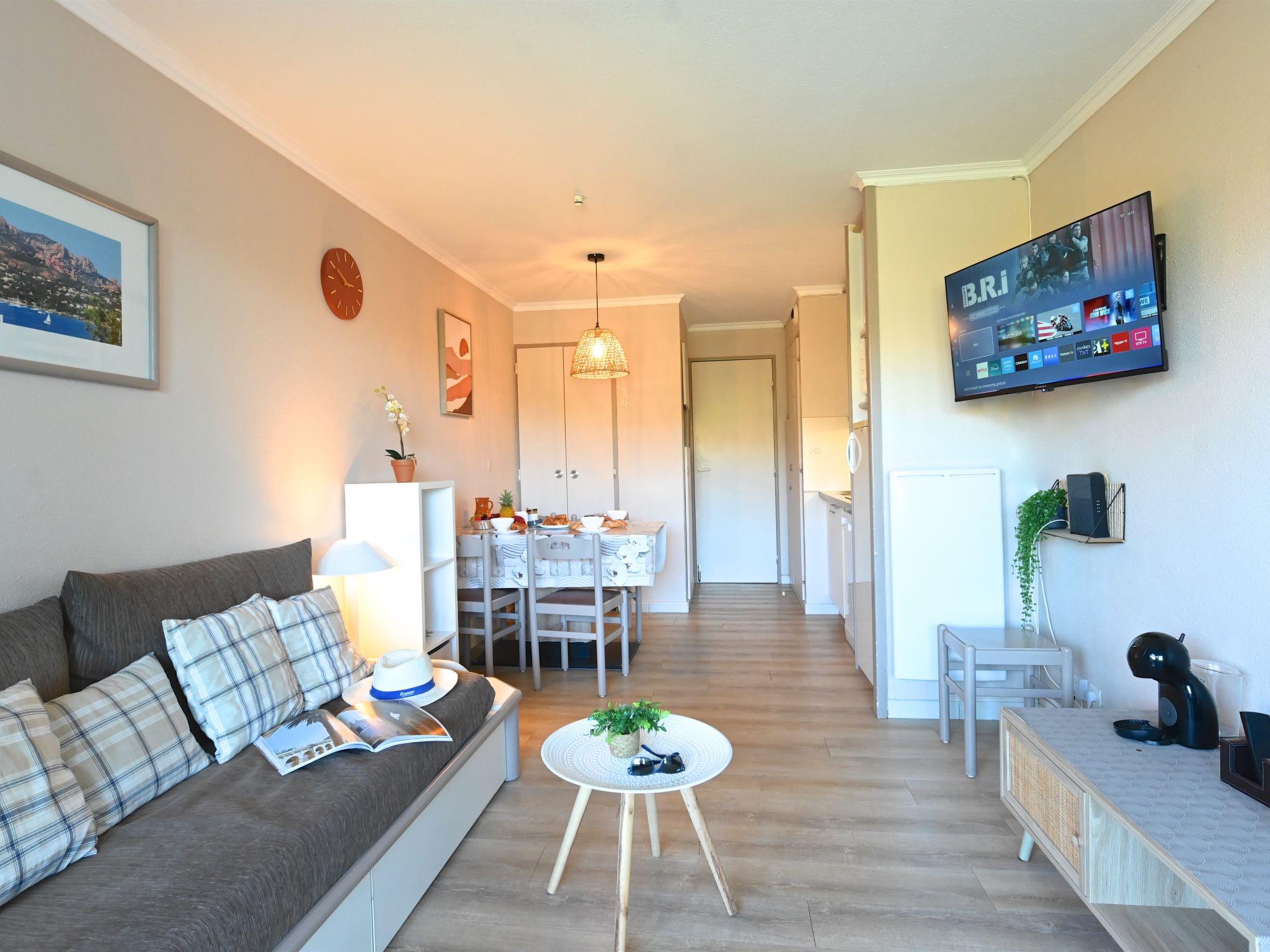 Large resort "Village Cap Estérel - Le Belvédère". On the outskirts, 2 km from the centre of Agay, on a slope, in the residential district, 400 m from the sea, 350 m from the beach, road to cross, on the golf course, in a pedestrian area. For shared use: park 210 ha, 5 swimming pools (seasonal availability: 06.Apr. - 03.Nov.). Children's pool, boccia, children's playground (slide, swing). In the complex: spa area (extra), shopping facilities, laundry (extra). Shop, grocery 200 m, supermarket 6 km, restaurant 150 m, bakery 500 m, bus stop "Ligne 21" 300 m, railway station "Saint-Raphaël-Valescure TGV" 9 km, sandy beach "Tiki Plage" 900 m. Marina 1 km, golf course (9 hole), tennis 500 m. Nearby attractions: Anthéor 8 km, Saint-Raphaël 9 km, Fréjus 13 km, Cannes 33 km, Saint-Tropez 50 km, Nice 76 km. Well-known lakes can easily be reached: Lac Saint-Cassien. Hiking paths: Massif de l'Estérel. Please note: car-free holiday complex, no lift. Entertainment in the season. Suitable for families, childminding in the season (extra). Guarded residence. The keys‘ handover takes place by the agency Interhome in Cap Estérel. Additional accommodations can be booked. Access to the apartments is via steps, even on the ground floor.