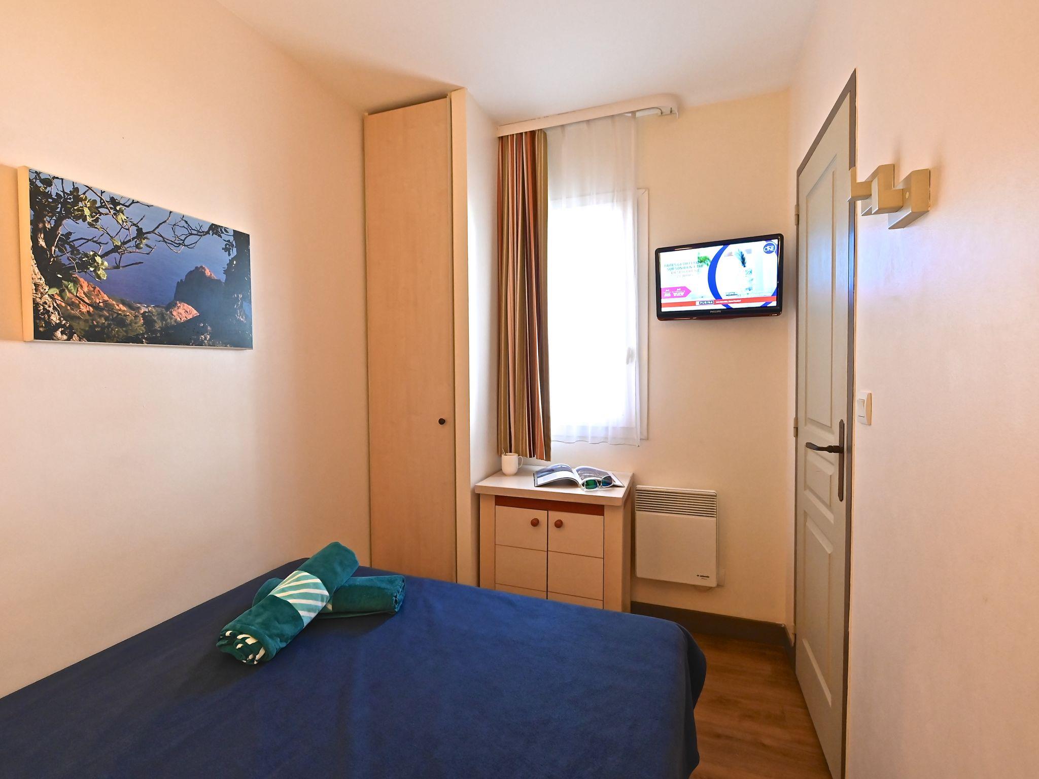 "Le Village (C4228)", 2-room apartment 28 m2 on 1st floor, south facing position. Beautiful furnishings: living room with 1 pull-out bed (2 x 80 cm, length 190 cm), TV (flat screen). Exit to the terrace. 1 room with 1 french bed (140 cm, length 190 cm), air conditioning. Kitchenette (dishwasher, 4 ceramic glass hob hotplates, toaster, kettle, microwave, electric coffee machine, Capsules for coffee machine (Senseo) extra). Bathroom, sep. WC. Electric heating. Terrace 8 m2, south facing position. Terrace furniture. Beautiful view of the sea and golf course. Facilities: Internet (WiFi, extra). Parking space n 2026 (roofed, 1 car), height 180 cm. Please note: non-smokers only. Maximum 1 small pet/ dog allowed. Smoke alarm. Offer by a private individual according to Art. 155, IV of CGI.