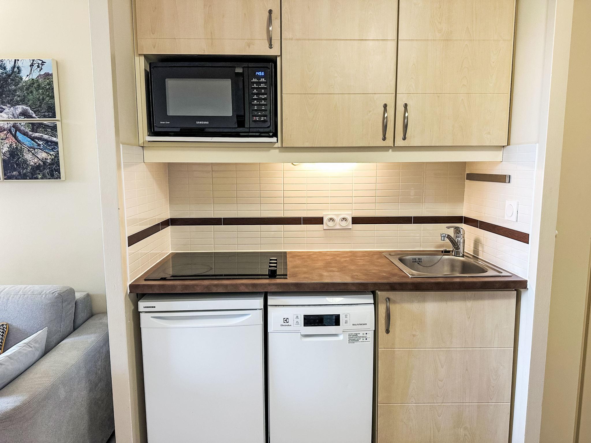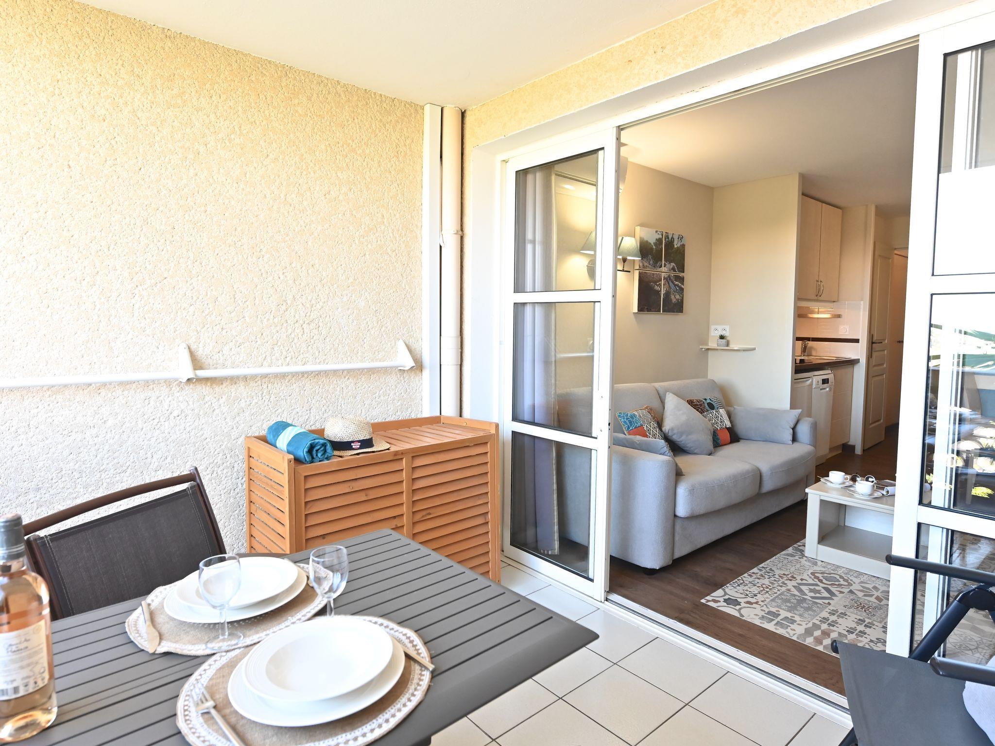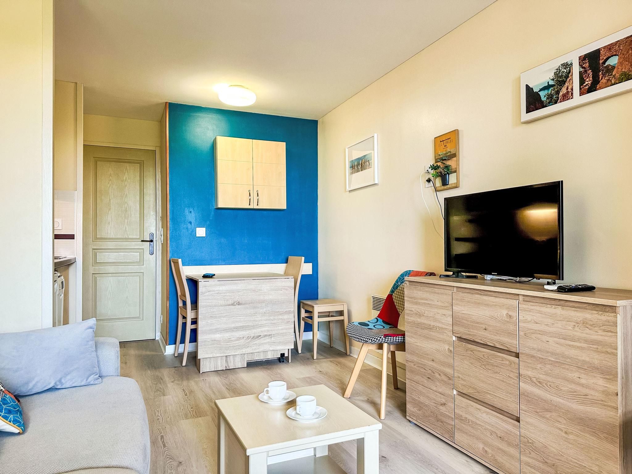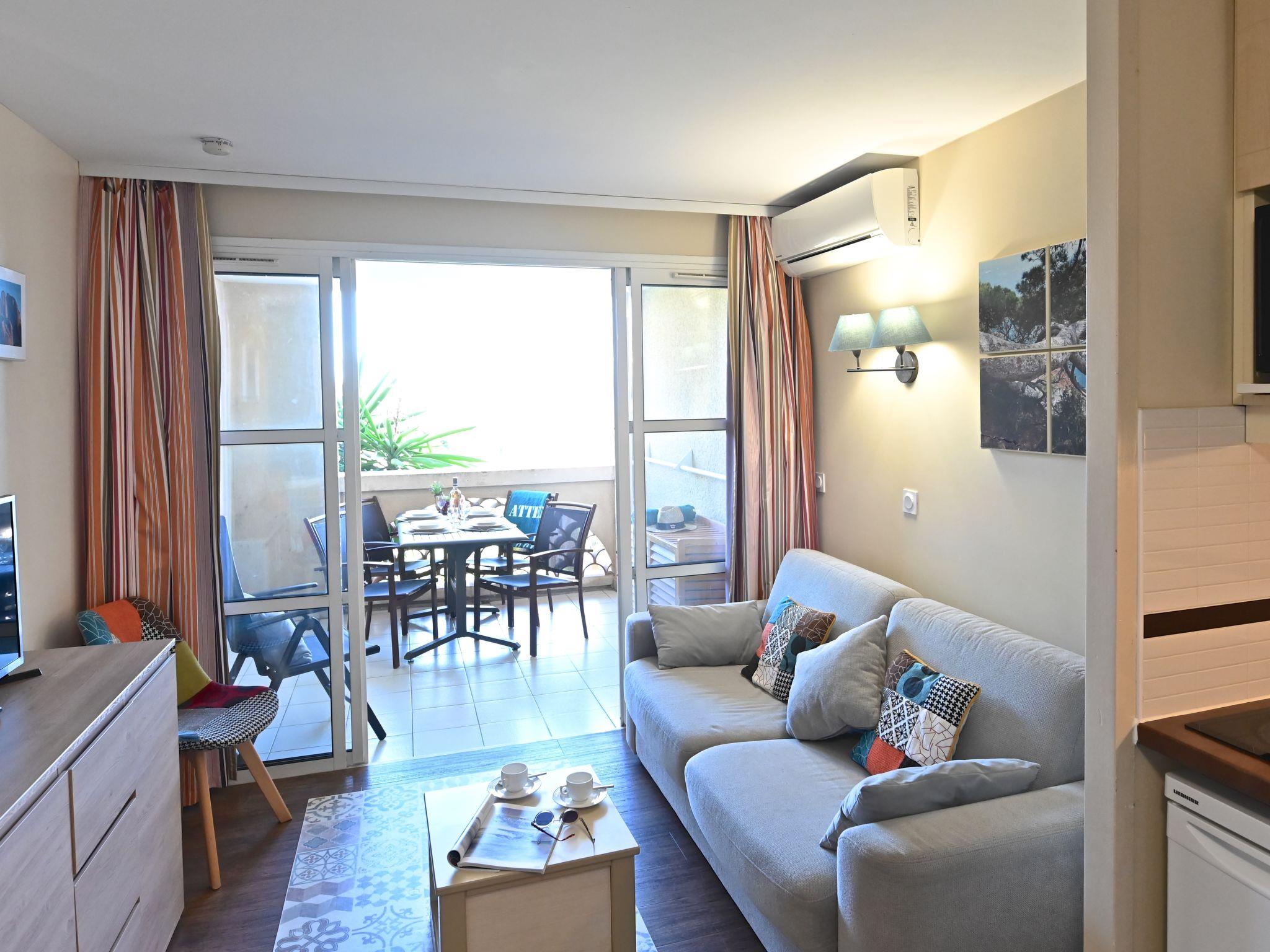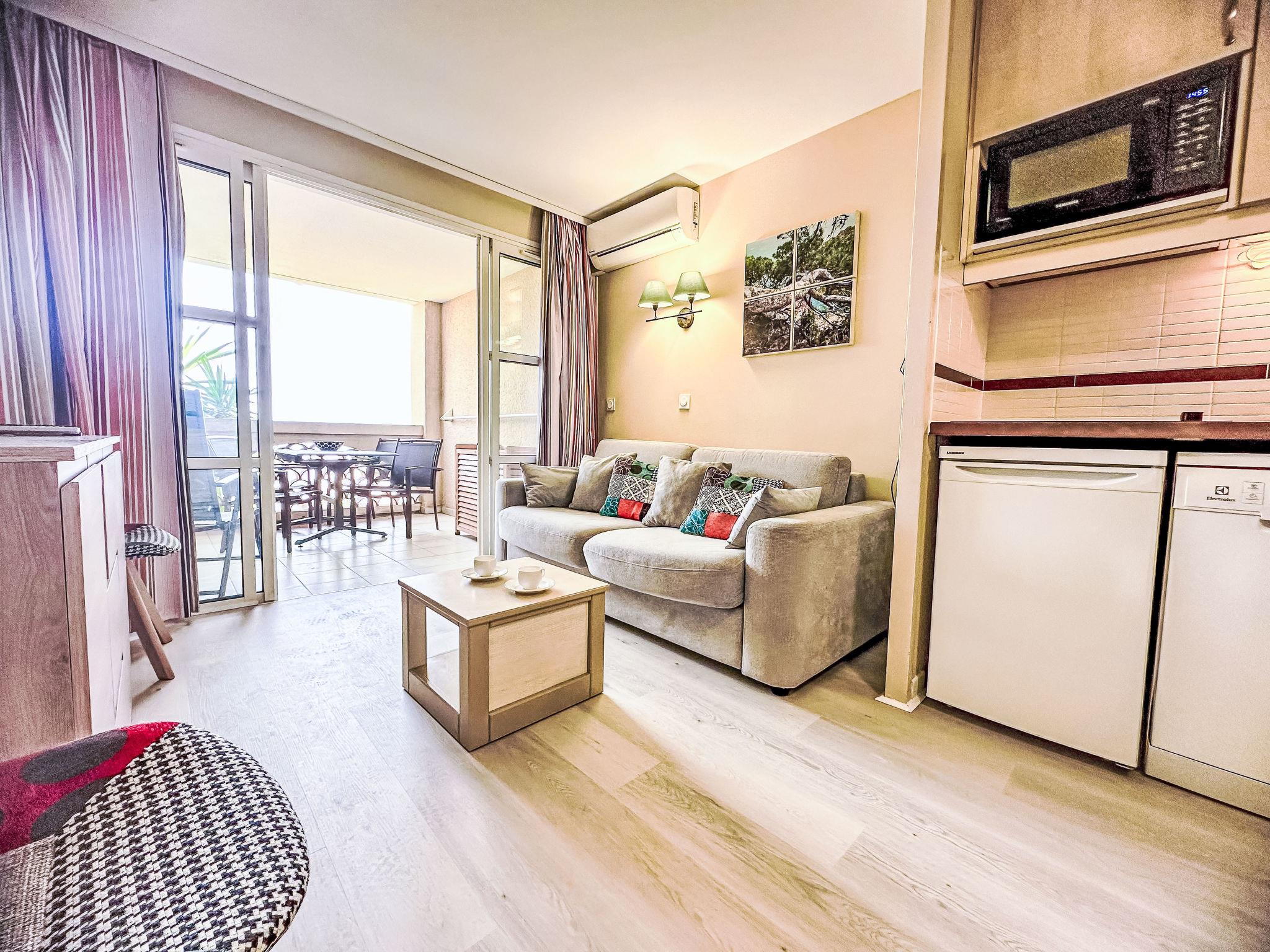 "L'Esquinade (J5 113)", 2-room apartment 28 m2 on 1st floor, south-east facing position. Object suitable for 4 adults. Bright, partly renovated in 2023, comfortable and beautiful furnishings: living room with 1 sofabed (140 cm, length 190 cm), TV (flat screen). Exit to the terrace, south facing position and east facing position. 1 room with 1 french bed (1 x 140 cm, length 190 cm). Kitchenette (4 hot plates, dishwasher, 4 ceramic glass hob hotplates, toaster, kettle, microwave, electric coffee machine, Capsules for coffee machine (NESPRESSO) extra). Bathroom, sep. WC. Electric heating, air-conditioning. Terrace 10 m2, south facing position and, east facing position. Terrace furniture. Very beautiful view of the sea. Facilities: Internet (WiFi, extra). Parking space n 2232 (roofed, 1 car), height 180 cm. Please note: non-smokers only. Maximum 1 pet/ dog allowed. Smoke alarm. Offer by a private individual according to Art. 155, IV of CGI.