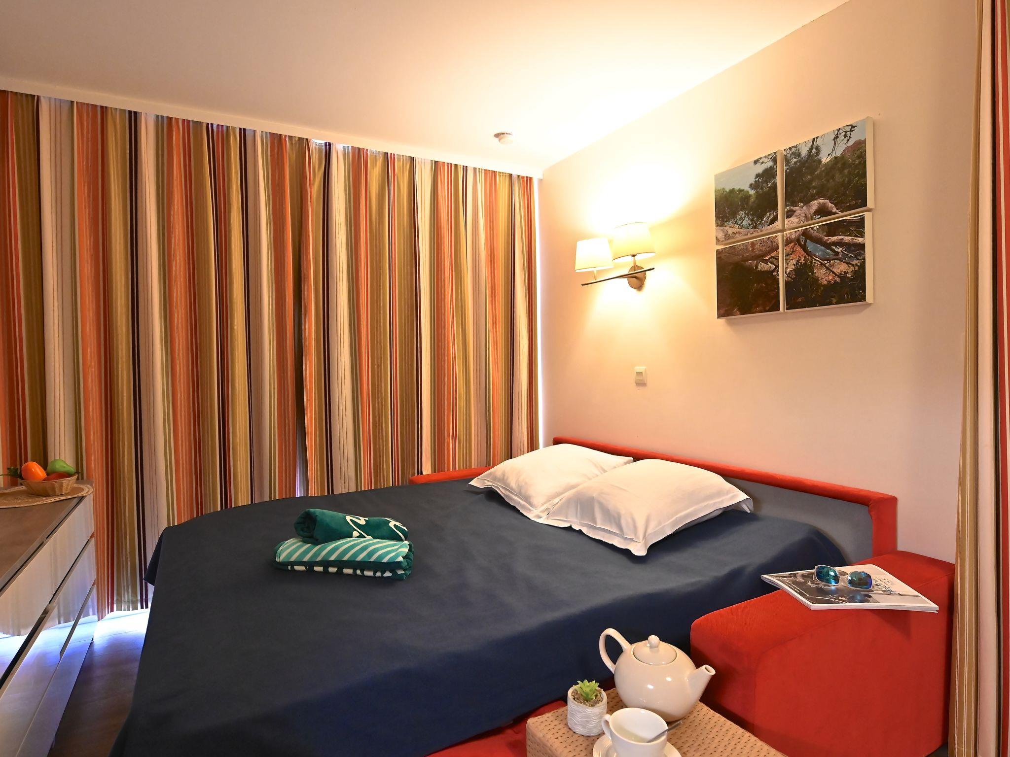 Large resort "Village Cap Estérel - L'Esquinade", built in 1990. On the outskirts, 2 km from the centre of Agay, on a slope, in the residential district, 900 m from the sea, 900 m from the beach, road to cross, on the golf course, in a pedestrian area. For shared use: park 210 ha, 5 swimming pools (seasonal availability: 06.Apr. - 03.Nov.). Children's pool, boccia, children's playground (slide, swing). In the complex: spa area (extra), shopping facilities, laundry (extra). Shop, grocery 500 m, supermarket 6 km, restaurant, bakery, café, bicycle rental 500 m, bus stop "Ligne 21" 300 m, railway station "Saint-Raphaël-Valescure - Agay" 9 km, sandy beach "Le Pourrousset" 800 m. Marina 1 km, golf course (9 hole) 300 m, tennis 500 m. Nearby attractions: Anthéor 8 km, Saint-Raphaël 9 km, Fréjus 13 km, Cannes 33 km, Saint-Tropez 50 km, Nice 76 km. Well-known lakes can easily be reached: Lac Saint-Cassien. Hiking paths: Massif de l'Estérel. Please note: car-free holiday complex, no lift. Entertainment in the season. Suitable for families, childminding in the season (extra). Guarded residence. The keys‘ handover takes place by the agency Interhome in Cap Estérel. The apartment is located in a zone with limited traffic. Additional accommodations can be booked. Access to the apartments is via steps, even on the ground floor.