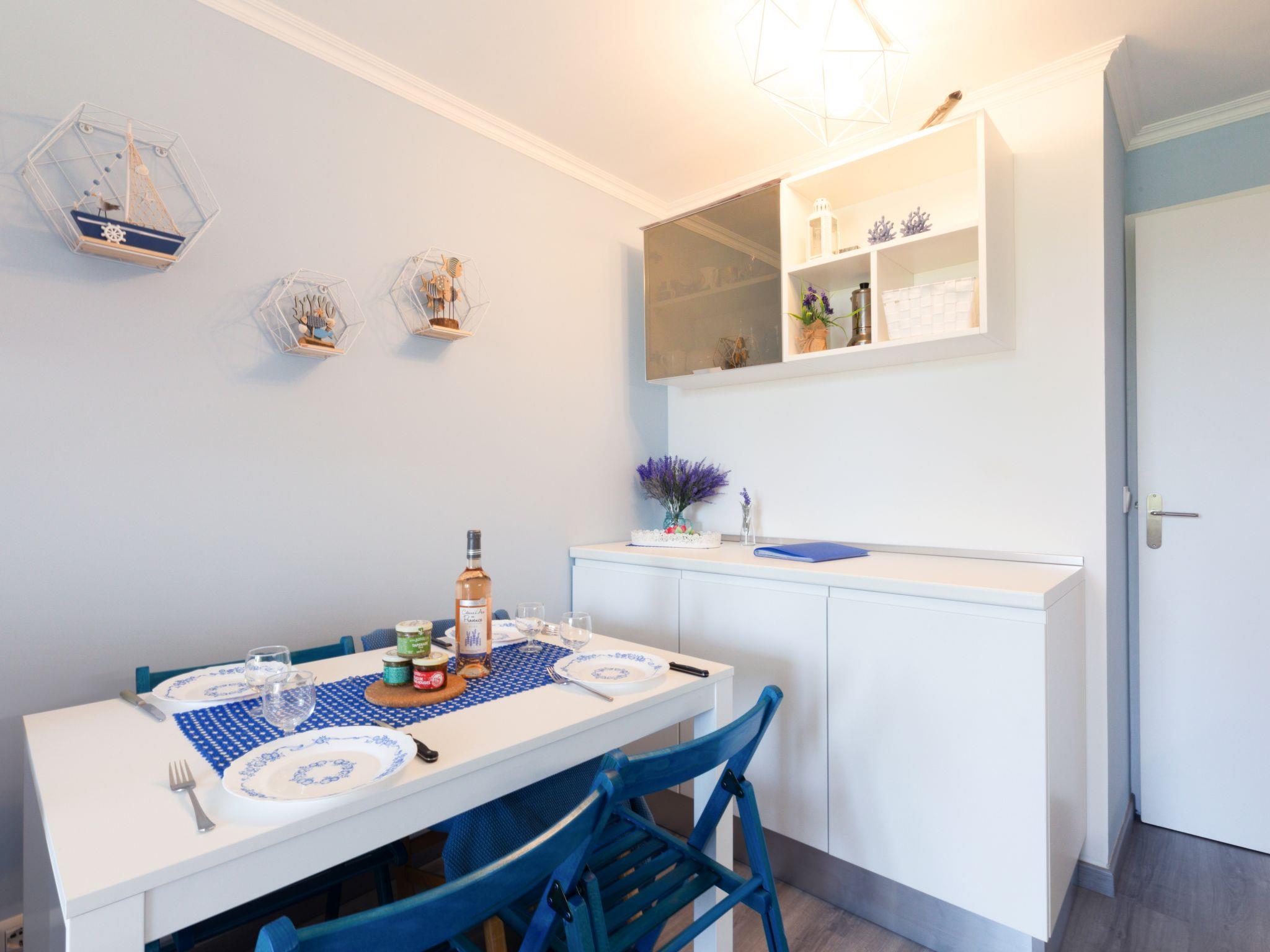 "L'Esquinade (F6 019)", 2-room apartment 28 m2, on the ground floor. Living room with 1 pull-out bed (2 x 80 cm, length 190 cm), TV (flat screen). Exit to the terrace. 1 room with 1 french bed (160 cm, length 200 cm). Kitchenette (4 hot plates, dishwasher, toaster, kettle, microwave, electric coffee machine, Capsules for coffee machine (Tassimo) extra). Bathroom, sep. WC. Electric heating. Terrace 10 m2. Terrace furniture. Distant view of the sea. Facilities: washing machine. Internet (WiFi, extra). Parking space n 2572 (roofed, 1 car), height 180 cm. Please note: non-smokers only. Maximum 1 pet/ dog allowed. Smoke alarm. Offer by a private individual according to Art. 155, IV of CGI.