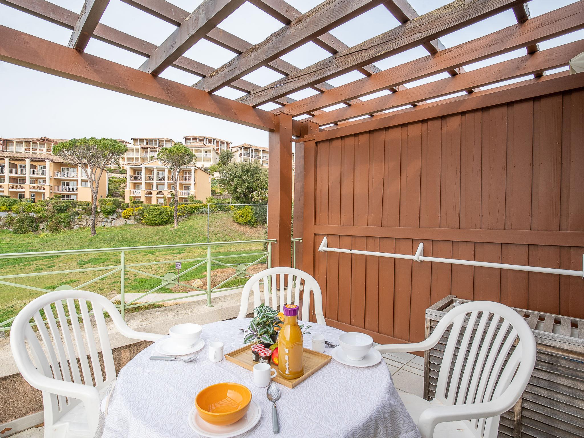 Large resort "Village Cap Estérel - L'Esquinade", built in 1990. On the outskirts, 2 km from the centre of Agay, on a slope, in the residential district, 900 m from the sea, 900 m from the beach, road to cross, on the golf course, in a pedestrian area. For shared use: park 210 ha, 5 swimming pools (seasonal availability: 06.Apr. - 03.Nov.). Children's pool, boccia, children's playground (slide, swing). In the complex: spa area (extra), shopping facilities, laundry (extra). Shop, grocery 500 m, supermarket 6 km, restaurant, bakery, café, bicycle rental 500 m, bus stop "Ligne 21" 300 m, railway station "Saint-Raphaël-Valescure - Agay" 9 km, sandy beach "Le Pourrousset" 800 m. Marina 1 km, golf course (9 hole) 300 m, tennis 500 m. Nearby attractions: Anthéor 8 km, Saint-Raphaël 9 km, Fréjus 13 km, Cannes 33 km, Saint-Tropez 50 km, Nice 76 km. Well-known lakes can easily be reached: Lac Saint-Cassien. Hiking paths: Massif de l'Estérel. Please note: car-free holiday complex, no lift. Entertainment in the season. Suitable for families, childminding in the season (extra). Guarded residence. The keys‘ handover takes place by the agency Interhome in Cap Estérel. The apartment is located in a zone with limited traffic. Additional accommodations can be booked. Access to the apartments is via steps, even on the ground floor.
