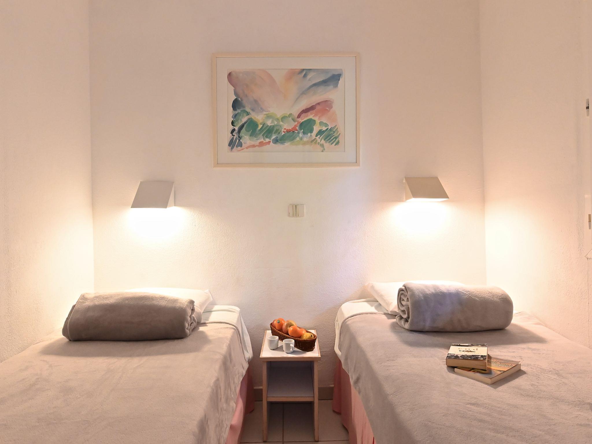 "Les Bastides (O5 018)", 4-room maisonette 60 m2, on the upper ground floor. Living room with TV (flat screen). Exit to the garden, to the terrace. Kitchenette (4 hot plates, dishwasher, toaster, kettle, microwave, freezer). Exit to the garden, to the terrace. Bathroom, shower, 2 sep. WC's. Electric heating. Upper floor: 2 rooms, each room with 1 french bed (140 cm, length 190 cm). 1 room with 2 beds (90 cm, length 190 cm). Terrace, garden. Terrace furniture. Panoramic view of the sea. Facilities: washing machine, iron, hair dryer. Internet (WiFi, extra). Parking (1 car) at the house. Please note: non-smokers only. Maximum 1 small pet/ dog allowed. Offer by a private individual according to Art. 155, IV of CGI. WHAT IS THIS?