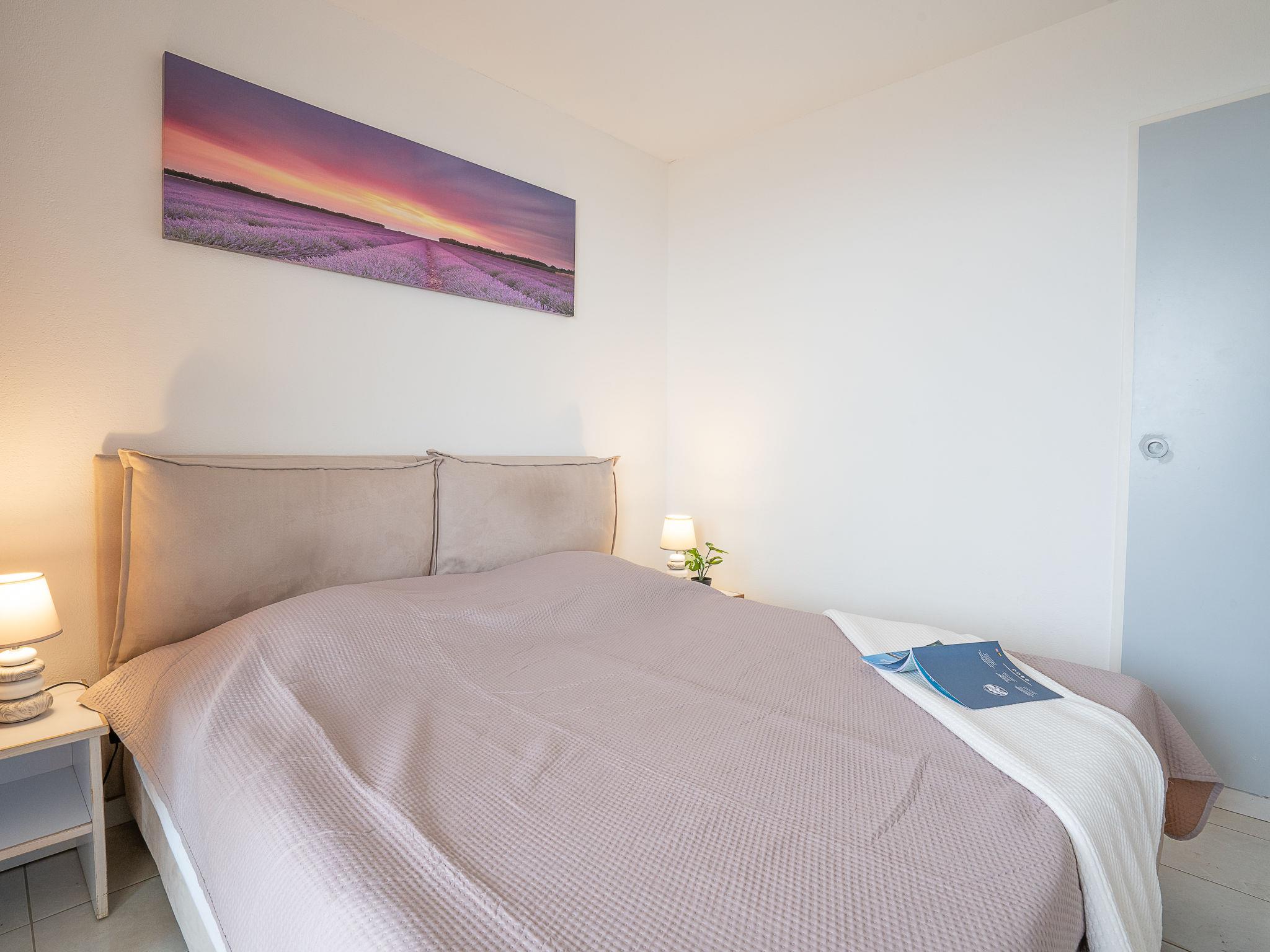 "Les Bastides (I2 047)", 4-room apartment 60 m2 on 2 levels, on the upper ground floor. Living room with TV (flat screen), air conditioning. Exit to the terrace, to the patio. Open kitchen (4 hot plates, dishwasher, toaster, kettle, microwave, freezer, electric coffee machine, Capsules for coffee machine (tassimo) extra). Upper floor: 1 room with 1 french bed (160 cm, length 200 cm), air conditioning. Exit to the terrace. 1 room with 1 x 2 bunk beds (80 cm, length 190 cm), air conditioning. Exit to the terrace. 1 room with 2 beds (80 cm, length 190 cm). Bathroom, shower, 2 sep. WC's. Electric heating. Terrace 12 m2, terrace 10 m2, patio. Terrace furniture. View of the sea. Facilities: washing machine. Internet (WiFi, free). Parking (1 car) at the house. Please note: non-smokers only. Maximum 1 small pet/ dog allowed. Smoke alarm. Offer by a private individual according to Art. 155, IV of CGI.