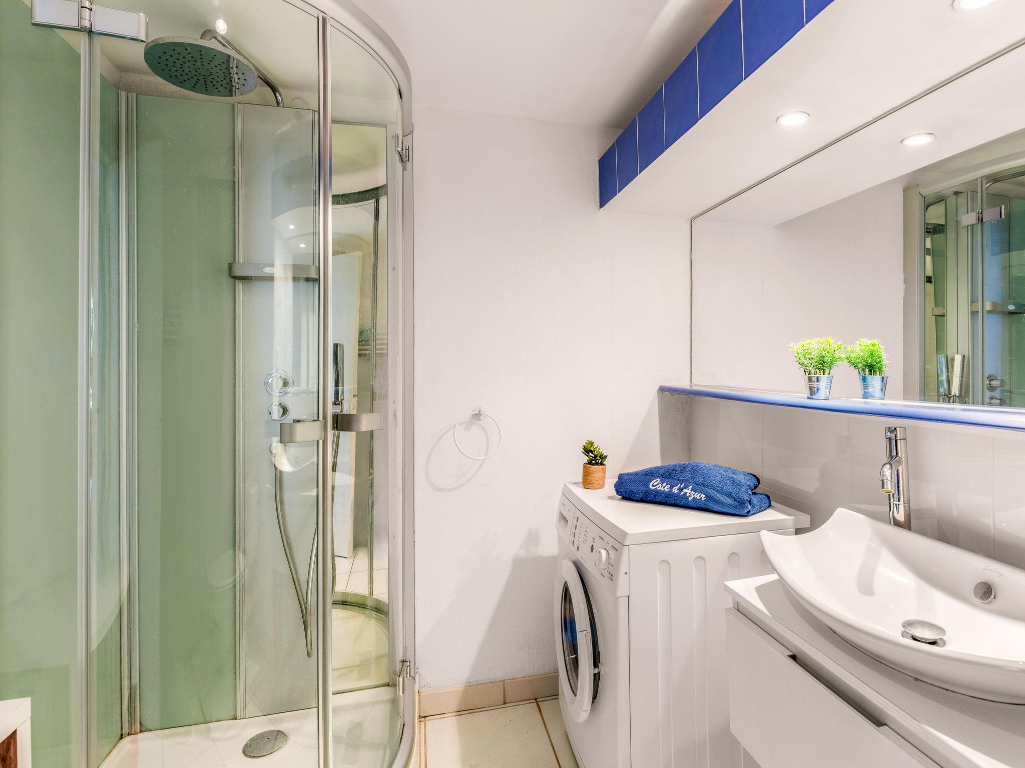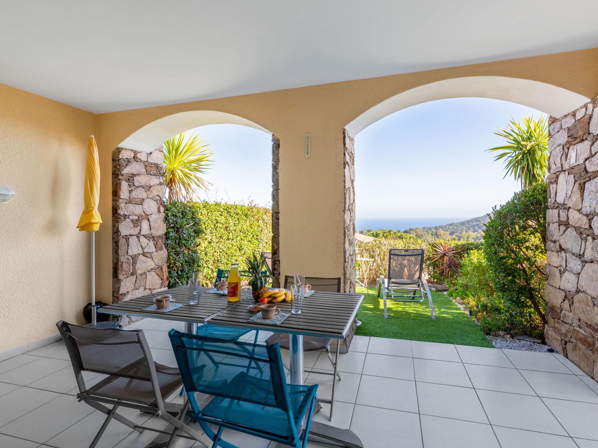 "Les Bastides (O4 023)", 2-room apartment 36 m2, on the upper ground floor. Beautiful and cosy furnishings: living/sleeping room with 1 double sofabed (140 cm, length 190 cm), TV (flat screen). Exit to the garden, to the terrace. 1 room with 1 double bed (180 cm, length 200 cm). Exit to the garden. Open kitchen (oven, 2 induction hot plates, toaster, microwave, freezer, electric coffee machine). Shower/WC. Electric heating. Terrace 8 m2, patio. Terrace furniture, deck chairs (2). Beautiful view of the sea. Facilities: washing machine, hair dryer. Internet (WiFi, extra). Parking (1 car) at the house. Please note: non-smokers only. Maximum 1 small pet/ dog allowed. Smoke alarm. Offer by a private individual according to Art. 155, IV of CGI.