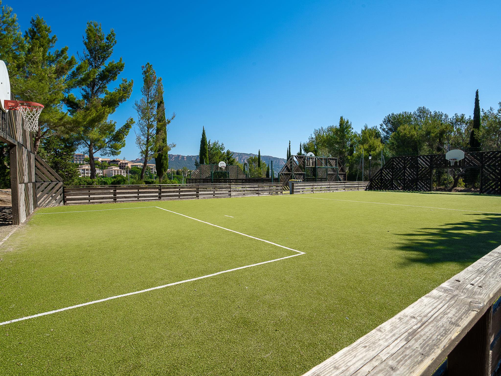 Large resort "Village Cap Estérel - Le Hameau". On the outskirts, 2 km from the centre of Agay, on a slope, in the residential district, 900 m from the sea, 900 m from the beach, road to cross, on the golf course, in a pedestrian area. For shared use: park 210 ha, 5 swimming pools (seasonal availability: 06.Apr. - 03.Nov.). Children's pool, tennis (extra), basketball, boccia, children's playground (slide, swing). In the complex: spa area (extra), shopping facilities, laundry (extra). Shop, grocery 500 m, supermarket 6 km, restaurant, bakery 500 m, bus stop "Ligne 21" 300 m, railway station "Saint-Raphaël-Valescure TGV" 9 km, sandy beach "Tiki Plage" 900 m. Marina 1 km, golf course (9 hole), tennis 500 m. Nearby attractions: Anthéor 8 km, Saint-Raphaël 9 km, Fréjus 13 km, Cannes 33 km, Saint-Tropez 50 km, Nice 76 km. Well-known lakes can easily be reached: Lac Saint-Cassien. Hiking paths: Massif de l'Estérel. Please note: car-free holiday complex, no lift. Entertainment in the season. Suitable for families, childminding in the season (extra). Guarded residence. Additional accommodations can be booked. Access to the apartments is via steps even on the ground floor.