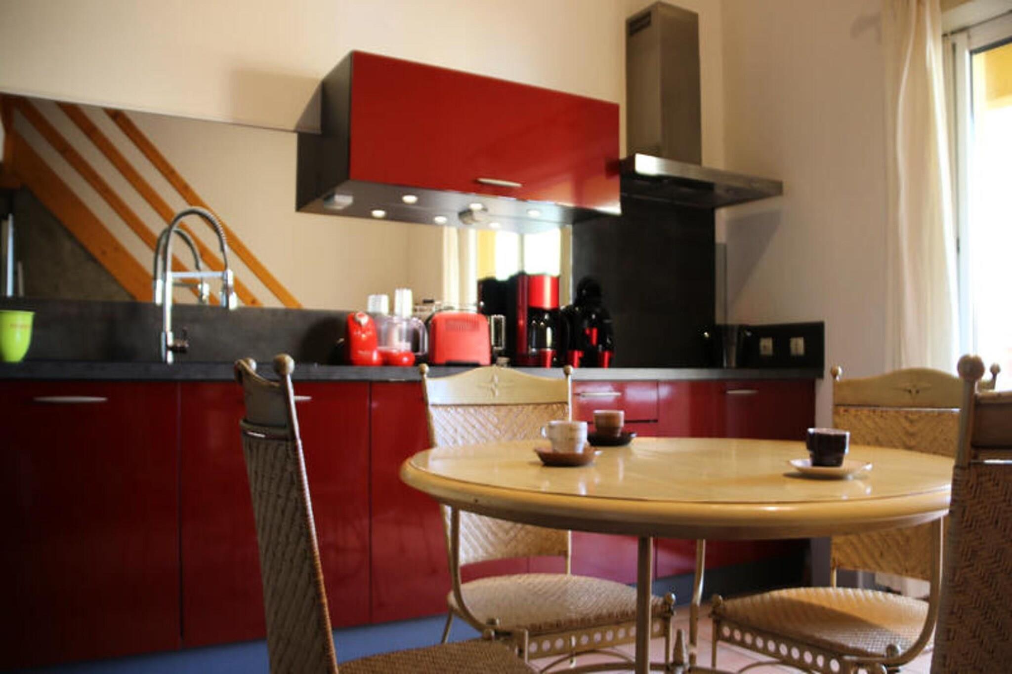 Denne villa med aircondition til 4 personer tilbyder et behageligt og afslappende ophold med en blanding af moderne bekvemmeligheder og rolige omgivelser. Villaen har et soveværelse med en 160 cm seng og en mezzanin med en sovesofa, hvilket gør den ideel til små familier eller grupper. Villaen er ikke kæledyrsvenlig, hvilket sikrer et fredeligt miljø. Gæsterne kan slappe af på terrassen med jacuzzi, som er tilgængelig i sæsonen, og nyde de fredfyldte omgivelser. Beliggende kun 500 meter fra den nærmeste strand, er denne villa bekvemt beliggende for nem adgang til lokale attraktioner. I nærheden finder du caféer, restauranter og markeder, der tilbyder friske råvarer og lokale specialiteter. Gæsterne kan nyde en række aktiviteter såsom at slentre langs stranden, besøge nærliggende butikker eller spise på de mange caféer og spisesteder i området. Villaen har et veludstyret køkkenområde, så gæsterne kan tilberede deres egne måltider, samt en stue til afslapning. Brusebadet og separat toilet sikrer bekvemmelighed og privatliv. Der er privat parkering til rådighed, og gæsterne kan nyde et problemfrit ophold med redte senge, håndklæder og slutrengøring inkluderet.