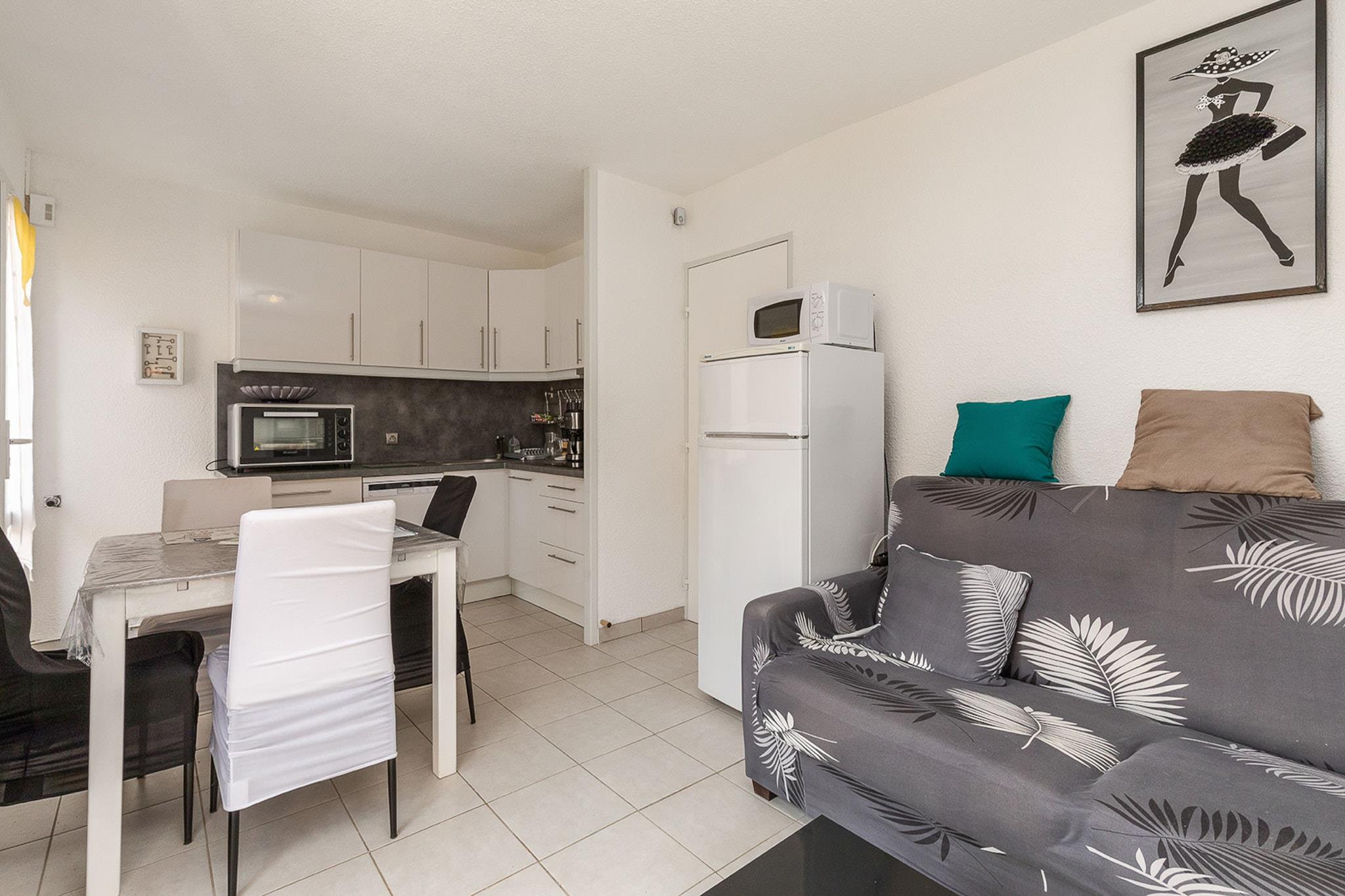 Denne smagfuldt indrettede og moderne lejlighed er perfekt til op til 4 gæster med 1 soveværelse og en rummelig planløsning på 35 m². Ejendommen har en smuk have og en 15 m² stor terrasse udstyret med havemøbler, perfekt til at slappe af eller spise udendørs. Yderligere faciliteter inkluderer aircondition, elvarme, Wi-Fi, vaskemaskine, grill og udendørs parkering, hvilket sikrer et behageligt og bekvemt ophold. Opholdsstuen er hyggelig og kommer med et tv til din underholdning. Beliggende kun 200 meter fra sandstranden og hjertet af byen, tilbyder denne lejlighed en uovertruffen beliggenhed i et familievenligt område ud til havet. Gæster kan nemt få adgang til stranden til solbadning eller vandaktiviteter og udforske de pulserende lokale butikker, restauranter og caféer i byen. Uanset om du leder efter et fredeligt tilflugtssted eller en aktiv kystferie, er denne ejendom den perfekte base for dine eventyr. Køkkenet er fuldt udstyret med moderne apparater, herunder køleskab, mikroovn, ovn, fryser og opvaskemaskine, samt nødvendige tallerkener, bestik og redskaber. Den glaskeramiske kogeplade, kaffemaskine og brødrister tilføjer til bekvemmeligheden, hvilket gør tilberedning af måltider til en leg. Uanset om du laver et gourmetmåltid eller nyder en afslappet morgenmad, har dette køkken alt hvad du behøver for et mindeværdigt ophold.