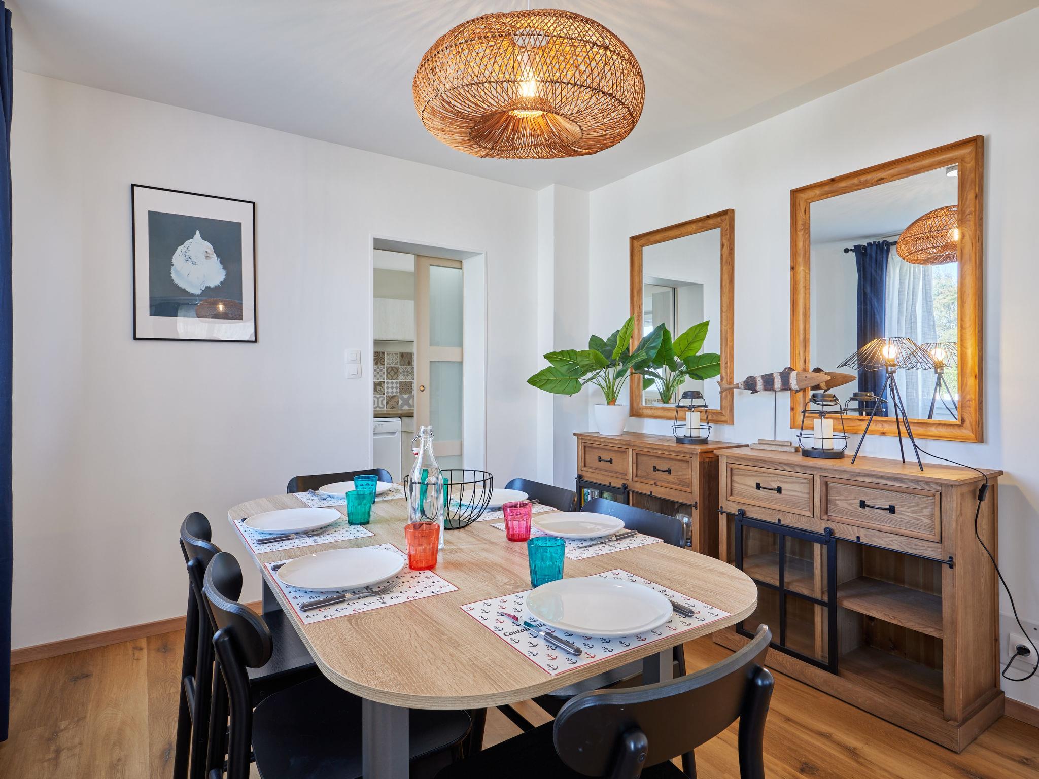 4-room house 90 m2. Comfortable and beautiful furnishings: lounge with TV (flat screen). Exit to the terrace. Dining room. 1 room with 2 beds (90 cm, length 190 cm). 1 room with 1 french bed (160 cm, length 200 cm). Kitchen (4 hot plates, oven, dishwasher, toaster, kettle, microwave, electric coffee machine, Capsules for coffee machine (Tassimo) extra). Shower, sep. WC. Electric heating. Facilities: washing machine, dryer, iron. Internet (WiFi, free). Parking (1 car). Please note: non-smokers only. Smoke alarm. Offer by a private individual according to Art. 155, IV of CGI.