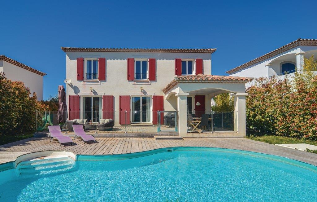 Feriehus med privat pool i Aigues-Mortes. Huset venter jer1 km fra bymidten med Place Saint-Louis, en gammel bymur og kirken Notre-Dames des Sablons. Her lokker restauranterne med lokale specialiteter og vine fra regionen. Nærheden til Camargue gør, at naturelskere anser stedet som et paradis. Carmargue er både kendt for mange planter og for flamingoer, heste og tyre. Gå en tur ved molen i Port Camargue og læg jer ned på den avrme sandstrand i Le Grau-du-Roi 10 km fra huset.Gå ikke glip af den skønne naturstrand Espiguette. Tag på udflugt i den historiske by Montpellier med den populære Place de la Comédie, og besøg Nîmes med de romerske arenaer, hvor der afholdes mange koncerter. Dette charmerende feriedomicil er det ideale udgangspunkt for at nyde godt af regionen Gard og de mange tilbud.