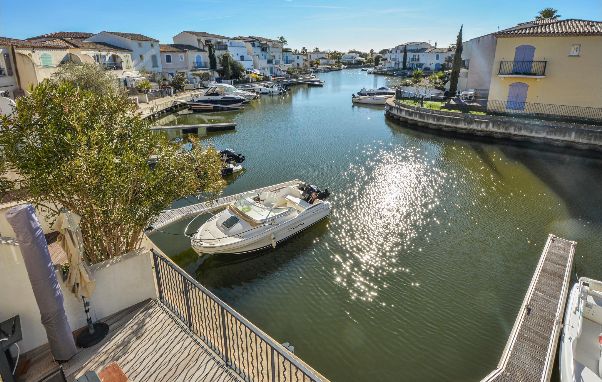 Dette moderne, lyse feriehus i byen Aigues-Mortes er det oplagte sted for en ferie med venner eller familie.Huset er veludstyret med alt, hvad I får brug for på denne ferie. Nyd morgenmaden på den åbne terrasse med udsigt over kanalen, eller sæt jer på en af ??altanerne med en kop kaffe og en god bog. I har også en fælles udendørs pool til rådighed, hvis I trænger til en dukkert. Om aftenen kan I tænde grillen og nyde lækker, hjemmelavet mad og gode samtaler til sent.