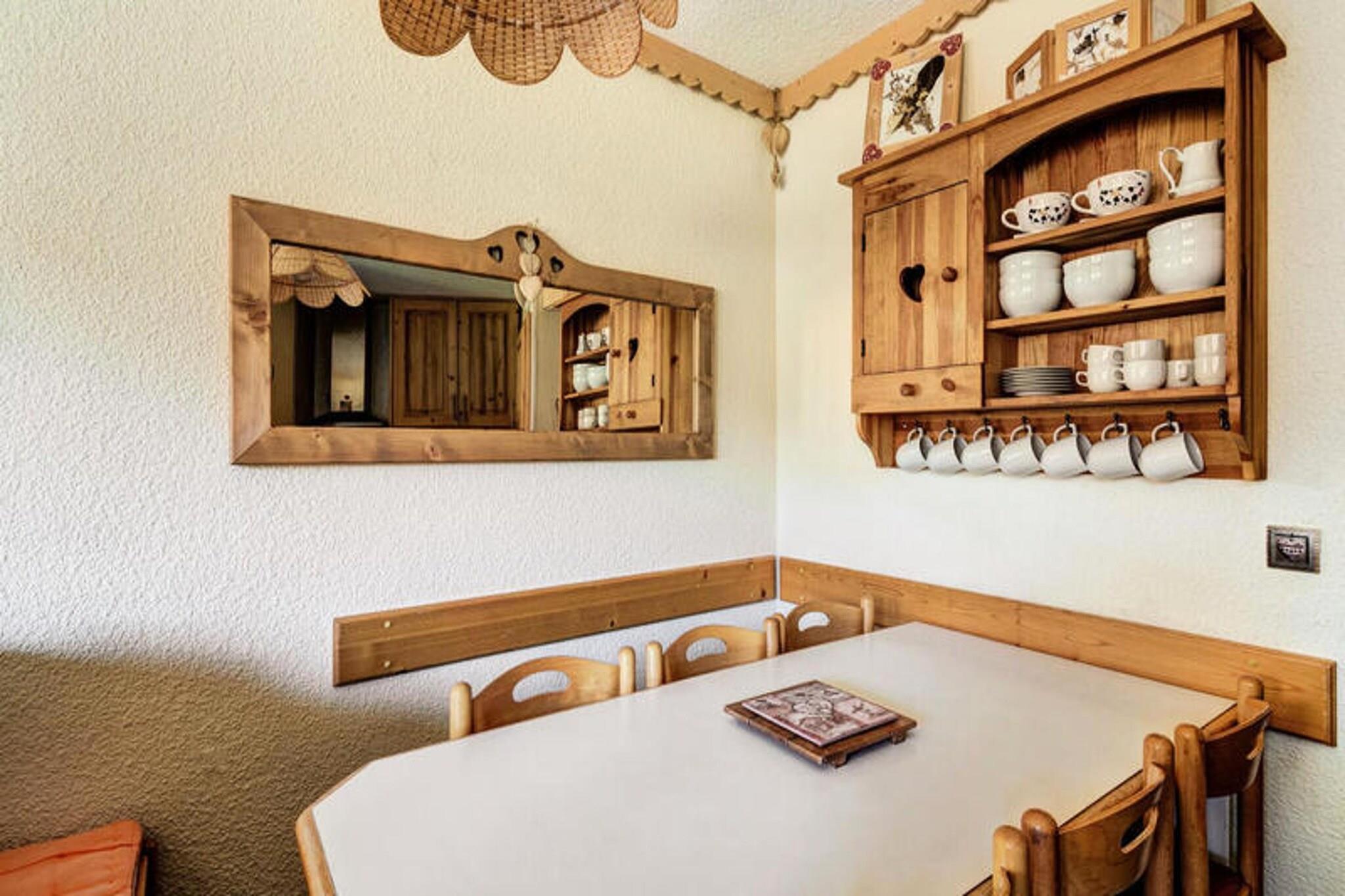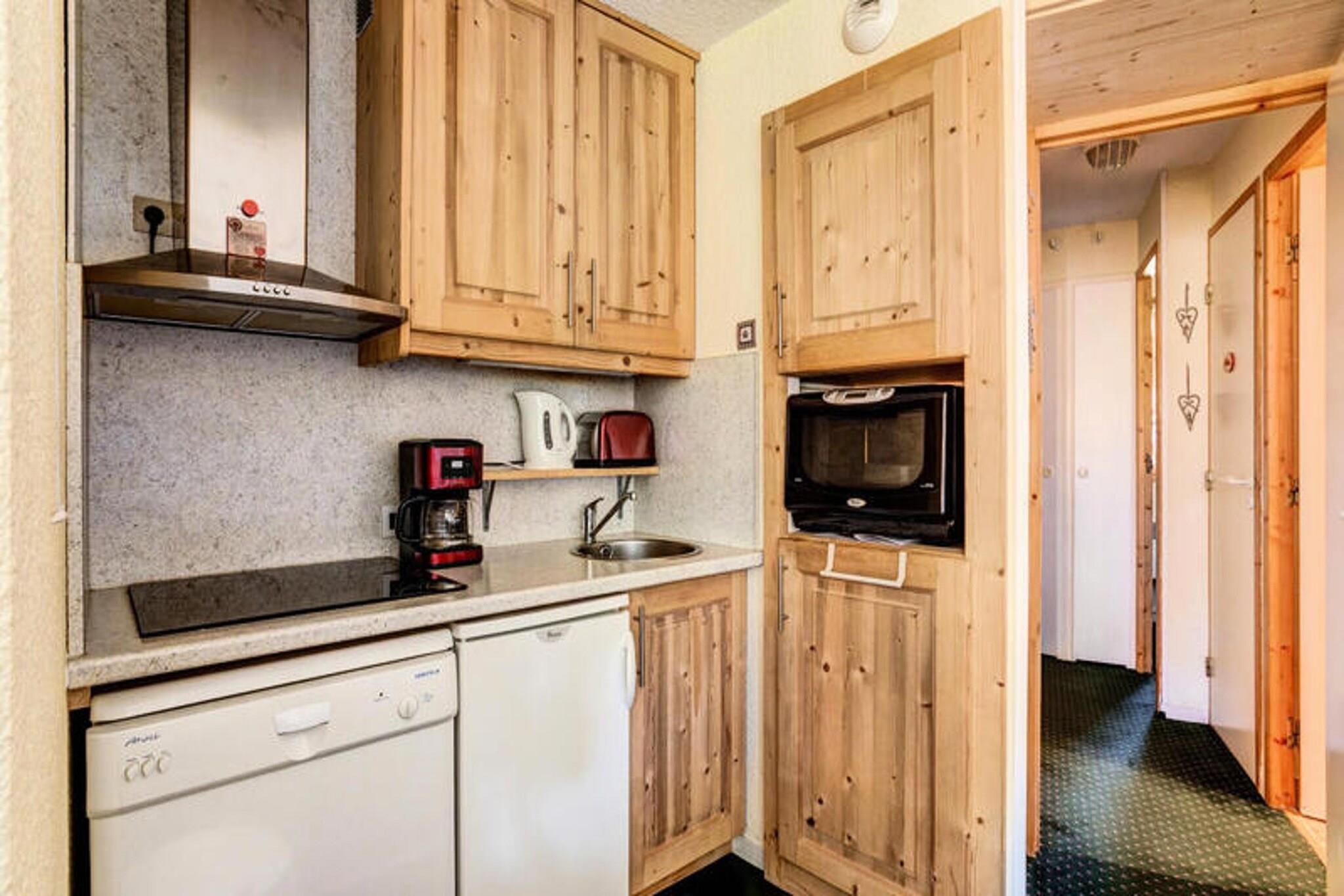 Denne hyggelige lejlighed på 35 m², ideel til familier eller venner, ligger på 5. sal i en rolig bolig i Belle Plagne. Lejligheden har en stue med en sovesofa til to, et separat kabineområde med køjesenge og et soveværelse med en dobbeltseng. Lejligheden er ikke kæledyrsvenlig og tilbyder direkte adgang til pisterne, hvilket gør den til et perfekt valg for skientusiaster. Gæsterne kan nyde en balkon med en fantastisk udsigt over bjergene, der vender mod sydvest. Beliggende kun 120 meter fra landsbyens centrum, er denne lejlighed tæt på butikker, caféer og forskellige aktiviteter, hvilket sikrer bekvemmelighed og tilgængelighed. Med nem adgang til Paradiski-skiområdet giver ejendommen gæsterne mulighed for at udforske pisterne lige fra døren. Belle Plagne er kendt for sin charmerende, dynamiske atmosfære, hvilket gør det til en populær destination for vintersportsentusiaster og dem, der søger en livlig landsbyoplevelse. Lejligheden har et køkken i amerikansk stil udstyret med køleskab, mikroovn og spiseplads med seks personer. Badeværelset har bruser, elektrisk håndklædetørrer og rigelig opbevaringsplads. Yderligere faciliteter omfatter et separat toilet, en stikkontakt nær spejlet og en balkon med udsigt over bjergene. Der tilbydes trådløs internetadgang mod et tillægsgebyr, og sengelinned, håndklæder og slutrengøring er tilgængelig mod et tillægsgebyr. Overdækket parkering er tilgængelig efter anmodning.