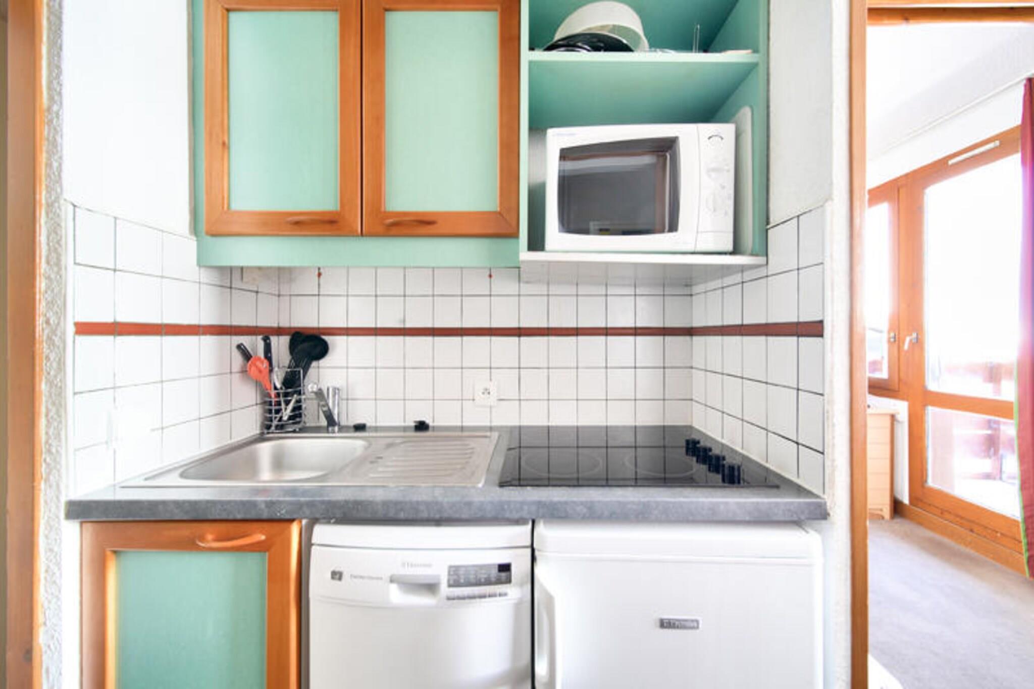 Denne charmerende studiolejlighed, beliggende på 4. sal i en hytte af træ og sten, er designet til at rumme op til 4 personer. Den har en sovesofa og to udtrækssenge, perfekt til familier eller små grupper. Lejligheden har direkte adgang til pisterne og en balkon med en fantastisk udsigt over dalen. Kæledyr er tilladt mod tillægsgebyr, men babysæt er ikke tilgængelige på grund af sundhedsprotokoller. Der er en overdækket parkeringsplads til rådighed, gratis i sommermånederne. Beliggende kun få skridt fra butikker, caféer og underholdningssteder tilbyder denne chalet en uovertruffen beliggenhed for dem, der søger både bekvemmelighed og nem adgang til udendørs aktiviteter. Restauranten K2, som ligger i nærheden, serverer lækre specialiteter fra Savoyard, hvilket gør den til et ideelt sted til frokost eller middag efter en dag på pisterne. Gæsterne kan også nyde en række lokale attraktioner, alle inden for kort afstand fra hytten. Studiet har et halvåbent køkken med væsentlige apparater, herunder køleskab, mikroovn og komfur. Badeværelset er i god stand og har bruseniche, mens det separate toilet sørger for ekstra bekvemmelighed. Der tilbydes trådløs internetadgang mod et tillægsgebyr, og sengetøj, håndklæder og slutrengøring er også tilgængelig mod et tillægsgebyr.