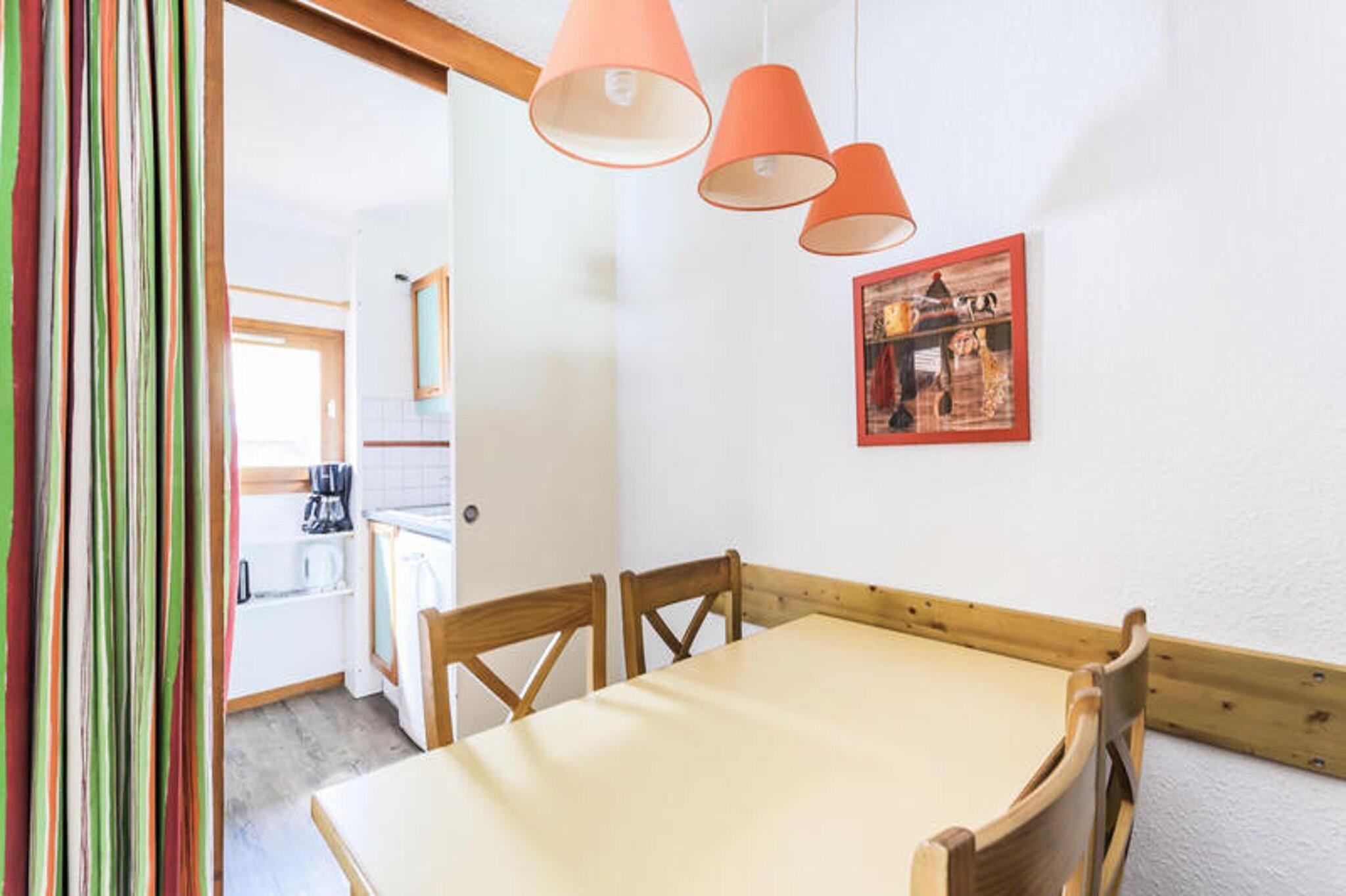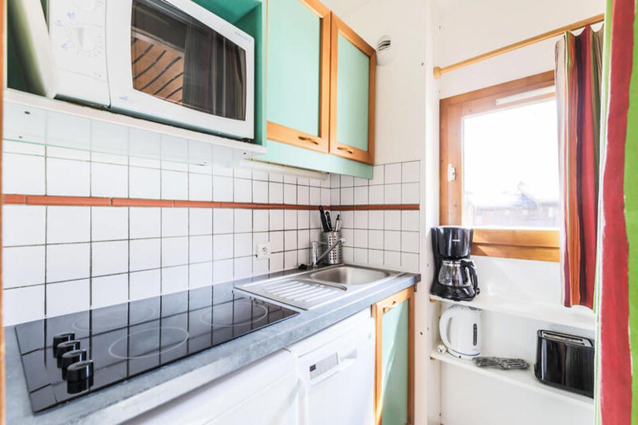 Denne hyggelige lejlighed, beliggende i en charmerende træ- og stenhytte, byder på rigelig plads til op til 5 personer med 2 sovesofaer (en med en udtræksseng) og et kabineområde med 2 enkeltkøjesenge. Det har en balkon med dejlig udsigt og er kæledyrsvenlig mod et tillægsgebyr. Lejligheden er udstyret med gratis parkering i sommermånederne, selvom rengøring er en ekstra service, der skal arrangeres ved indtjekning. Wi-Fi er tilgængeligt mod et tillæg, og babysæt er ikke tilgængelige på grund af sundhedsprotokoller. Beliggende i en førsteklasses beliggenhed, er denne ejendom kun få skridt væk fra butikker, caféer og underholdningssteder, hvilket gør det til et perfekt sted for både afslapning og eventyr. Restauranten K2, kun en kort gåtur væk, byder på traditionelle savoyardiske retter, ideelt efter en dag på ski. Skiløjperne er let tilgængelige og giver gæsterne direkte adgang til Paradiski-skiområdet, hvilket sikrer en fantastisk vintersportsoplevelse. Det omkringliggende område er perfekt til at nyde udsigten over bjergene og udendørs aktiviteter. Indvendigt byder lejligheden på et fuldt udstyret køkken med et åbent design til stuen. Den omfatter komfur, mikroovn, køleskab og spisebord med plads til fire. Badeværelset har en kombination af badekar og bruser, og der er et separat toilet for ekstra bekvemmelighed. Yderligere tjenester såsom sengelinned, håndklæder og slutrengøring er tilgængelige mod et tillægsgebyr.