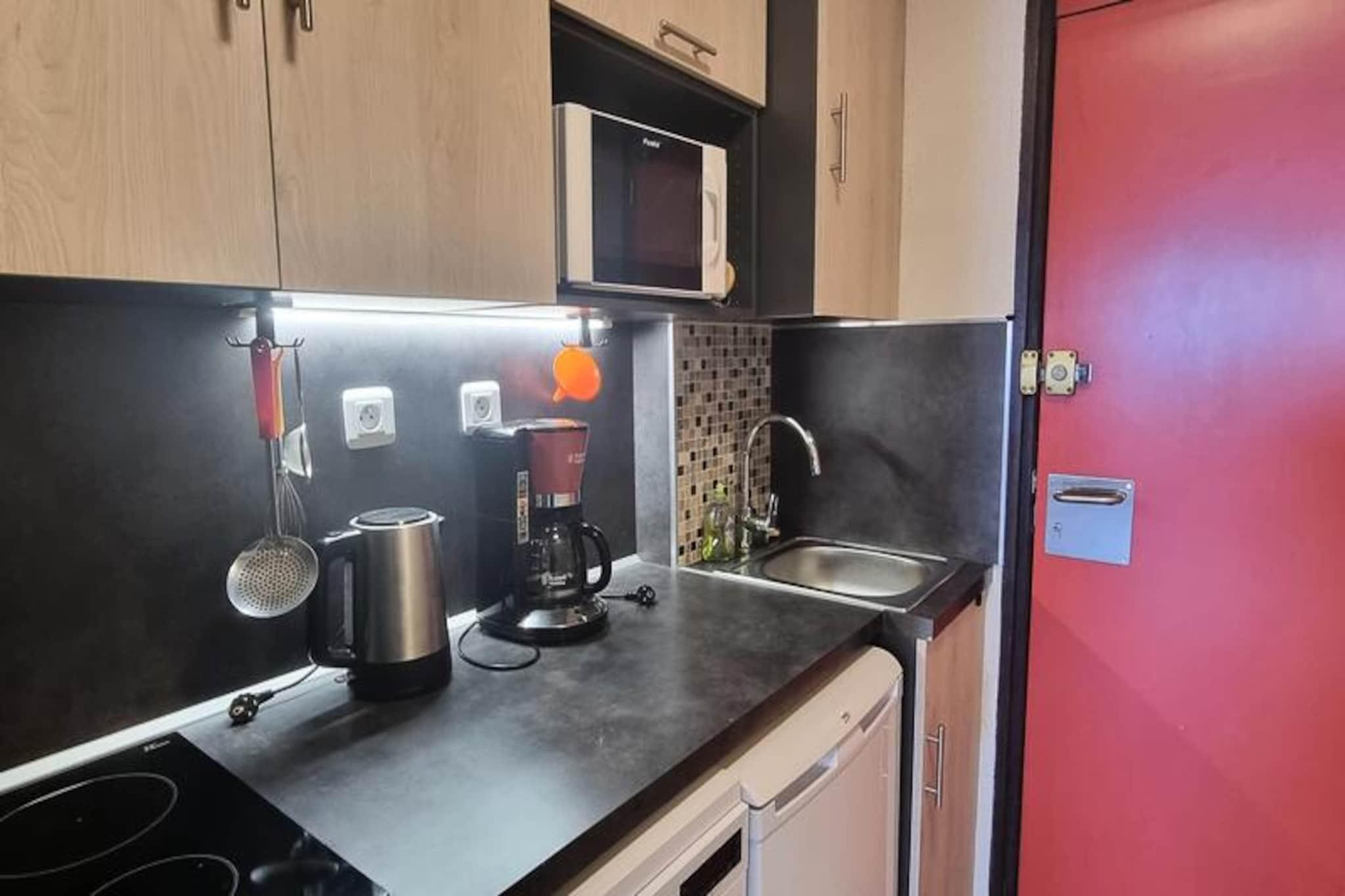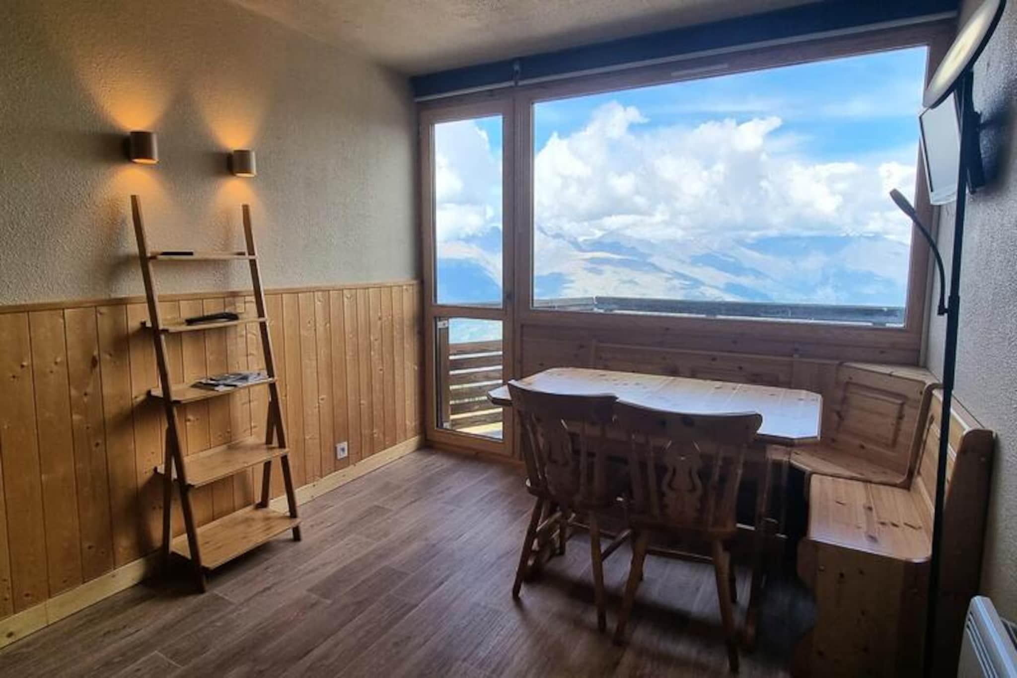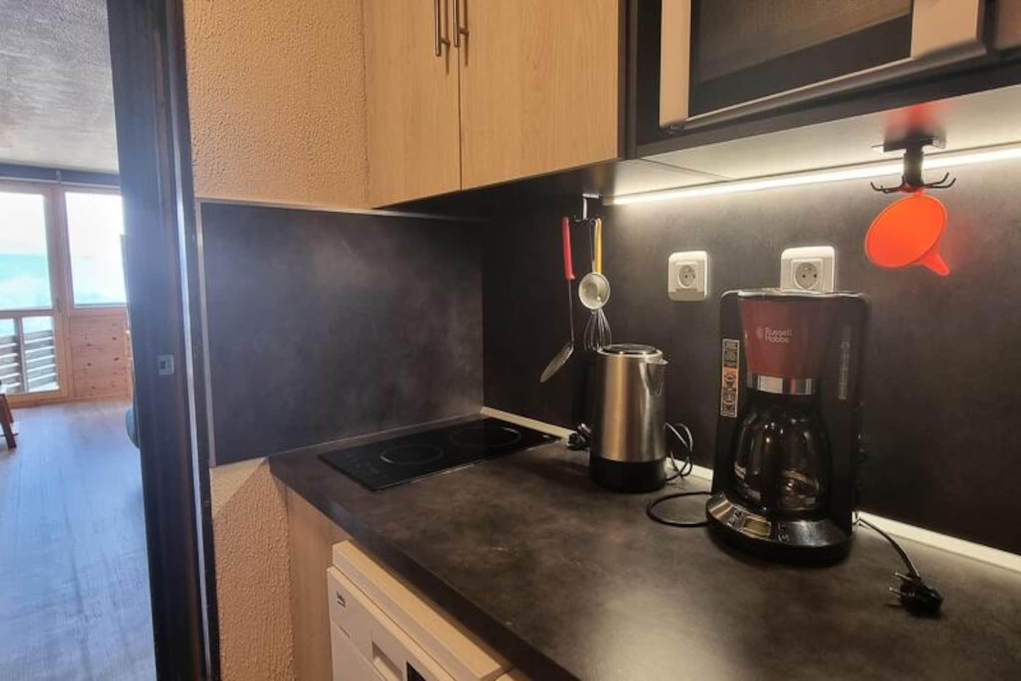 Højt over Tarentaise-dalen tilbyder denne charmerende studiohytte et hyggeligt tilflugtssted med en betagende udsigt over Mont Blanc-massivet. Beliggende i det ikoniske Paquebot des Neiges kombinerer residensen alpin charme med moderne bekvemmeligheder, hvilket gør den til den perfekte base for dine bjergeventyr. Uanset om du er her for at køre på pisterne eller blot nyde Alpernes fredfyldte skønhed, sikrer denne ski-in/ski-out-ejendom, at hvert øjeblik er uforglemmeligt. Det 26 m² store studio er blevet omhyggeligt renoveret for at rumme op til fire gæster. Den indbydende stue har en komfortabel sovesofa, et spisebord til fire og et fladskærms-tv, hvilket skaber et varmt og indbydende rum til at slappe af efter en dag udendørs. En separat sovealkove med en enkeltseng og en dobbelt køjeseng tilbyder ekstra privatliv og komfort. Det veludstyrede køkken har mikrobølgeovn, køleskab, opvaskemaskine og elektriske kogeplader, hvilket gør det nemt at tilberede måltider. Badeværelset, komplet med badekar og separat toilet, tilføjer et strejf af moderne bekvemmelighed. Gå ud på den nordvendte balkon for at nyde den majestætiske udsigt over Mont Blanc, et syn, der vil inspirere dig hver dag. Selve boligen er et paradis af praktisk anvendelighed og bekvemmelighed. Med butikker og kabelbanestationen bekvemt placeret på niveau G, og en gratis resort-shuttle tilgængelig, er alt hvad du behøver lige ved hånden. Udendørs og overdækket parkering sikrer stressfri ankomst, mens skiboksen og direkte adgang til pisten forenkler dine alpine eventyr. Uanset om du besøger stedet for spændingen ved pisterne eller roen i bjergene, tilbyder denne studiohytte en perfekt blanding af komfort, bekvemmelighed og fantastisk naturlig skønhed. Skab uforglemmelige minder i hjertet af de franske alper, hvor hver eneste detalje er designet til at forbedre dit ophold.