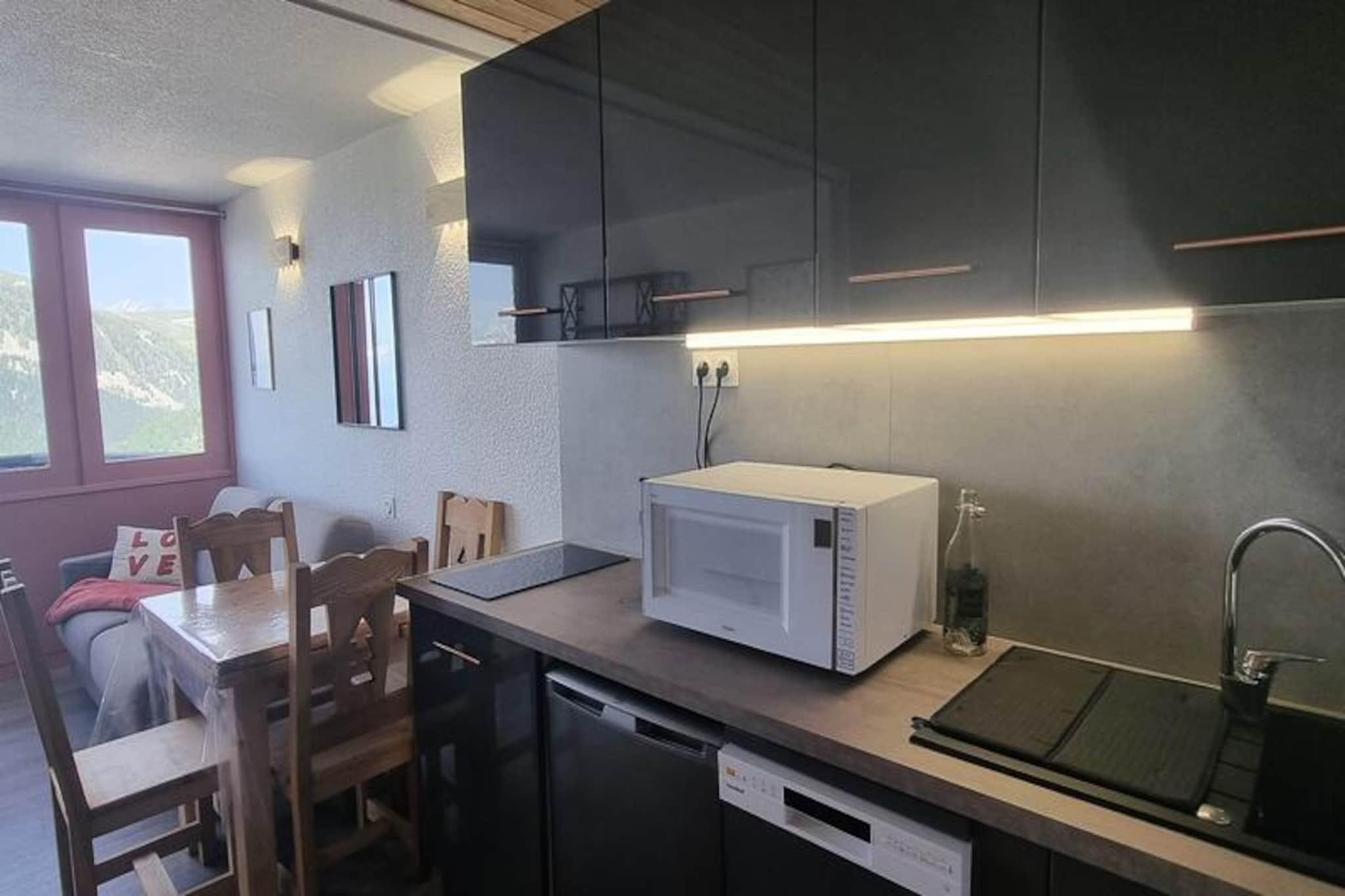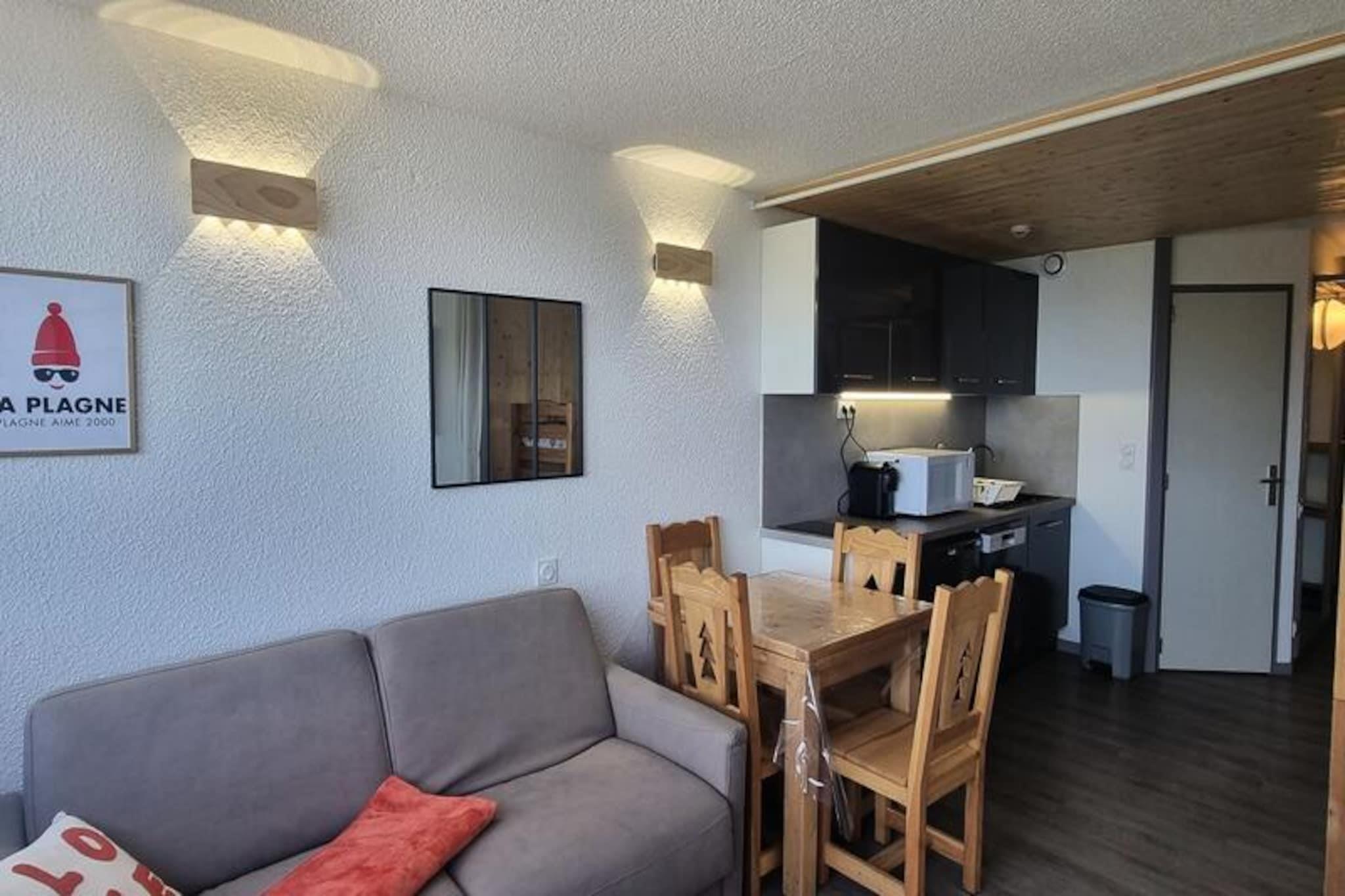 Højt over Tarentaise-dalen, hvor den majestætiske Mont Blanc dominerer horisonten, ligger Zenith-søjlen – et unikt tilflugtssted i hjertet af det ikoniske Paquebot des Neiges. Denne ski-in/ski-out-residens tilbyder en uovertruffen alpin oplevelse, der blander moderne bekvemmeligheder med den tidløse skønhed i de franske alper. Med nord- og sydvendte udsigter er ejendommen badet i naturligt lys, hvilket skaber en varm og indbydende atmosfære til din bjergferie. Dette nyrenoverede 26 m² store, delbare studie er omhyggeligt designet til at rumme op til fire gæster. Opholdsstuen har en Rapido-sovesofa, to hyggelige køjesenge og et fladskærms-tv, der sikrer komfort og afslapning efter en dag på pisterne. Et fuldt udstyret åbent køkken med keramiske kogeplader, køleskab og et udvalg af kaffemaskiner inviterer dig til at tilberede lækre måltider. Badeværelset har et badekar, mens det separate toilet bidrager til bekvemmeligheden. Gå ud på den nordvendte balkon for at nyde den betagende udsigt over Mont Blanc – en perfekt baggrund for din morgenkaffe eller aftenrefleksion. Residensen kan prale af exceptionelle faciliteter, herunder skibokse, gratis udendørs parkering og betalt overdækket parkering. Butikker, restauranter og svævebanestationen er bekvemt placeret på niveau G, mens en gratis shuttlebus til resortet sikrer problemfri mobilitet. Uanset om du er her for at grave dig gennem uberørt sne eller udforske sommerstier, placerer Zenith Column dig i hjertet af begivenhederne. Vælg Zenith Column for dens uovertrufne beliggenhed, moderne komfort og ærefrygtindgydende udsigt. Uanset om du søger eventyr eller ro, lover denne alpine perle uforglemmelige minder i enhver sæson.