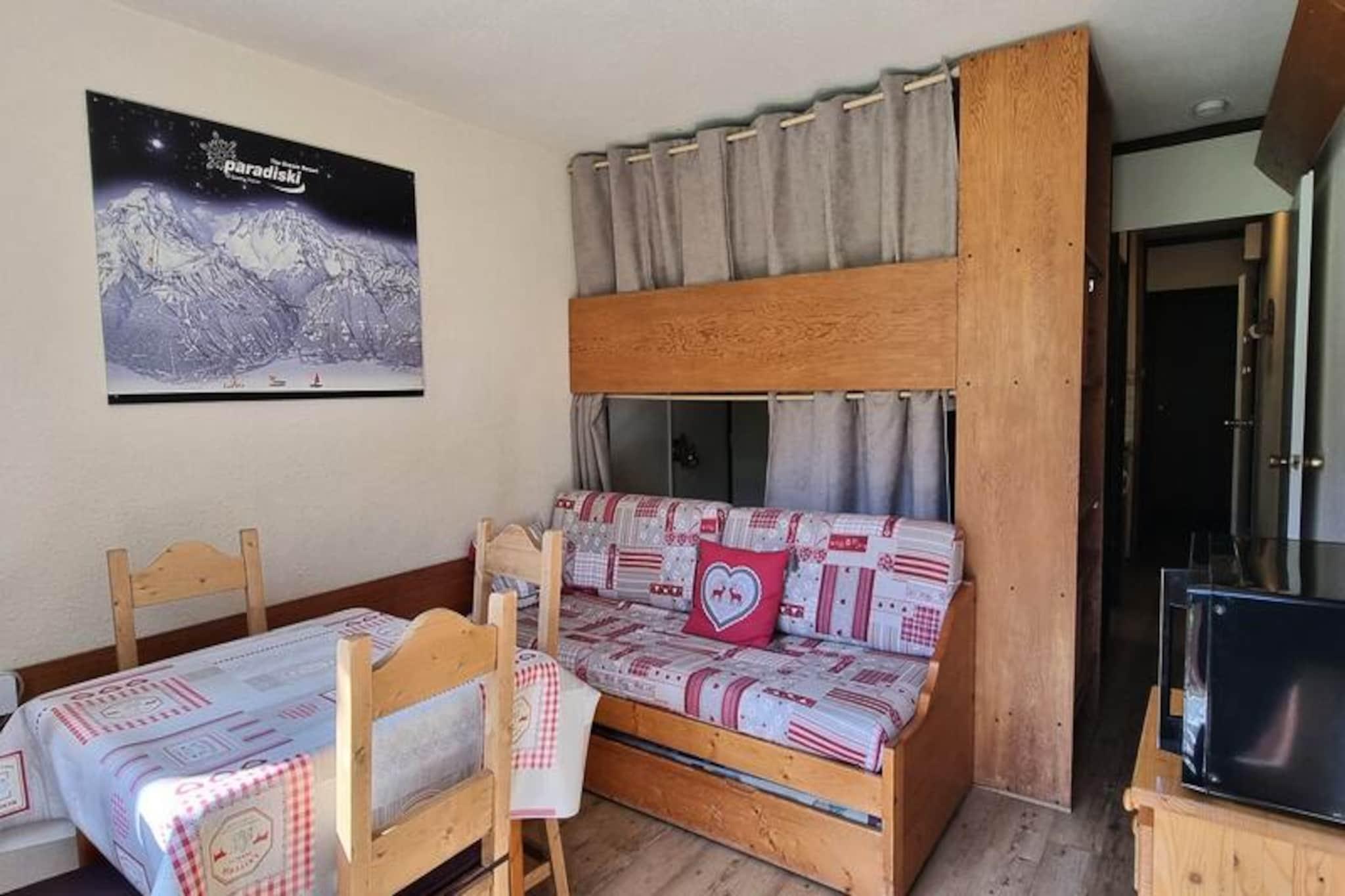 Højt over Tarentaise-dalen tilbyder dette charmerende studie i Le France-residensen en plads på første række til Plagne Centres alpine magi. Med sin sydvendte balkon med udsigt over pisterne kan du nippe til din morgenkaffe, mens de første skiløbere skærer sig vej gennem frisk puddersne. Residensens uovertrufne ski-in, ski-out-beliggenhed sikrer, at dine bjergeventyr begynder i det øjeblik, du træder udenfor. Uanset om du er her for at omfavne spændingen ved vintersport eller roen ved sommervandreture, er dette hyggelige tilflugtssted din port til de franske alpers skønhed. Indenfor er studiet omhyggeligt designet til at rumme op til fire gæster. Opholdsstuen har en komfortabel sovesofa og en udtræksseng, mens sovekrogen har to hyggelige køjesenge, perfekt til familier eller små grupper. Tekøkkenet er udstyret med alt, hvad du behøver for at tilberede solide måltider efter en dag på pisterne, herunder keramiske kogeplader, mikrobølgeovn, køleskab og opvaskemaskine. Moderne detaljer som et fladskærms-tv og dyner bidrager til komforten og sikrer et afslappende ophold. Badeværelset, komplet med bruser og toilet, er kompakt, men funktionelt. En privat skiboks og elevator gør din alpine ferie endnu mere bekvem. Galerie le Pelvoux ligger kun 100 meter fra boligen og tilbyder et udvalg af butikker, hvilket gør det nemt at købe de nødvendige ting eller nyde en afslappet spadseretur gennem landsbyen. Betalingsparkering er bekvemt placeret foran bygningen, og det pulserende hjerte af Plagne Centre ligger lige uden for døren. Herfra kan du udforske det store Paradiski-område, der er kendt for sit exceptionelle skiløb og betagende landskab. Uanset om du er tiltrukket af uberørte pister, charmen i en bjerglandsby eller løftet om uforglemmelige minder, er dette studie i Le France-residensen den perfekte base for dit alpine eventyr.