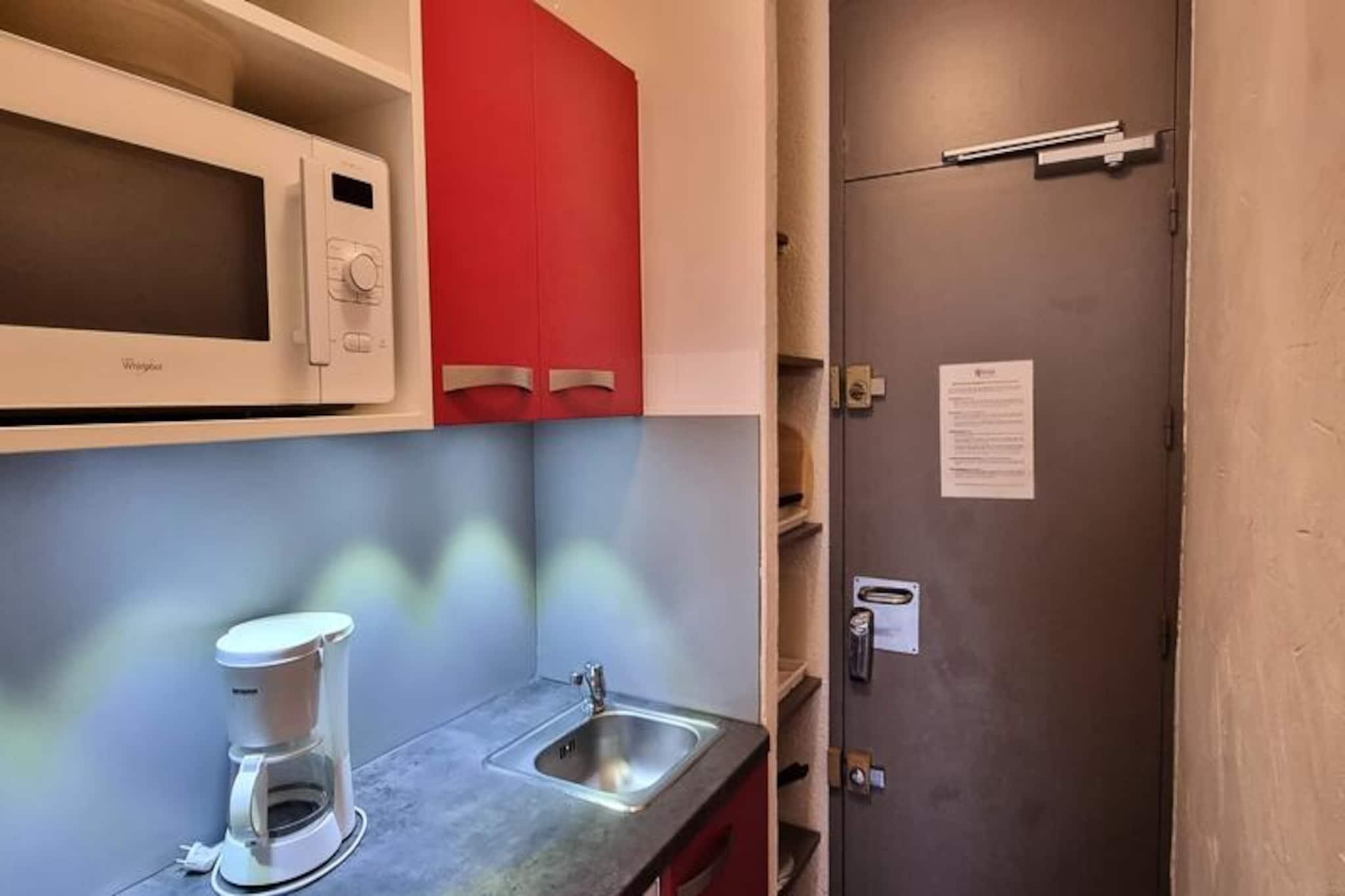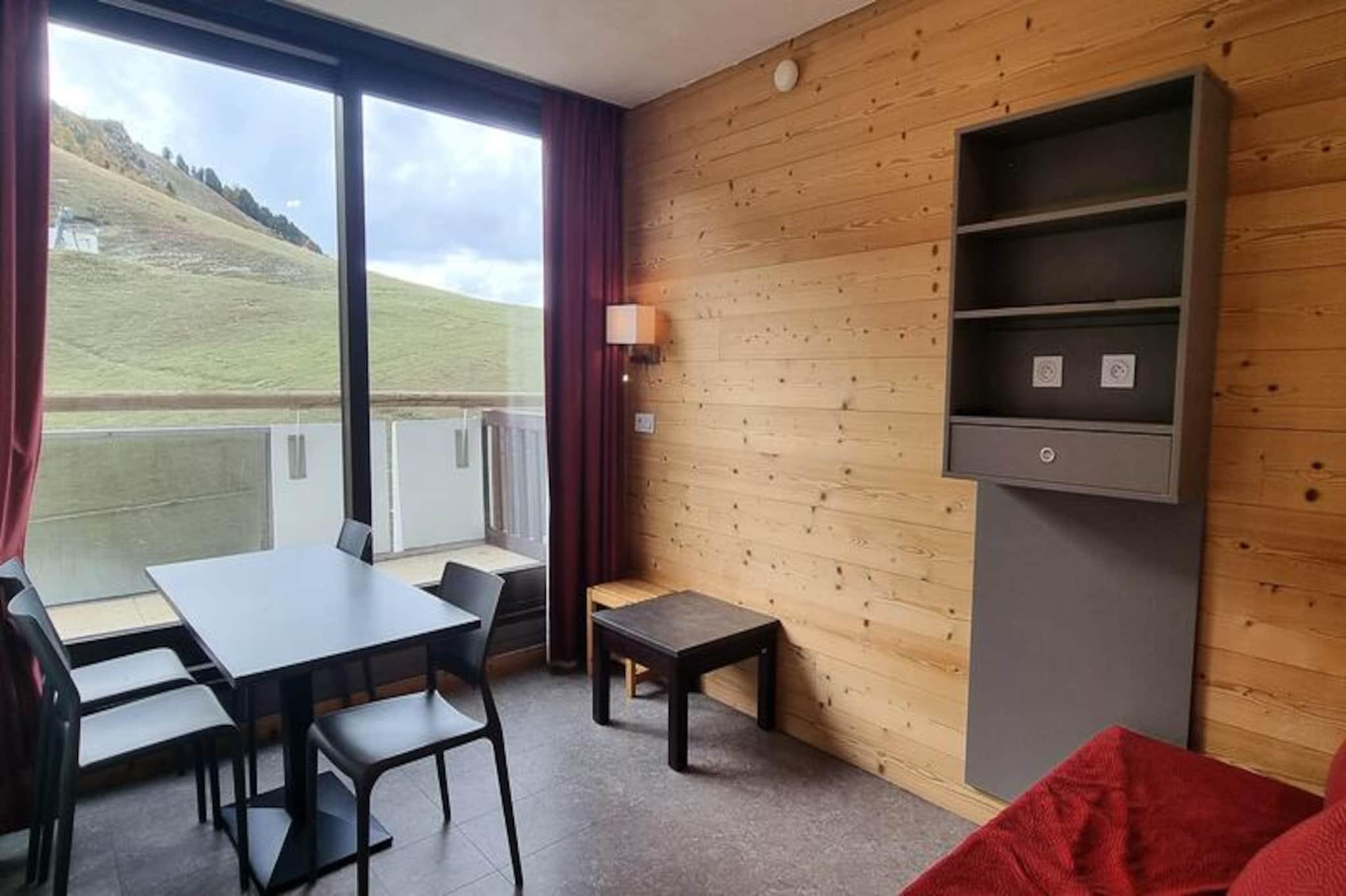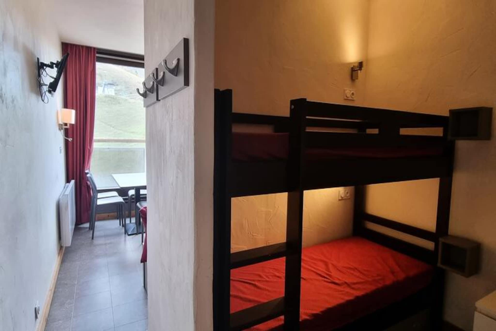 Højt over Tarentaise-dalen tilbyder denne charmerende studiohytte i det ikoniske Paquebot des Neiges en plads på første række til de betagende pister i Aime 2000. Med sin sydvendte beliggenhed bader studioet i naturligt lys og tilbyder en fantastisk udsigt over det alpine landskab, hvilket gør det til et perfekt tilflugtssted for bjergentusiaster. Uanset om du er her for spændingen ved skiløb eller roen i bjergene, sikrer denne ski-in/ski-out-bolig, at du altid er få skridt væk fra eventyr. Studioet på 25 m² er omhyggeligt designet til at rumme op til 4 gæster og blander komfort og praktisk anvendelighed. Opholdsstuen har en enkelt sovesofa og en udtræksseng, suppleret med et fladskærms-tv til hyggelige aftener. En separat sovealkove med køjesenge tilføjer privatliv og bekvemmelighed, hvilket gør den ideel til familier eller små grupper. Det veludstyrede køkken inkluderer en kombiovn, keramiske kogeplader, et køleskab og en opvaskemaskine, så du har alt, hvad du behøver for at tilberede solide måltider efter en dag på pisterne. Badeværelset har et badekar og et separat toilet, hvilket bidrager til komforten under dit ophold. Studioet ligger på niveau G i boligen og tilbyder direkte adgang til butikker og svævebanestationen, hvilket gør dit ophold så problemfrit som muligt. Der tilbydes gratis shuttle-service til resortet, og både gratis udendørs parkering og betalt overdækket parkering sikrer problemfri ankomst. Yderligere faciliteter inkluderer skibokse, valgfri Wi-Fi-adgang og babyudstyr efter anmodning. Uanset om du er tiltrukket af pisterne eller charmen ved alpint liv, lover denne studiehytte et uforglemmeligt ophold i hjertet af de franske alper. Med sin uovertrufne beliggenhed, praktiske faciliteter og hyggelige atmosfære er det den perfekte base for dine bjergeventyr.