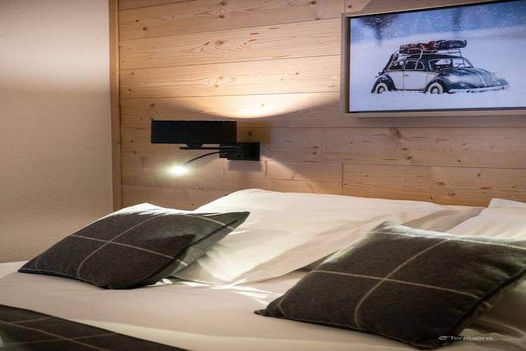 Stue(dobbeltsovesofa(160 x 190 cm), Fjernsyn(fladskærm), sofahjørne), åbent køkken(kogeplade(glaskeramisk), elkedel, brødrister, kaffemaskine, mikrobølgeovn, opvaskemaskine , køleskab, ), soveværelse(dobbeltseng(160 x 200 cm)), Hytte(køjeseng(80 x 190 cm)), badeværelse(bruser, toilet), badeværelse(bruser, toilet), Internetadgang, Parkering, hottub, sauna, terrasse, swimmingpool(deles med andre gæster)