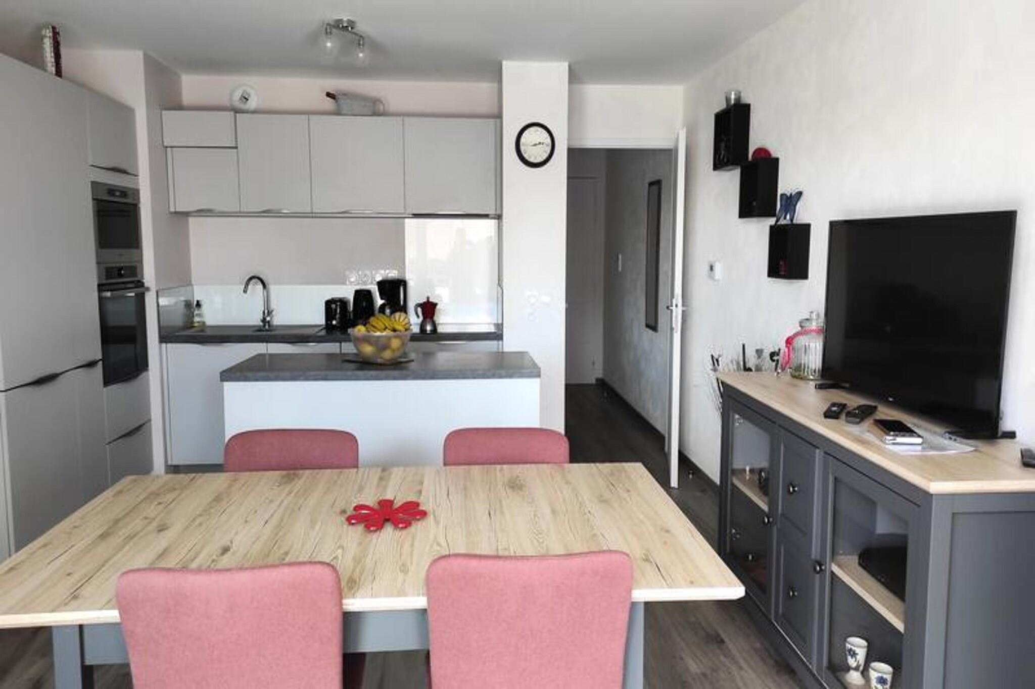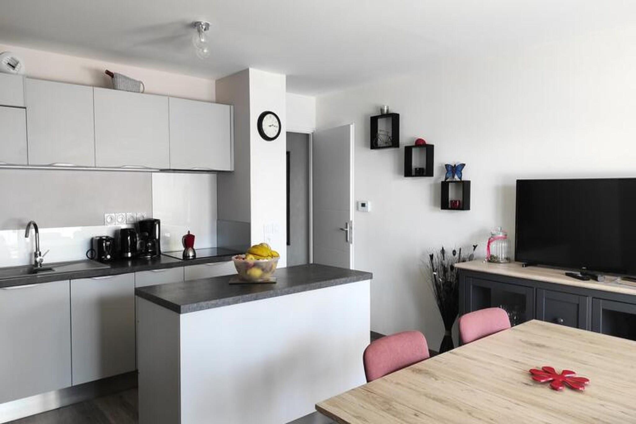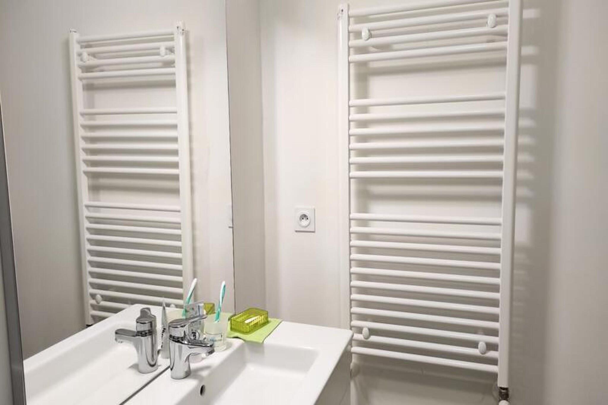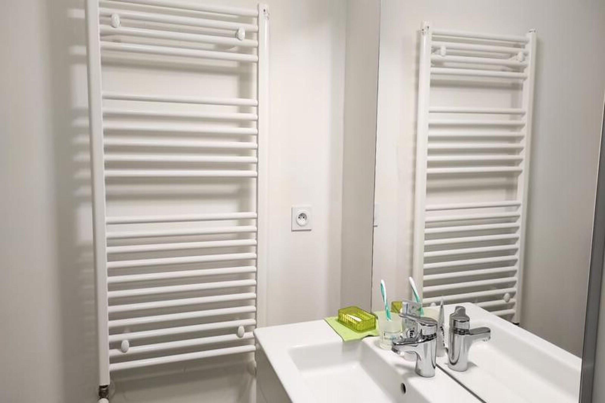 Residence le Clos des Merisiers, stigning 120. Beliggende på hjørnet af Rue Jean Louis Chanéac og Rue Charlotte Perriand i Aix les Bains. I hjertet af byen består en lille ejerlejlighed af 58 boliger fordelt på 5 intime boliger. Det ligger 10 minutter i bil eller 20 minutter til fods fra turistkontoret, kasinoet og bymidten, 1,7 km fra Chevalleys termiske bade, 1,5 km fra Marlioz termiske bade, 500 m fra busstationen, 20 km fra Mont REVARD. (7I på kortet) Dens privilegerede beliggenhed giver dig mulighed for at gå vandre- eller cykelture langs Bourget-søen. Rigtig fin, rummelig og meget funktionel 2-værelses lejlighed På 3. sal med elevator - I Prestige sortiment Klassificering i møbleret turistindkvartering i 3* til 3 personer 54m² mod syd med møbleret altan Entré og kælder (PVC gulv): vinkælder, vaskemaskine. Stue (PVC-gulv) med udgang til balkon, sydvendt: 1 sovesofa (1 person), 1 sofabord, 1 bord 4 stole, 1 tv-enhed, 1 fjernsyn. Køkken åbent til stuen: 1 stor bordplade, køle/fryseskab, 3 induktionskogeplader, multifunktionsovn, mikroovn, emhætte, opvaskemaskine, 1 elektrisk kaffemaskine, 1 brødrister, 1 elkedel, service og køkkengrej. Soveværelse med sydvindue (PVC gulv): 1 160cm seng, 2 sengeborde, 2 lamper, 1 tøjstativ, 1 møbel med 2 skuffer, 1 lænestol, 2 stole. Badeværelse (flisegulv): håndvask, bruseniche med gardin, 1 træhylde, 1 søjleenhed, 1 håndklædetørrer på kedel, 1 vaskemaskine. WC (flisegulv): med håndvask, skoskab. DIVERSE: videotelefon, individuel gasopvarmning med varmtvandsproduktion, røgdetektor, 1 søjleventilator. Kæledyr tolereres ikke. Internetadgang: Livebox. Maksimalt antal sovepladser tilladt for denne 3-sengs lejlighed. Udlejes med C302 garage, placeret til højre for boligens bagdør. Dimensioner bredde 2,70m, længde 5m, højde 2m. Yderligere tjenester mod tillægsgebyr: slutrengøring, sengelinned, håndklæder, kæledyr, babyseng (afhængig af tilgængelighed efter anmodning). Depositum (i euro) - 500 Opvarmning - 1