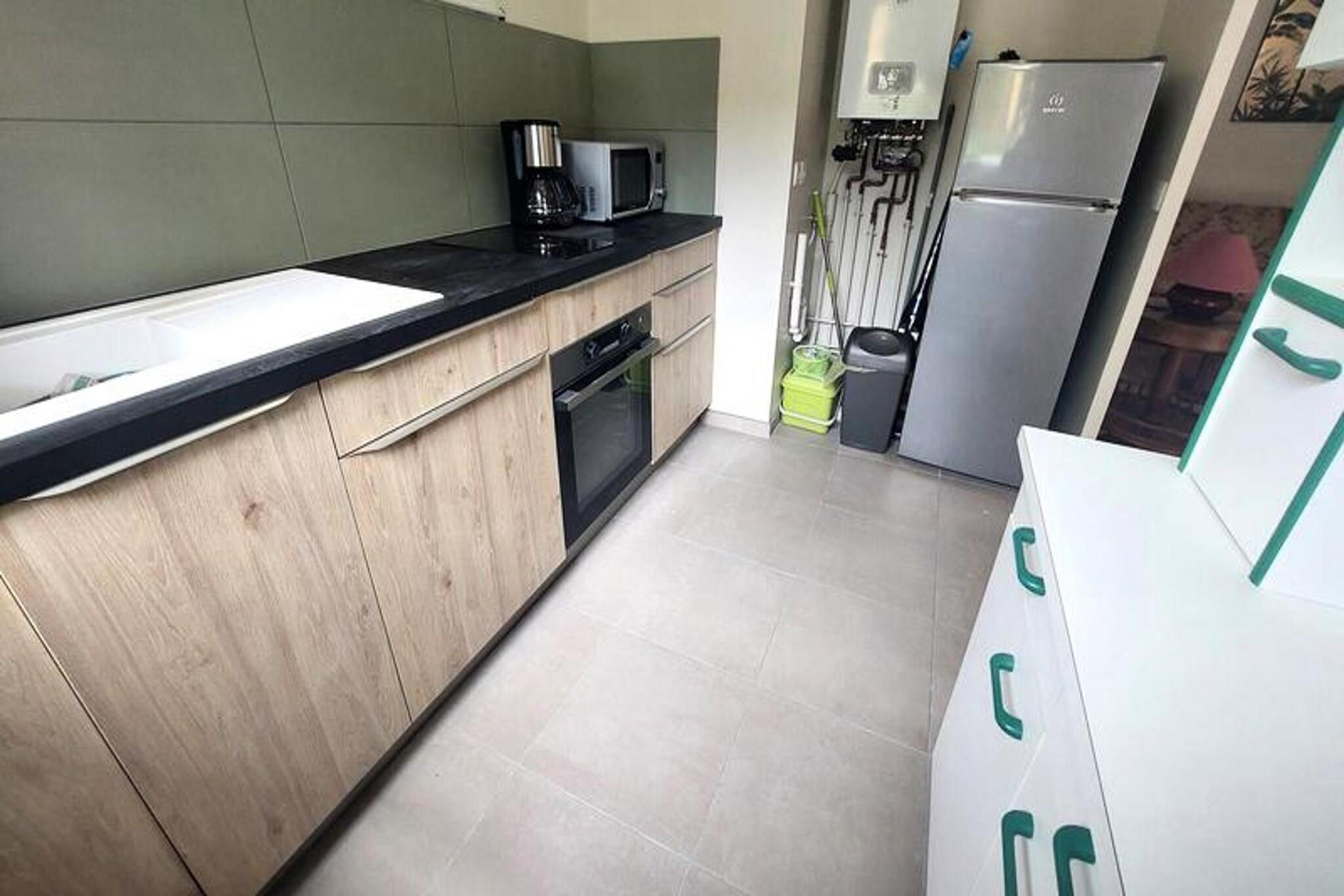 10, Rue Cabias i Aix les Bains Bolig bygget i 2000, i hjertet af byen, skoledistrikt Det ligger 703 m fra turistkontoret "til fods", 500 m fra togstationen, 358 m fra kasinoet, 2 km fra Chevalley Thermal Baths, 2,3 km fra Marlioz Thermal Baths, 2,5 km fra søen, 21 km fra Mont REVARD. (G5 på plan) Det består af 4 etager. Den er udstyret med en elevator og en åbning sikret af Vigik eller Intercom. Dens beliggenhed i hjertet af byen giver dig mulighed for nemt at drage fordel af alle de lokale butikker. Rummelig 2 værelses lejlighed tæt på butikker. På 1. sal med elevator, komfortrække Klassificeret som 2* møbleret turistindkvartering til 2 personer Areal på 50m² med udgang mod syd til en stor møbleret terrasse på 50m² Entré: garderobe/hylde, 1 rustikt møbel. Stue (PVC-gulv) med udgang mod syd til en terrasse: 1 bz, 1 lænestol, 1 bord, 6 stole, reol, fladskærms-tv, 1 lav enhed, 1 skrivebordsbord, 1 sofabord, 1 piedestalbord. Køkken åbent til stue (flisegulv) vindue: 2 kogeplader, ovn, mikroovn, køleskab/fryser, 1 kommode, brødrister, elektrisk kaffemaskine, elkedel, tallerkener, køkkenredskaber. Soveværelse: vindue til terrasse, 1 140cm ringbind, 2 sengeborde, 1 garderobe. Badeværelse (flisebelagt): Italiensk bruser, håndvask, vaskemaskine, håndklædetørrer, separat toilet med håndvask. DIVERSE: Videotelefon, individuel gaskedel, røgalarm, PVC-tømrer med termoruder, elektriske rulleskodder - Husdyr ikke tolereret. INTERNET-adgang "Box Bouygues" Stor terrasse møbleret med bord, 2 stole, 2 hvilestole. Udlejes med garage nr. 19, beliggende bagerst i bygningen. Yderligere tjenester mod tillægsgebyr: slutrengøring, sengelinned, håndklæder, babyseng (afhængig af tilgængelighed efter anmodning). Depositum (i euro) - 500 Opvarmning - 1