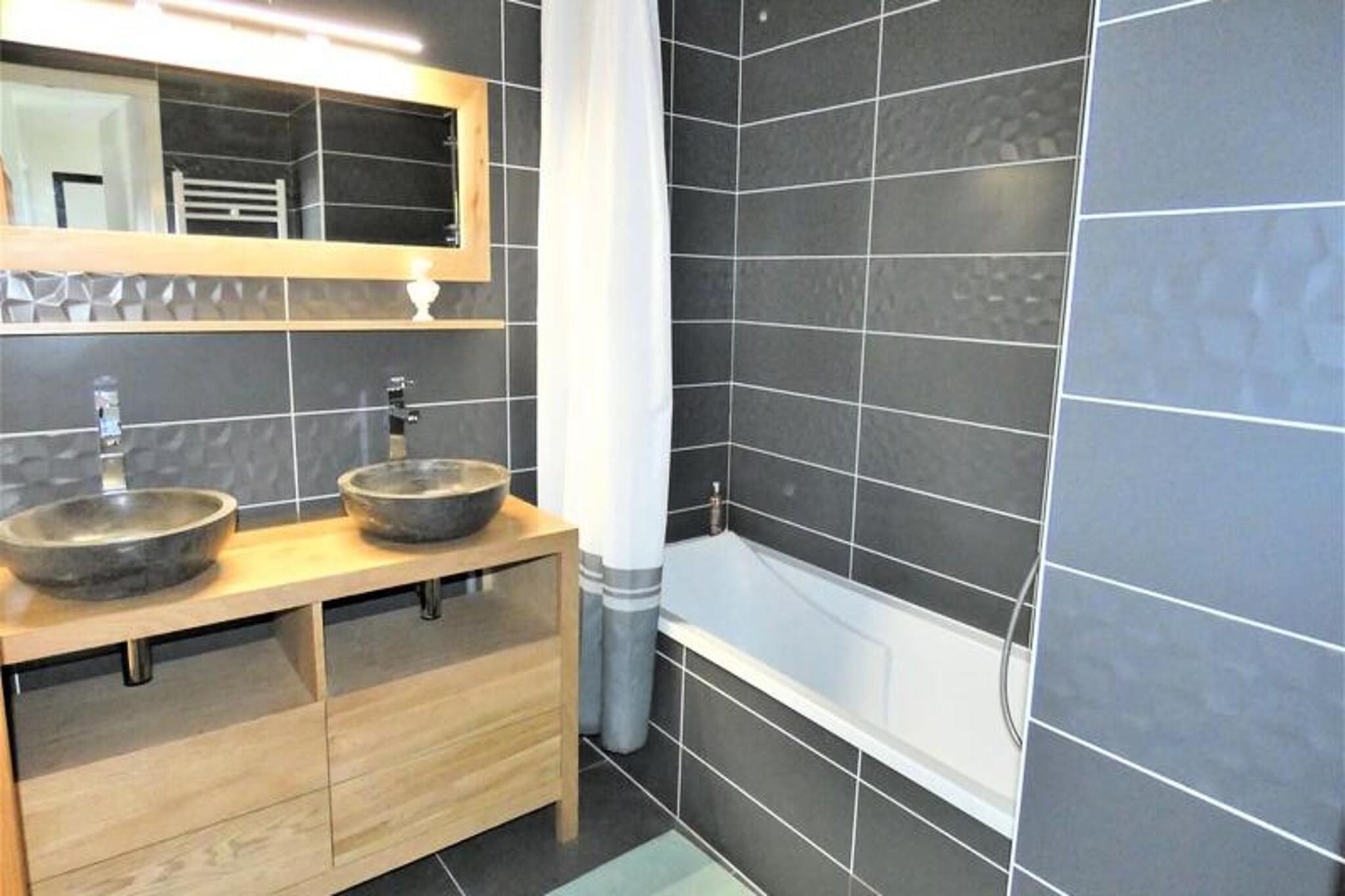 Ved 193, Chemin des Moellerons i Aix les Bains Lille luksusbolig, mellem by og sø. Ca. 2 km fra byens centrum, turistkontoret, 3 km fra Chevalley Thermal Baths, Ca. 2 km fra søen, 20 km fra Mont REVARD. (D.5 på planen) 300m fra busstoppestedet, apotek, bager. Det består af 3 etager med elevator, videotelefon, privat parkering på sydsiden af ??boligen, en have, der bruges som køkkenhave for nogle ejere, med nogle private hytter. Dens beliggenhed giver dig mulighed for at kombinere forretning med fornøjelse. 5 minutter i bil fra byens centrum og eller søbredden. Et stenkast fra Corsuet-skoven, et yndet sted for alle, der ønsker at tage et par gåture uden for byen, mens de forbliver tæt på den. Rigtig fin, rummelig og meget funktionel 3-værelses lejlighed På 3. sal med elevator - I Prestige sortiment Klassificering i møbleret turistindkvartering i 3* til 4 personer 65m² mod syd med altan Entre og gang (flisegulv): 1 skoskab, 1 spejl, 1 konsol, 1 lampe. Stue (flisegulv) med udgang til altan, sydvendt: 1 hjørnesofa, 1 sofabord, 1 træskænk, 1 stol, 1 rundt bord og 4 stole, 1 lille træskammel, 1 fladskærms-tv. Køkken åbent til stuen: 1 stor bordplade med 2 høje taburetter, køle/fryseskab, 4 induktionskogeplader, multifunktionsovn, mikroovn, emhætte, opvaskemaskine, 1 elektrisk kaffemaskine, 1 brødrister, 1 elkedel, service og køkkengrej. Soveværelse med nordvindue (PVC gulv): 1 140cm seng, 2 sengeborde, 2 lamper, 1 stol, 1 rød Voltaire lænestol, 1 overskab med skabe og hylder. Soveværelse med nordvindue (PVC gulv): 1 160 cm seng, 2 sengeborde, 2 lamper, 1 hvid flet lænestol, 1 overskab med skabe og hylder, 2 stole, 1 konsol. Fuldt flisebelagt badeværelse: dobbelt håndvask, badekar med gardin, elektrisk håndklædetørrer, 1 træhylde. WC (flisegulv): 1 vaskemaskine, 1 opbevaringsrum. DIVERSE: videotelefon, semi-kollektiv opvarmning med individuelle radiatorer, røgdetektor. Dyr tolereres ikke. Udlejes med 1 privat “unummereret” parkeringsplads placeret bagerst i boligen og adgang med fjernbetjening eller vigik. Yderligere tjenester mod tillægsgebyr: slutrengøring, sengelinned, håndklæder, kæledyr, babyseng (afhængig af tilgængelighed efter anmodning). Depositum (i euro) - 1000 Opvarmning - 1