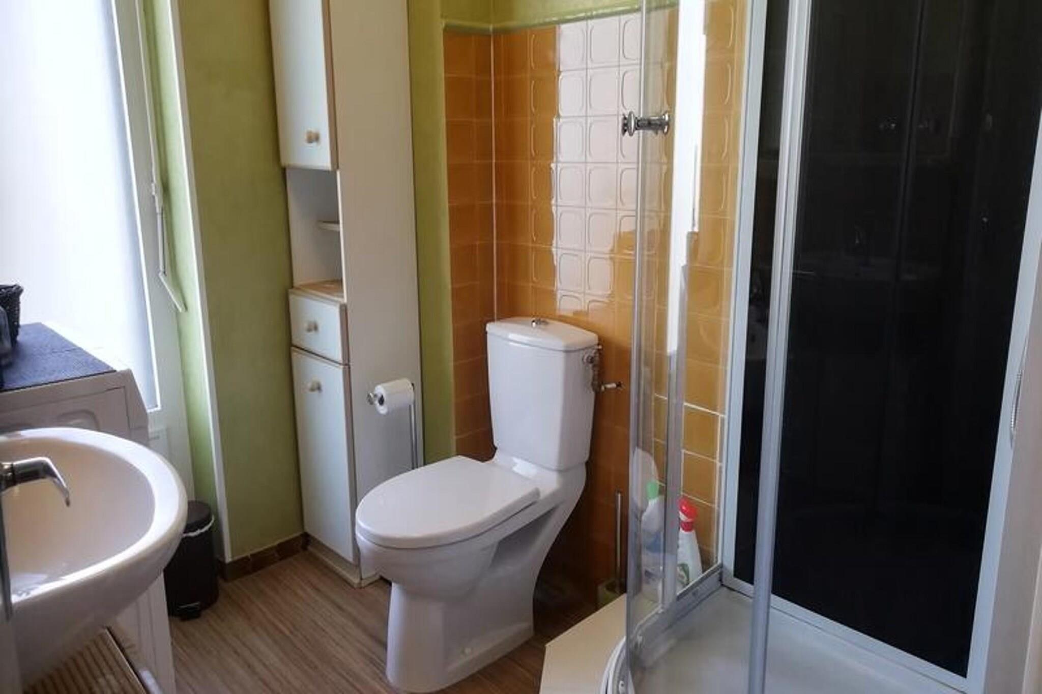 Klokken 7 - 9 og 11, Montée des Carrières Romaines i Aix les Bains Ejendomskompleks bestående af 3 bygninger bygget mellem 1973 og 1982. Beliggende 500 m fra turistkontoret, 1,5 km fra Chevalley termiske bade, 500 m fra "Marlioz" termiske bade, 1 km fra togstationen, 800 m fra kasinoet, 2500 m fra søen og 20 km fra Mont REVARD (J5 på kortet) Bygning D består af 7 etager med elevator. Trappe (7 trin) for at få adgang til hovedindgangen og 7 trin for at få adgang til elevatoren. Ved bagtilkørsel, på cykelsiden, ingen trin. Åbningen er sikret med vigik og samtaleanlæg. Det har en swimmingpool og en tennisbane, der er fælles for alle Montcalm-boliger. Lidt tilbagetrukket fra byen, men så tæt ved at bruge de forskellige genveje, vil det være nemt for dig at nå byens centrum på få minutter. Hyggelig og meget lys 1 værelses lejlighed På 4. sal med elevator, i komfortområde og klassificeret som 2* møbleret turistindkvartering til 2 personer Areal på 33m² mod vest/nord/øst på to altaner Stor entré (linogulv) med stort skab/garderobe, skoskab Stue (linogulv) med udgang til 2 altaner: 1 140 cm sengetøj, 2 natborde, 2 lamper, 2 klublænestole med fodstøtte, 1 sofabord, 1 lav enhed med fjernsyn, 1 bord, 4 stole, 1 server. Køkken (linogulv) med udgang til 1 balkon: el-komfur med ovn, mikroovn, emhætte, køleskab, elkedel, brødrister, elektrisk kaffemaskine, porcelæn og køkkenredskaber. Brusebad (linogulv): håndvask, vaskemaskine, brusekabine (forhøjet med et trin), 3 opbevaringsrum, toilet. Udlejes med parkeringsplads nummer 62 DIVERSE: røgalarm, cykelrum, søjleventilator, solgardiner, små kæledyr "under 15 kg" tolereret. Internetadgangsboks SFR Yderligere tjenester mod tillægsgebyr: slutrengøring, sengelinned, håndklæder, kæledyr, babyseng (afhængig af tilgængelighed efter anmodning). Depositum (i euro) - 305 Opvarmning - 1