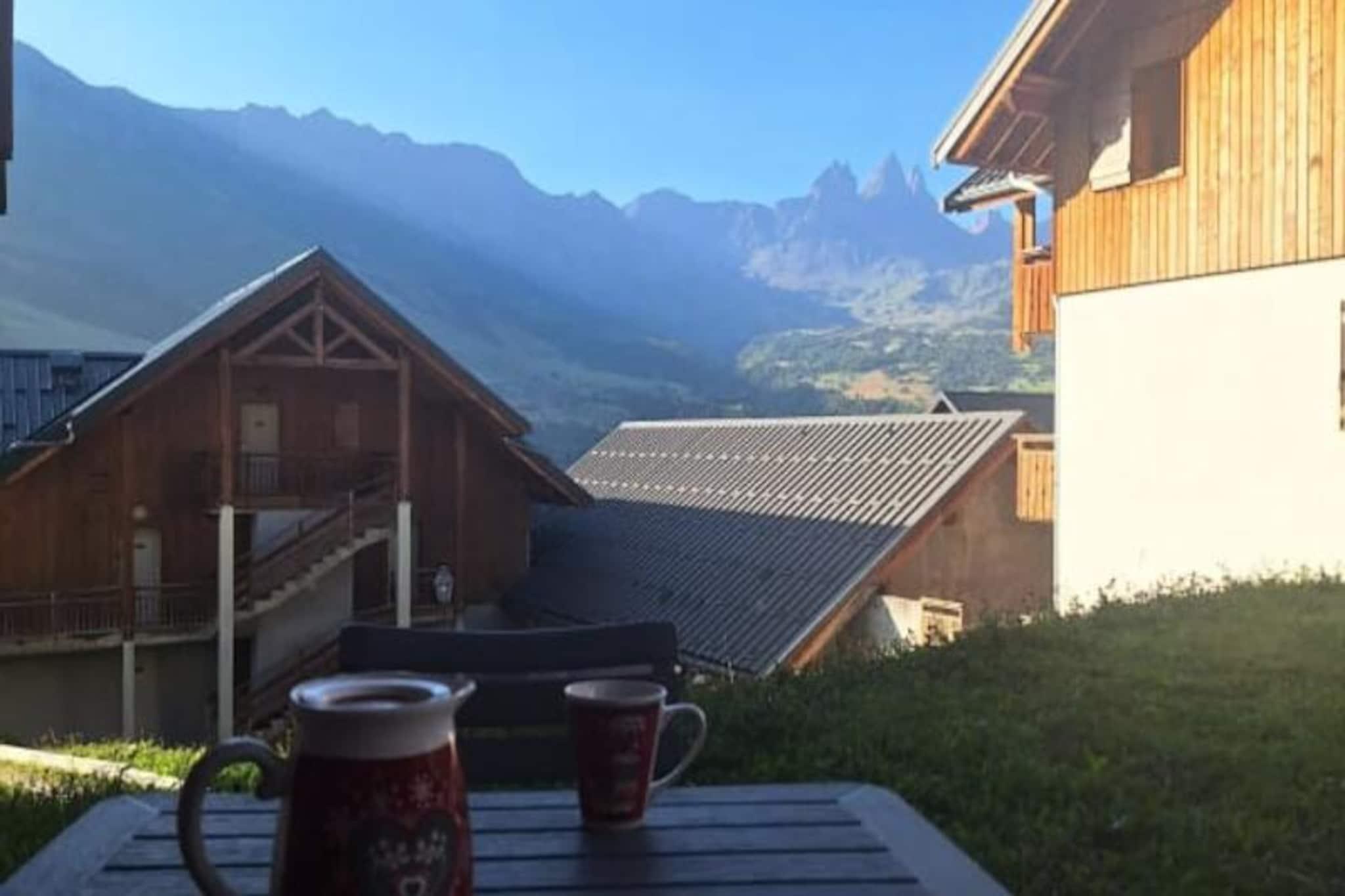 Beliggende kun få minutter fra skiløjperne i Albiez-Montrond er denne charmerende lejlighed en ideel base for en bjergferie. Med kapacitet til at rumme op til 8 personer, tilbyder det to hyggelige soveværelser og ekstra sovearrangementer, hvilket sikrer rigelig plads til grupper eller familier. Kæledyr er velkomne, så du kan tage dine firbenede ledsagere med. Stuen med tv og komfortable møbler åbner op til et fuldt udstyret køkken, perfekt til at tilberede måltider efter en dag på pisterne. Lejligheden har et bjerghjørne med køjesenge for ekstra soveplads. Det første soveværelse indeholder en queen-size seng (160x200 cm), mens det andet byder på to enkeltsenge (90x190 cm). Derudover har bjerghjørnet to køjesenge (90x190 cm), og en sovesofa i stuen giver ekstra sovemuligheder. Badeværelset er udstyret med badekar, ideelt til at slappe af efter en dag med udendørs aktiviteter. Uafhængige toiletter sikrer ekstra bekvemmelighed. Nyd den friske bjergluft på den udendørs terrasse, komplet med et bord og stole til to, hvor du kan slappe af, mens du nyder den betagende udsigt over Aiguilles d'Arves. Yderligere faciliteter inkluderer et skiskab til opbevaring af dit udstyr og faciliteter til småbørn, såsom en rejseseng, selestol og børnebøger og legetøj. Bemærk venligst, at sengetøj ikke er inkluderet, og at Wi-Fi ikke er tilgængeligt. Ejendommen er ikke egnet til gæster med nedsat mobilitet på grund af trapper. Ankomster er fra kl. i løbet af sæsonen, med afgange inden kl. 9, men justeringer kan være mulige.