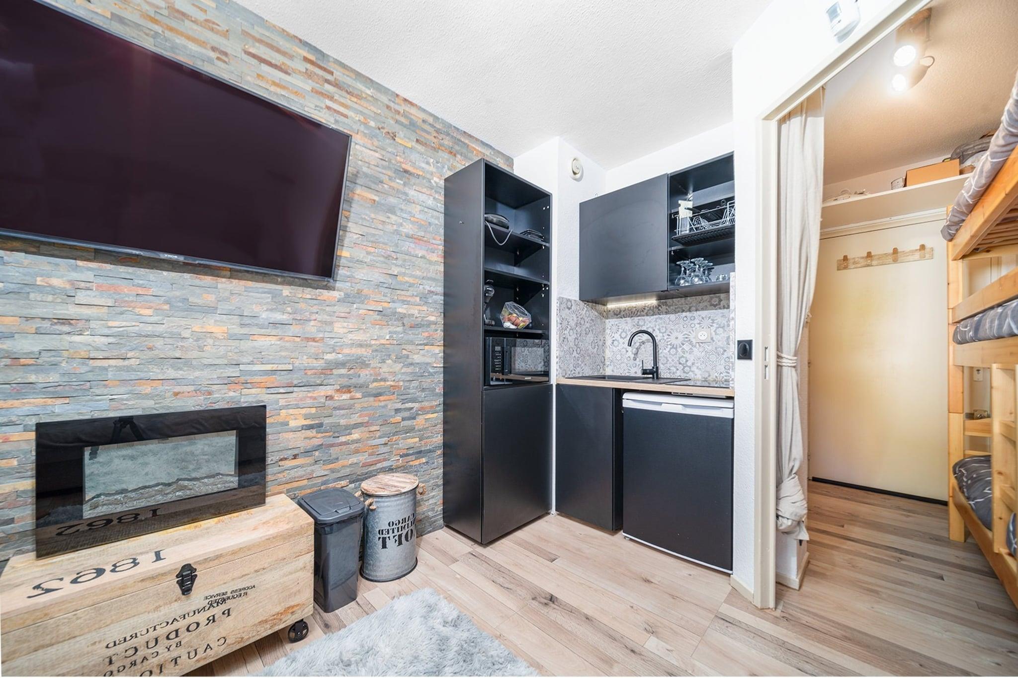 Denne smagfuldt indrettede studio har plads til op til 4 gæster inden for dets kompakte 15 m² store rum, med stilfulde nye møbler og en hyggelig indretning. Perfekt beliggende ved foden af skiløjperne giver det nem adgang til udendørs eventyr i maleriske bjergrige omgivelser. Ejendommen omfatter praktiske faciliteter såsom udendørs møbler, en balkon til at nyde frisk luft og naturskøn udsigt, et tv til underholdning og udendørs parkering i den tilstødende bygning. Beliggende kun 30 meter fra skisportsstedet er dette studie et fantastisk valg for vintersportsentusiaster, der leder efter bekvemmelighed og nærhed til pisterne. Den nærliggende bymidte, kun 500 meter væk, byder på et udvalg af caféer, butikker og restauranter at udforske, mens et supermarked i samme afstand sikrer, at du har alt, hvad du behøver under dit ophold. Den familievenlige beliggenhed gør den ideel for rejsende, der søger en balance mellem afslapning og aktiviteter. Studiet har et veludstyret køkken med blandede gas- og elektriske apparater, herunder køleskab, mikroovn, tallerkener, bestik, køkkenredskaber, kaffemaskine og brødrister. Denne opsætning giver alt det nødvendige for en komfortabel ferie med selvforplejning. Med sit moderne design og tankevækkende bekvemmeligheder tilbyder denne studio et dejligt tilflugtssted for en bjergferie.