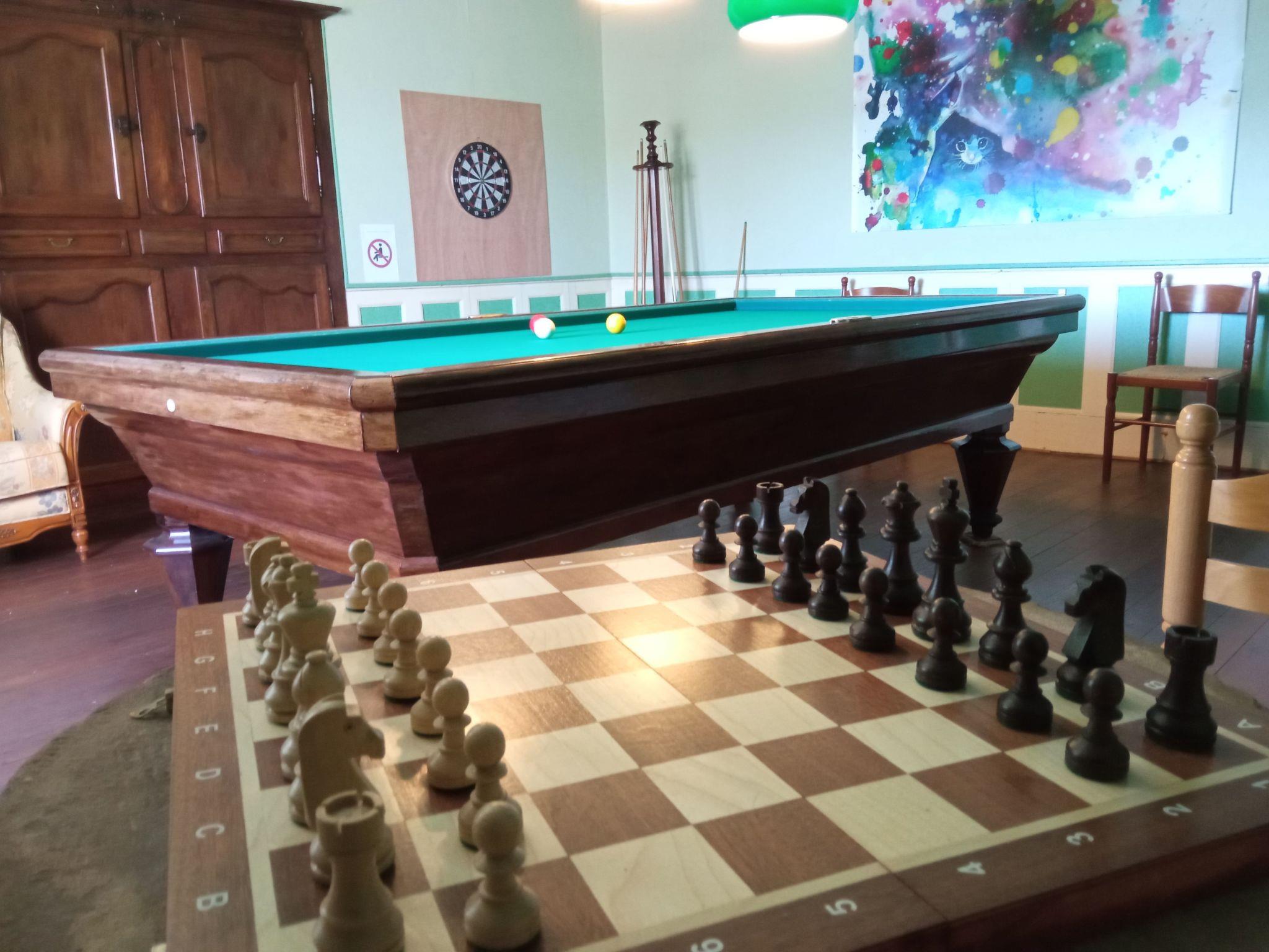 - Games room of 36m² with a large French billiard table, chess and darts.