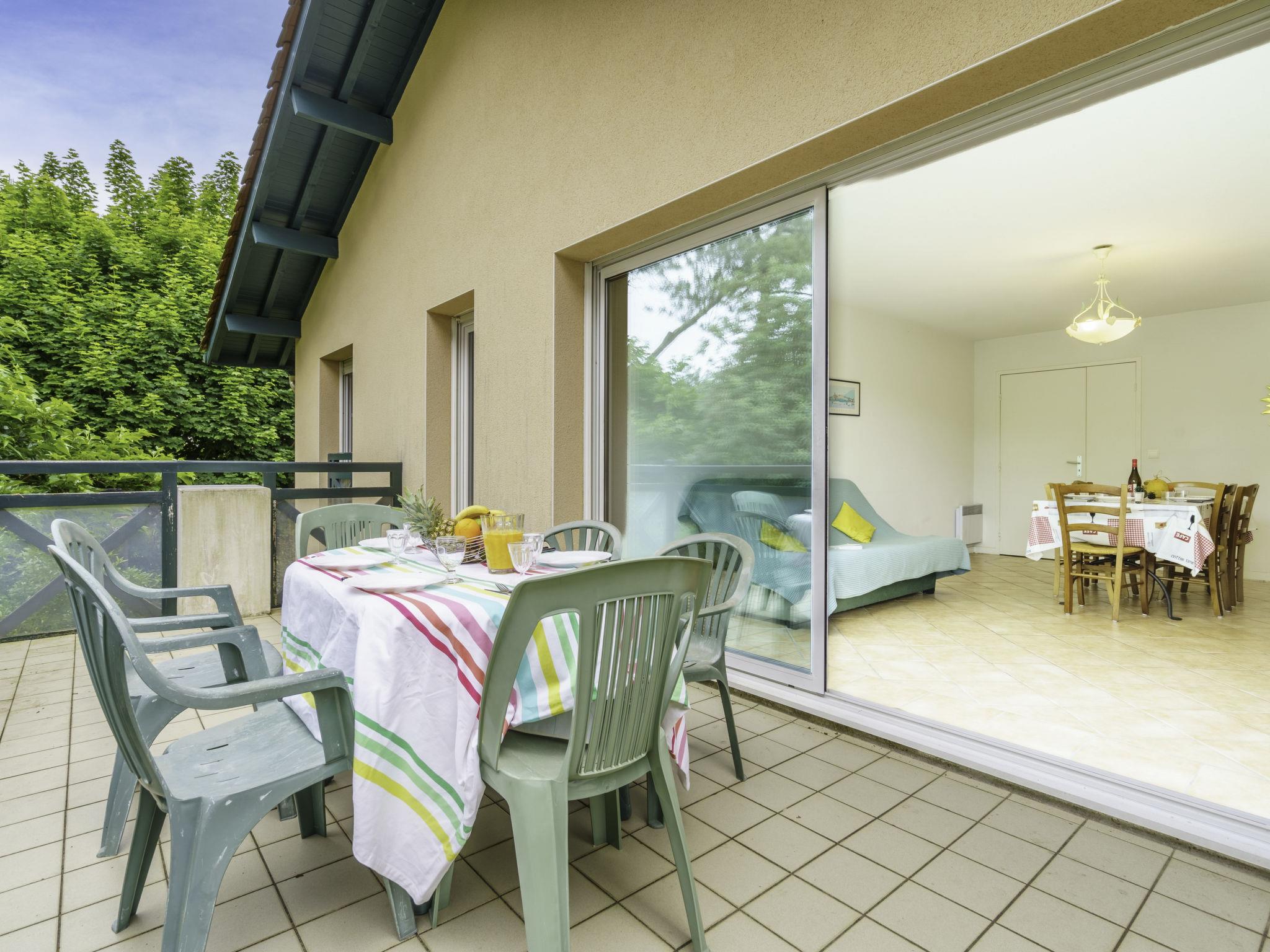 Anglet 6 km from Biarritz: Residence "Arnaïa", 2 storeys, surrounded by trees. In the district of Chiberta, in a quiet position in the residential district, 50 m from the edge of the forest, 1.7 km from the sea, 800 m from the lake, 1.7 km from the beach. Shop 2.5 km, grocery 2.5 km, restaurant 1.7 km, bar 1.7 km, bakery 2 km, café 1.7 km, bus stop 250 m, sandy beach "Les Dunes" 1.7 km, thermal baths "Athlantal" 1.6 km. Marina 2.1 km, golf course (18 hole) 1.6 km, surf school 1.7 km, riding stable 900 m, ice rink 2 km. Nearby attractions: Promenade de la Barre/Plages d'Anglet 1.7 km, Bayonne 4.9 km, Biarritz 5.2 km, St-Jean-de-Luz 20 km, San Sebastiàn 53 km. Hiking paths: La Rhune 48 km. Please note: no lift.