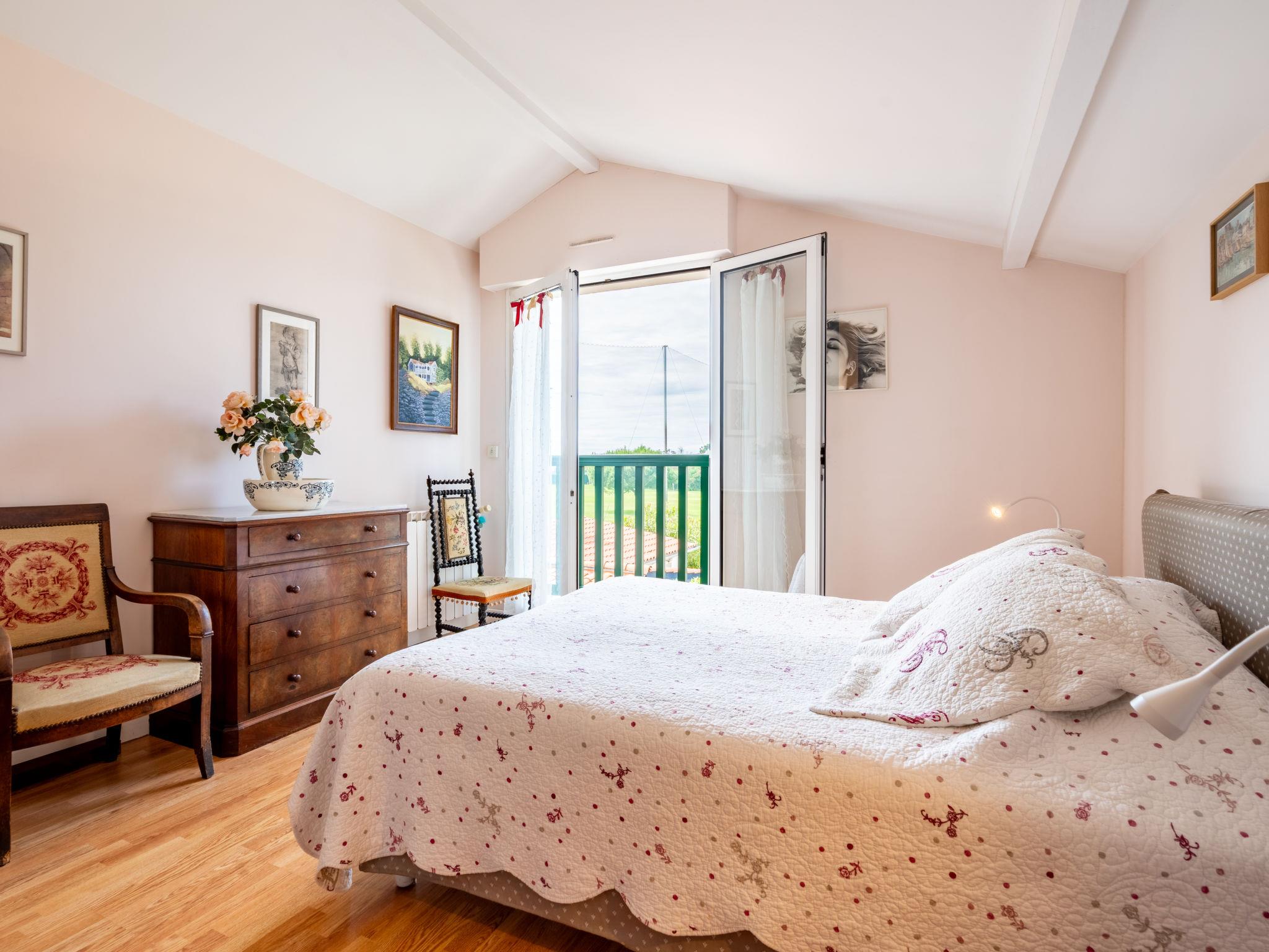 Anglet 2 km from Biarritz: Villa "Liserons". Golf du Phare, in a quiet position, 1.6 km from the sea, 1.6 km from the beach. Private: property 460 m2, garden lawn and wildlife garden, swimming pool (3 x 5 m, seasonal availability: 01.Jun. - 30.Sep.) with shutter cover. Parking (for 2 cars) on the premises. Shop, grocery 600 m, restaurant 500 m, bus stop "Larochefoucault" 700 m, sandy beach "Le Miramar" 1.6 km, thermal baths "Athlantal" 4.6 km. Golf course (18 hole) 800 m, surf school 1.6 km, tennis 1.2 km, riding stable 12.9 km. Nearby attractions: Golf du Phare 800 m, Halles des 5 Cantons 1.3 km, Phare de biarritz 1.9 km, Aquarium 3 km, Bayonne 6.2 km, Saint-Jean-de-Luz 17 km. Hiking paths: Le Sentier du Littoral 800 m, La Rhune 28 km.