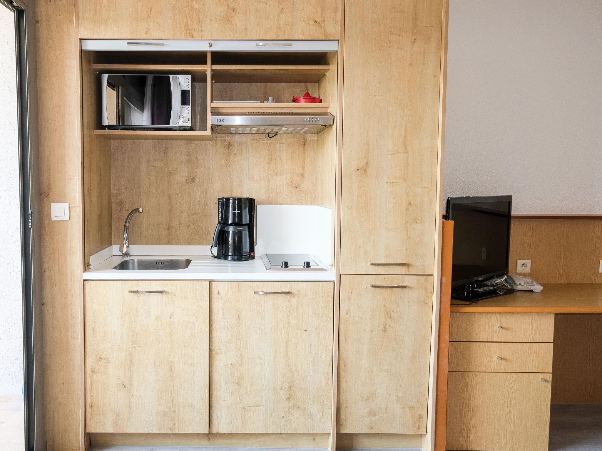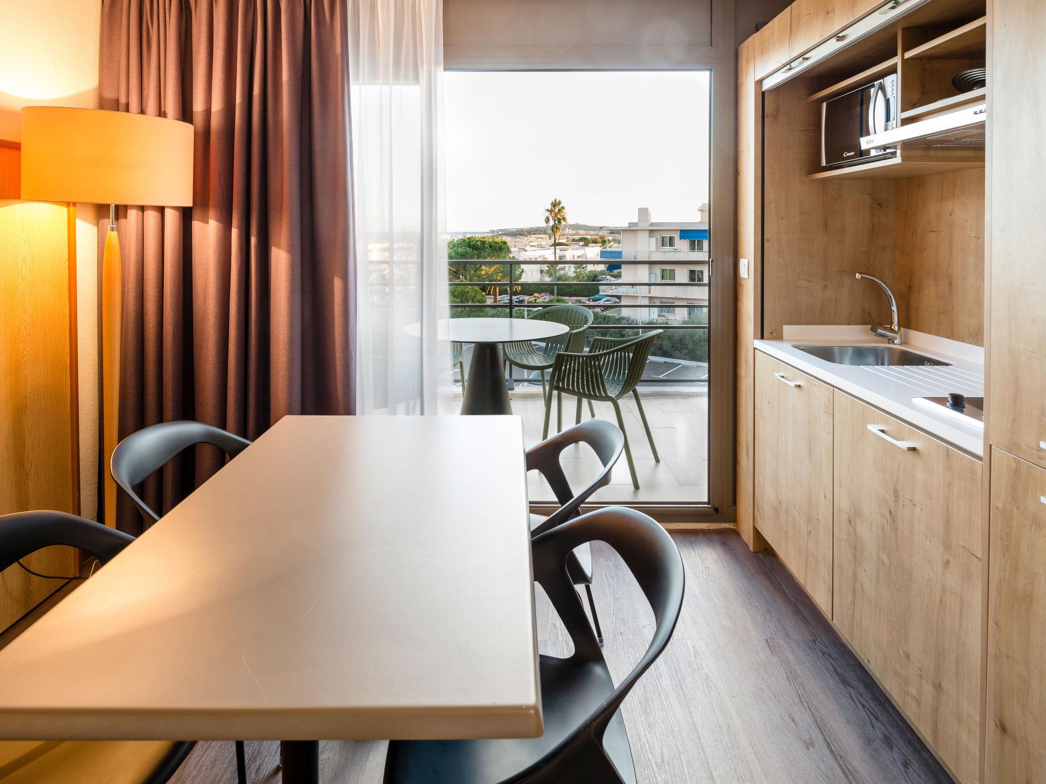 "Résidence Thalazur Antibes", 1-room apartment 28 to 33 m2. Comfortable furnishings: living/sleeping room with 1 french bed (160 cm), dining table and satellite TV. Exit to the balcony. Entrance hall with 1 bed (80 cm). Open kitchen (dishwasher, 2 ceramic glass hob hotplates, microwave, electric coffee machine). Bathroom, sep. WC. Heating, air-conditioning. Balcony. Balcony furniture. Facilities: safe, hair dryer. Internet (WiFi, free). Please note: non-smokers only. Maximum 1 small pet/ dog allowed. Offer by a commercial proprietor according to Art. 155, IV, CGI