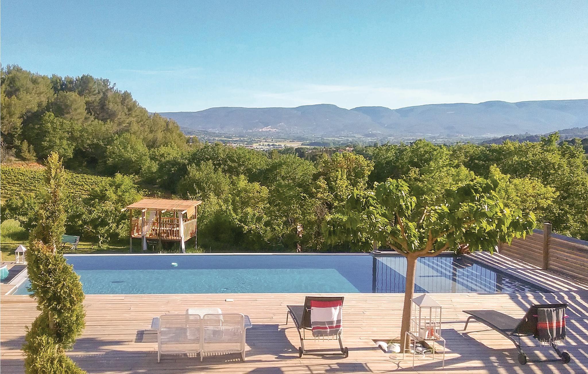 Denne herlige feriebolig med privat overløbspool ligger fem minutters kørsel fra centrum af Apt og forkæler sine gæster med en overvældende udsigt til Luberon. Den moderne bolig, der ligger op ad ejernes, prydes af sin rolige beliggenhed. Soveværelser og badeværelse ligger på underetagen. Den er indrettet smagfuldt og med kærlighed, og her bor I i en bakket region med mange udflugts- og aktivitetsmuligheder: Lourmarin og Gordes, der officielt er blandt Frankrigs smukkeste landsbyer, okkerbruddene af Rustrel, Gargas og Lacoste med borgruinen, hvor Marquis de Sade en gang boede. Tag på gåture igennem Apt, der venter på jer indlejret i et vinområde i Provence. Byen er en højborg for kandiseret frugt, men Apt er også kendt for keramik med oprindelse i antikken. Således prydes mange bygninger af lokalt fremstillede sten og fliser. Pas på trappen op til det andet soveværelse. For jeres egen sikkerheds skyld må I ikke tage oppustelige stole og luftmadrasser med i poolen.