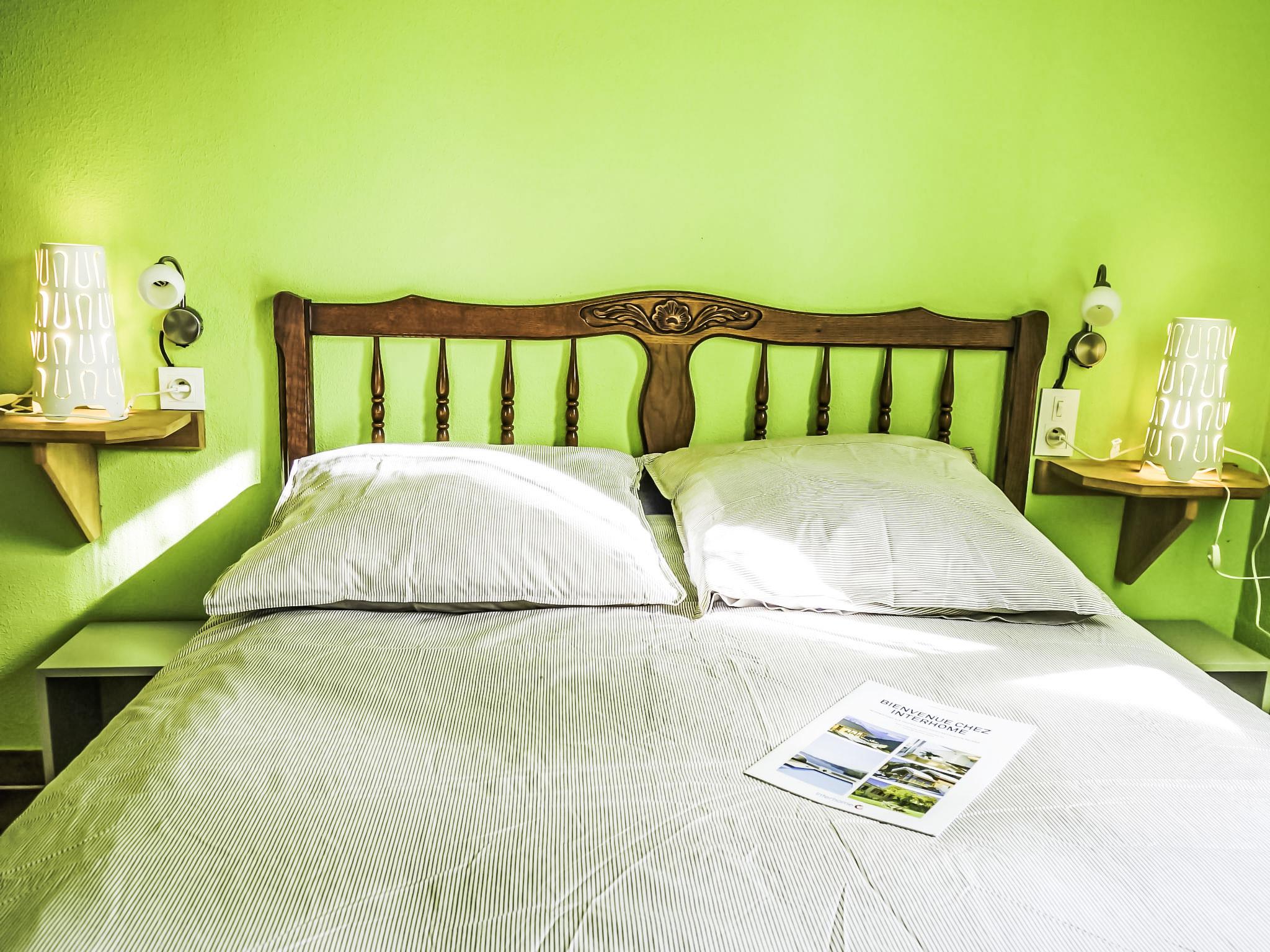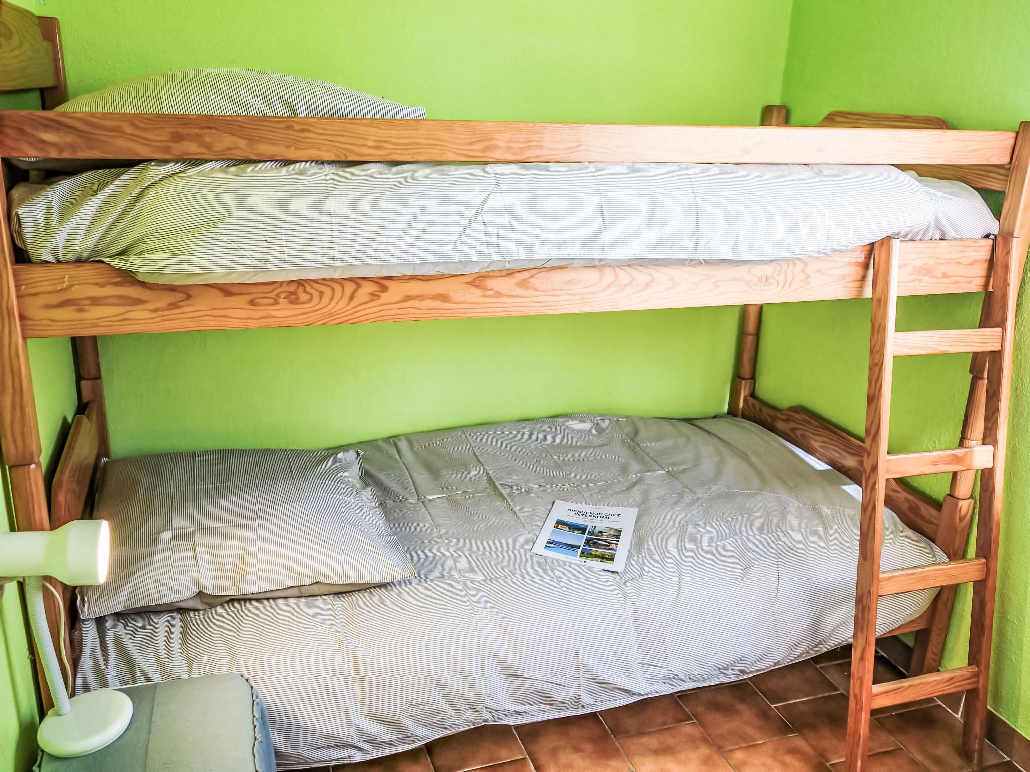 3-room house 35 m2. Object suitable for 2 adults + 2 children. Rustic furnishings: living/dining room. Exit to the terrace. 1 room with 1 french bed (140 cm). 1 room with 1 x 2 bunk beds (80 cm). Kitchenette (2 hot plates, oven, electric coffee machine). Bathroom, sep. WC. Electric heating. Deck chairs. Please note: maximum 1 pet/ dog allowed. Smoke alarm.
