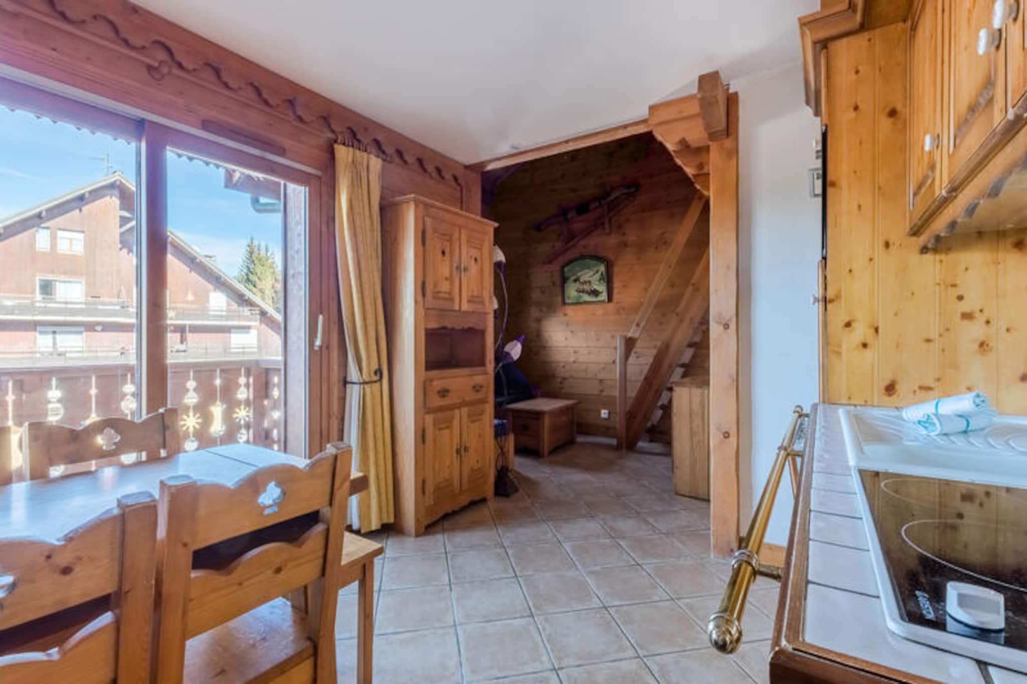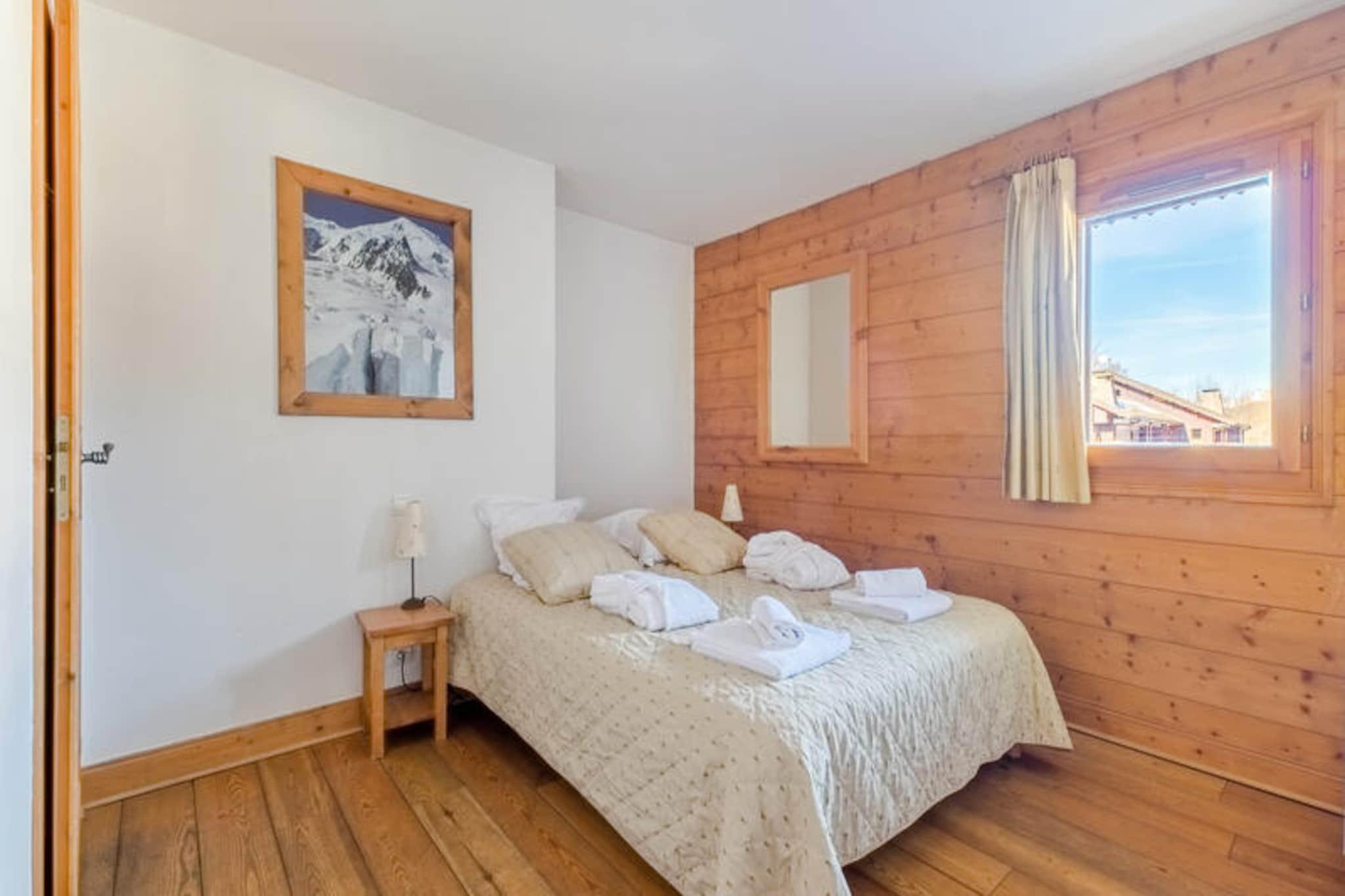 Denne hyggelige lejlighed i chalet-stil ligger i familieferiestedet Carroz d'Arraches, i en h?jde af 1140 meter. Den har to sovev?relser, der kan sove op til seks personer (inklusive en sovesofa i stuen). Lejligheden er k?ledyrsvenlig (pris ved foresp?rgsel). Boligen ligger t?t p? feriestedets centrum, med turistkontoret 500 meter v?k og de f?rste sv?vebaner og skiskole cirka 800 meter v?k. En gratis shuttle-stop er bekvemt placeret 100 meter fra boligen for nem adgang til pisterne. Omr?det byder p? caf?er, restauranter, butikker og en k?bmand mindre end 100 meter v?k. B?rneklubber er i n?rheden for b?rn i alderen 3 til 12. Selve lejligheden har en balkon, en stue med spiseplads, et k?kken ?bent til stuen og to badev?relser (et med bruser og toilet, et andet med badekar). G?sterne kan slappe af efter en dag p? ski i den gratis sauna og jacuzzi (15+) eller den opvarmede indend?rs swimmingpool (?ben fra 9.00 til 20.00 s?ndag-fredag, 11.00 til 21.00 l?rdag). Yderligere faciliteter omfatter skiskabe, overd?kket parkering (mod betaling) og en spa (mod betaling). Sengelinned, h?ndkl?der og det meste af slutreng?ringen er inkluderet. Der kr?ves et depositum.