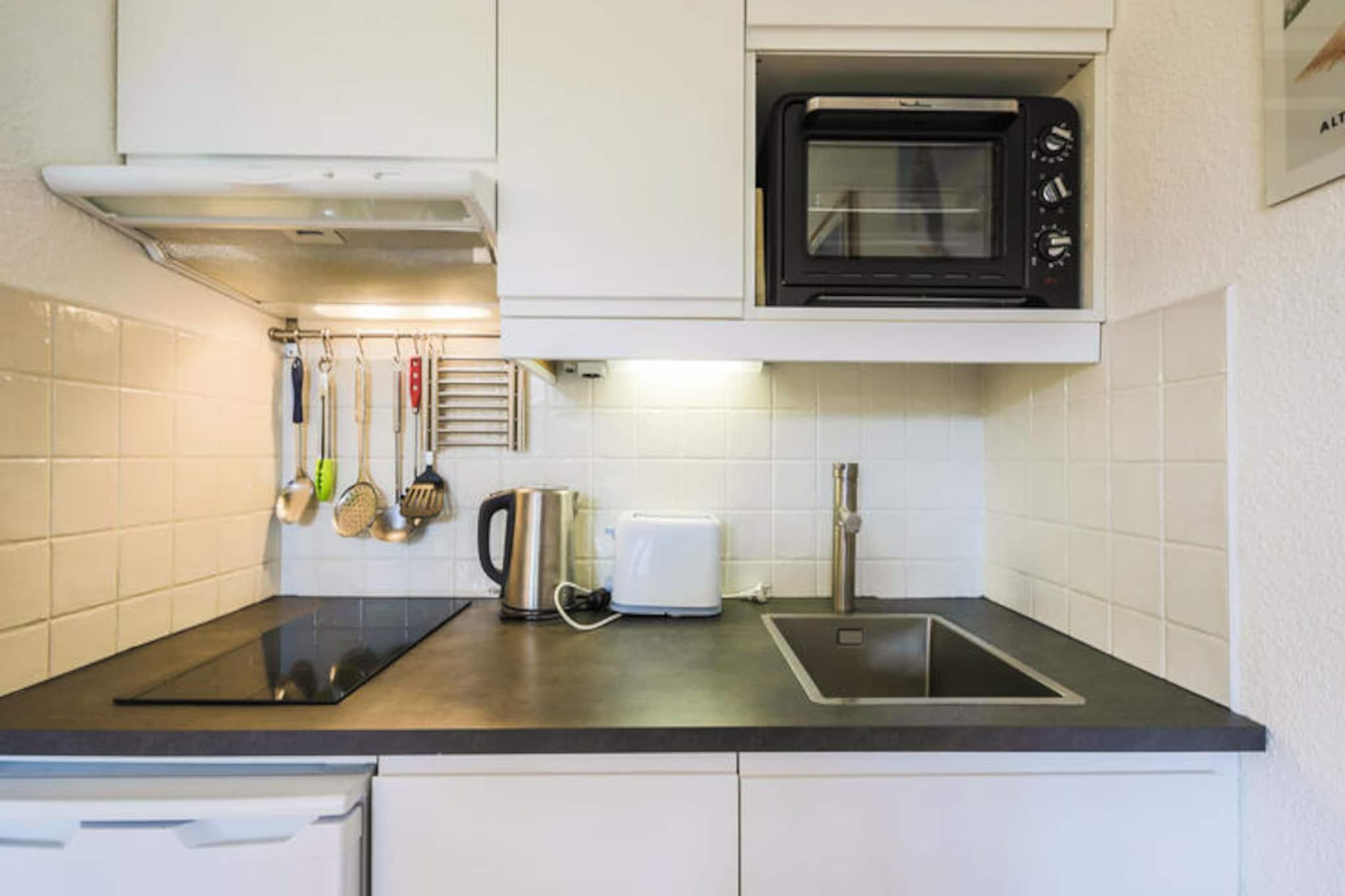 Højt over de maleriske landskaber i de franske Alper tilbyder denne charmerende lejlighed i Sirius Residence et fredfyldt tilflugtssted i hjertet af Flaine's Forêt-kvarter. I en højde af 1.700 meter inviterer ejendommen dig til at fordybe dig i den betagende naturlige skønhed, mens du nyder bekvemmeligheden ved en livlig alpelandsby kun få skridt væk. Uanset om du søger eventyr eller afslapning, tilbyder denne beliggenhed den perfekte balance mellem begge dele. Den hyggelige 25 m² store lejlighed er omhyggeligt designet for at maksimere komfort og funktionalitet. Den har en indbydende stue med en tresæders sofa, et åbent køkken, der er udstyret til alle dine kulinariske behov, og en spiseplads med plads til fire personer. Der er to sovepladser: en med en dobbeltseng og den anden med køjesenge, hvilket gør den ideel til familier eller små grupper. En privat altan tilbyder en fantastisk udsigt over de frodige omgivelser, mens badeværelset med badekar og separat toilet sikrer bekvemmelighed under dit ophold. Beliggende kun 50 meter fra Forêt-kvarterets indkøbscenter har du nem adgang til butikker, restauranter og vigtige faciliteter. En elevator forbinder dig med Flaine Forum, resortets livlige centrum, hvor du finder barer, aktiviteter og underholdning. For skiløbere ligger Grand Massif-skiområdet kun 500 meter væk og kan nås til fods eller med den gratis skibus. Om sommeren kan du udforske vandrestier, mountainbike-stier og regionens rige kulturelle tilbud. Uanset om du er her for at suse ned ad uberørte pister eller blot slappe af i den rolige alpine atmosfære, er denne ejendom et indbydende udgangspunkt for uforglemmelige minder i Flaine. Oplev bjergenes magi i hvert øjeblik af dit ophold.