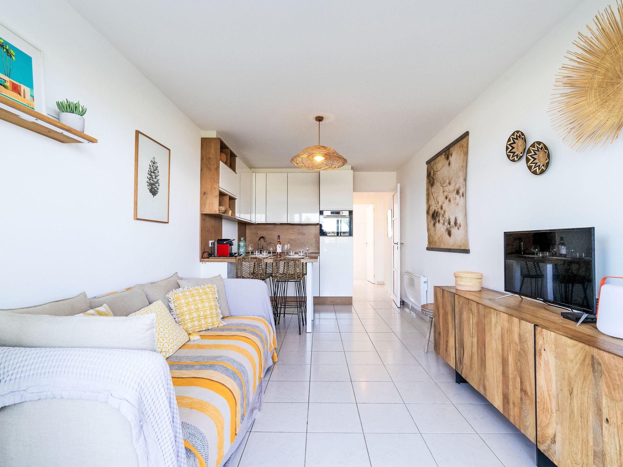 3-room apartment 43 m2, on the ground floor. Renovated in 2021, comfortable and beautiful furnishings: living/dining room with TV (flat screen). Exit to the terrace. 1 room with 1 french bed (1 x 160 cm, length 190 cm). 1 room with 2 beds (90 cm, length 190 cm). Open kitchen (oven, dishwasher, 2 induction hot plates, toaster, kettle, freezer, electric coffee machine). Shower/WC. Electric heating. Terrace 10 m2, north facing position. Terrace furniture. Facilities: washing machine, dryer, hair dryer. Internet (WiFi, free). Parking space n 56 (fenced 1 car). Please note: smoke alarm. Offer by a private individual according to Art. 155, IV of CGI. 33009002346E2