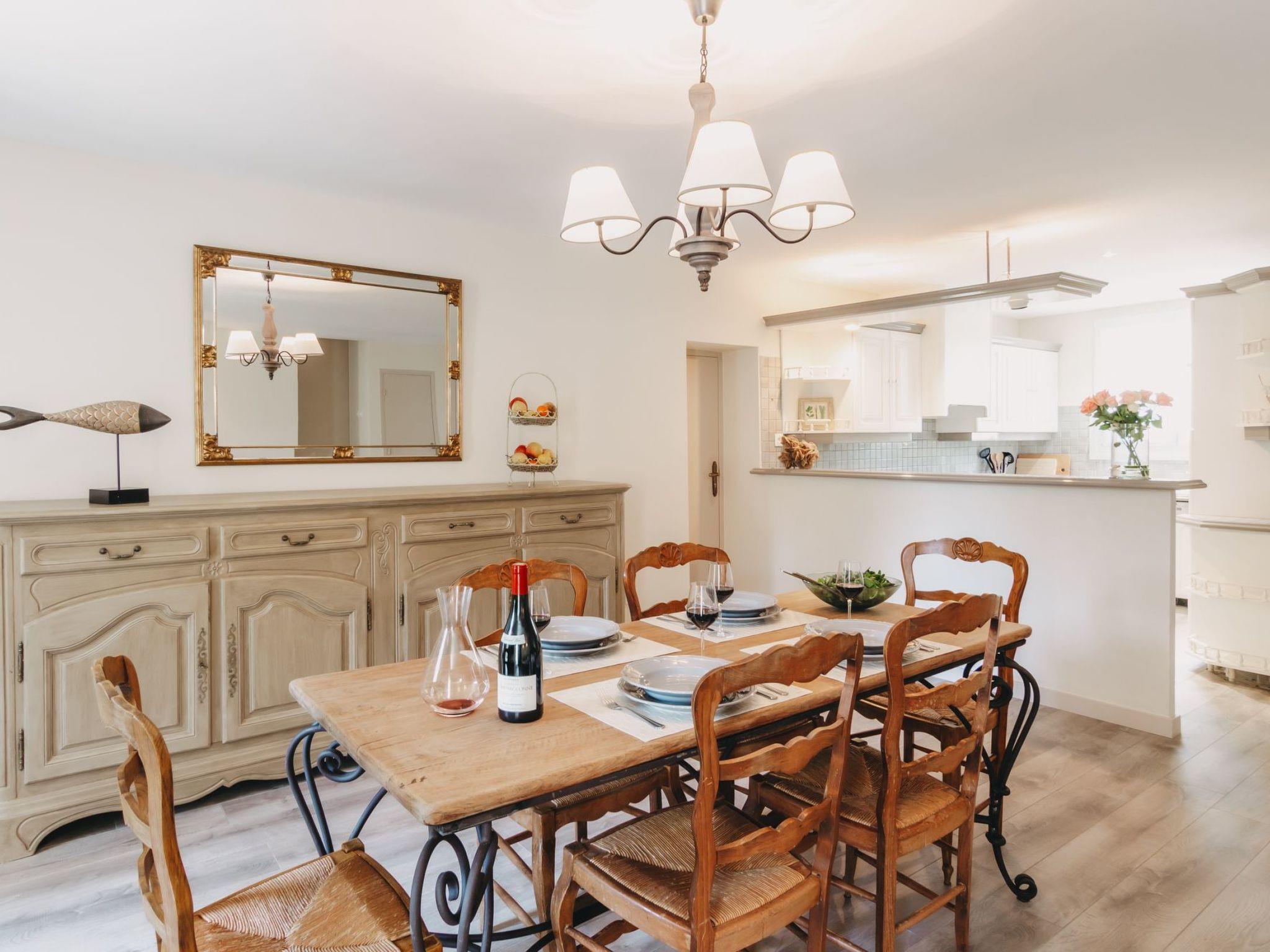 The 200-year-old estate is located in the middle of the Languedoc vineyards, just 7 kilometres from Narbonne, in the middle of a large nature reserve, between the mountain ranges of the Massif de La Clape and the sandy beaches of the Mediterranean.In the surrounding area, you can visit destinations such as Gruissan, the Canal du Midi in Le Somail, Carcassonne, the Abbaye de Frontfroide or the idyllic little village of Bages.This spacious flat for 4 people with 2 bedrooms is available on the estate.The rooms and facilities:A separate entrance leads to the upper floor of the house. Here you will find two spacious living and dining rooms with an open-plan kitchen. The kitchen is equipped with all the necessary cooking utensils, crockery, a dishwasher, coffee machine, microwave and oven, as well as five beautiful bedrooms and three spacious bathrooms, with direct access to the terrace, which has its own barbecue. The house is located in a 8,000 square metre park and has a pool and parking facilities on the property.the flat itself has a washing machine, satellite TV and free Wi-Fi is available throughout the flat.Brief descriptionOther : Non-smoking houseShort description 1Number of kitchens : 2SurroundingsSports facilities in the area : Golf course, mountain biking, cycling toursGarden and outdoor facilitiesRecreational facilities at the property : Outdoor pool for shared use, swimming poolGarden equipment : Garden furniture available, barbecueServicesServices (may be subject to charges) : Shopping service before arrival, Cleaning service during your stay, Transfer service (airport etc.)