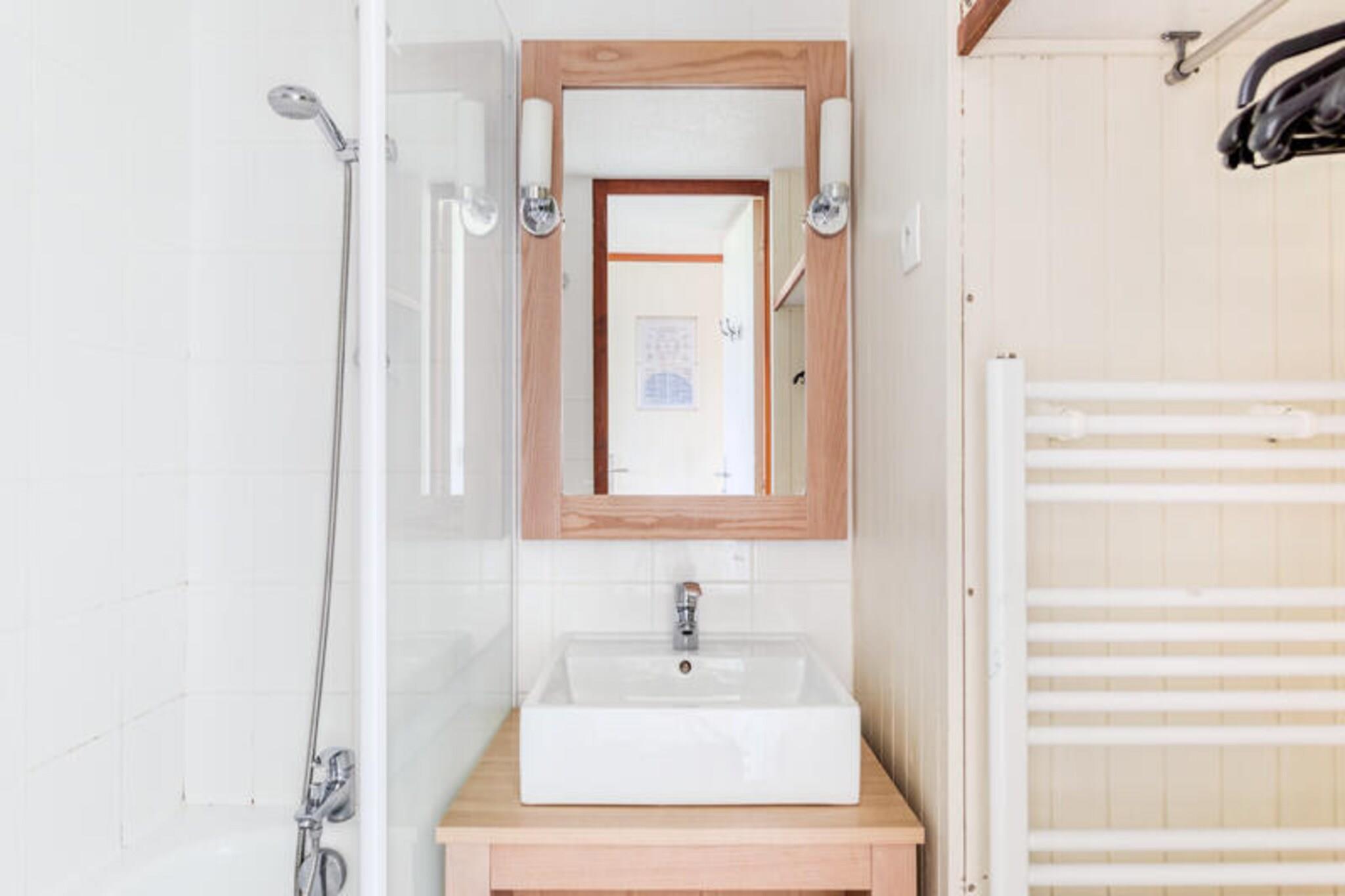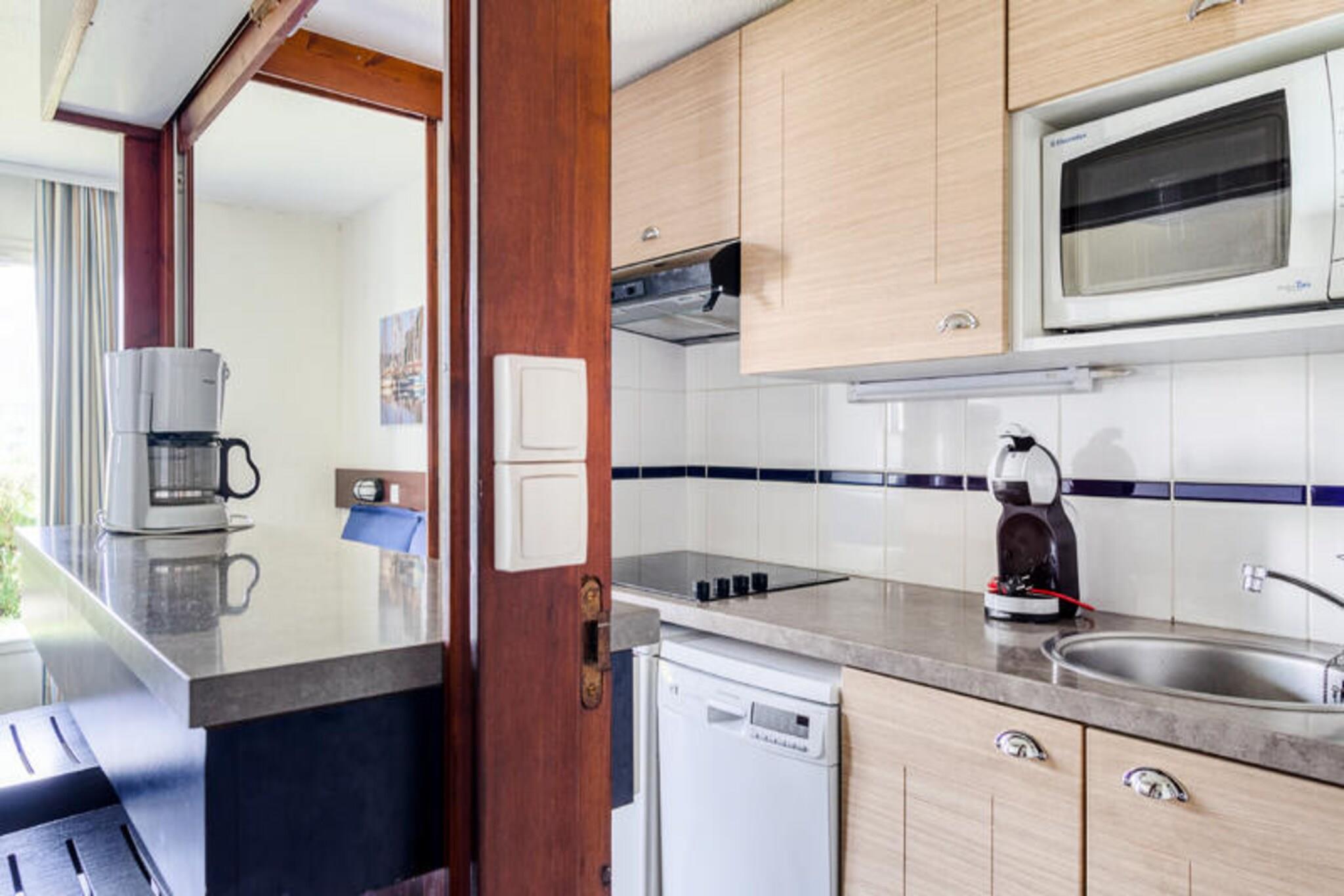 Dette komfortable lejlighedskompleks i stueetagen, beliggende på Rhuys-halvøen i Bretagne, tilbyder traditionel bretonsk charme med sine granithuse og hvide træbalkoner. Ejendommen ligger kun få skridt fra havnen, havet og Fogeo-stranden (300 meter væk). Det har også direkte adgang til Miramar Crouesty thalassoterapicenter, perfekt til en afslappende spa-ferie. Den omkringliggende landsbys centrum ligger en kort gåtur derfra, og tilbyder en række butikker og restauranter. Gæsterne kan også nyde en række fritidsaktiviteter på stedet, fra svømning og beachvolley til at udforske Morbihan-bugten og Quiberon-bugten. Mens kæledyr er tilladt mod et ekstra gebyr (tjek med boligen), er opladning af elbiler forbudt. Denne særlige lejlighed på 35 m2 har en vestvendt terrasse, en stue med en standard sovesofa til to og to enkeltsovesofaer, et soveværelse med en dobbeltseng, et badeværelse med separat toilet og en fuldt udstyret amerikansk stil. køkken. Faciliteterne inkluderer en overdækket parkeringsplads, men Wi-Fi, sengelinned, håndklæder og slutrengøring er alle tilgængelige mod et ekstra gebyr. Et babysæt er også tilgængeligt efter anmodning (afhængigt af tilgængelighed).