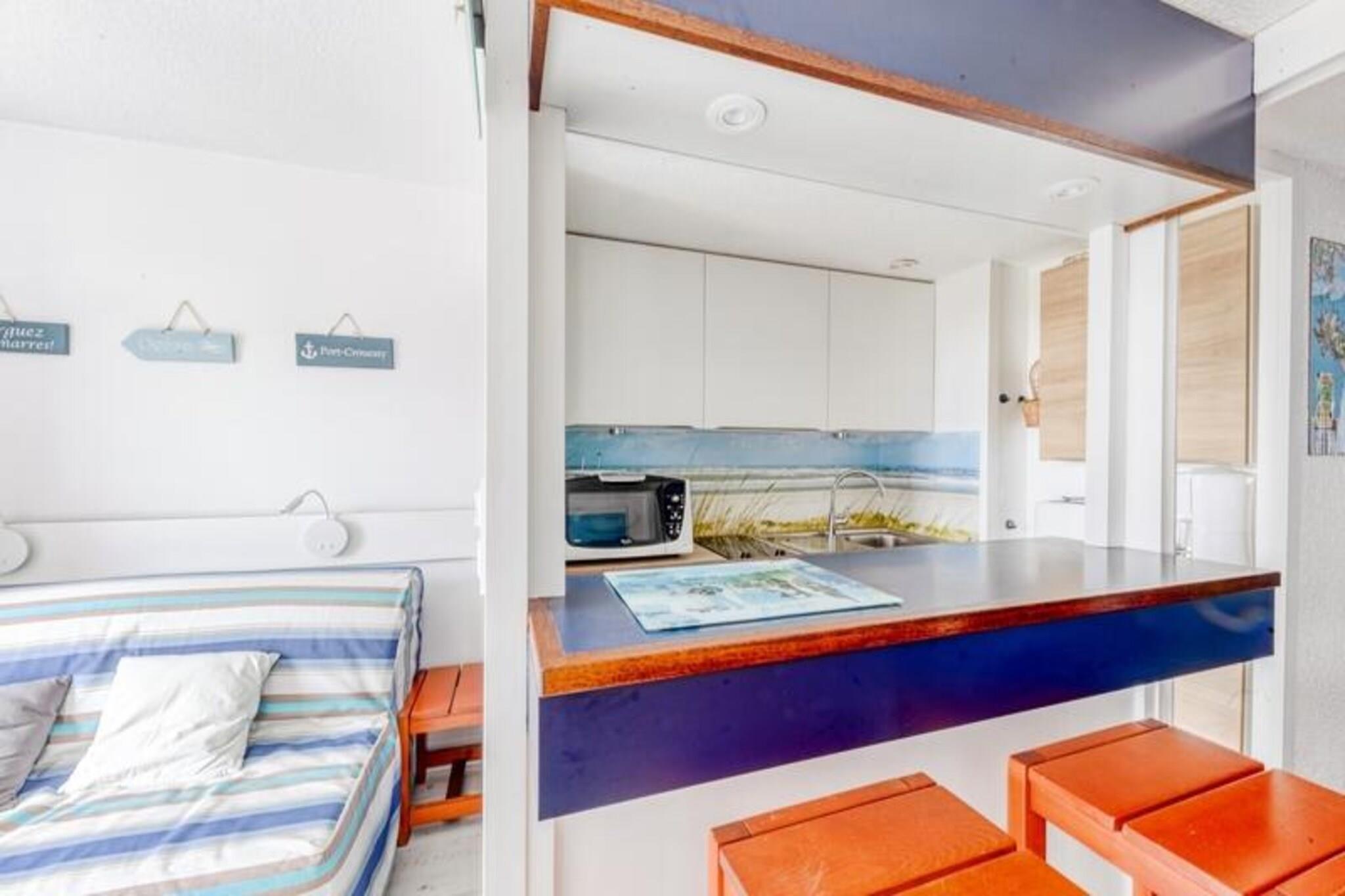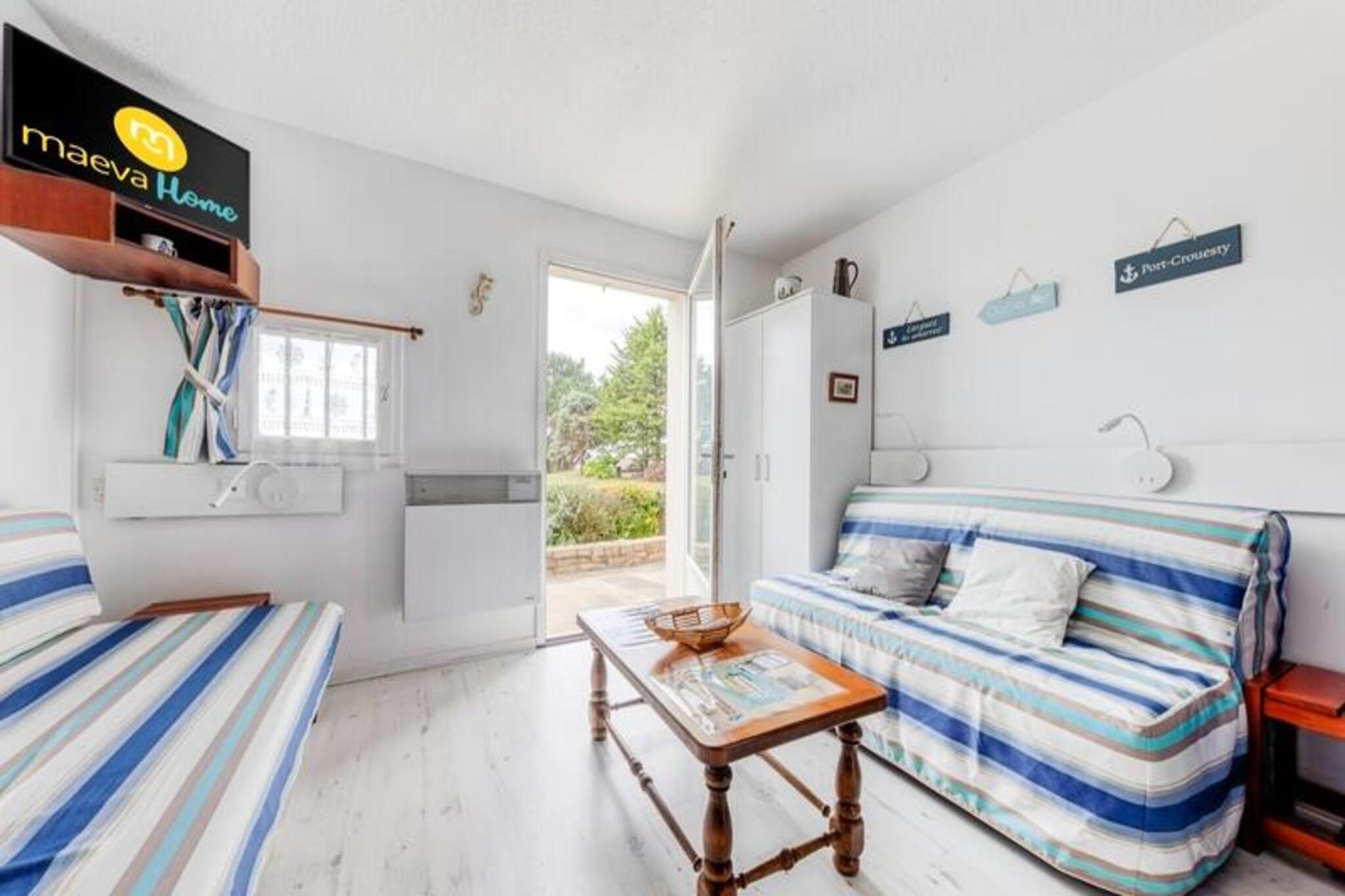 Segundo distrito de un pueblo acogedor, la residencia Port du Crouesty Village distribuye sus fachadas tradicionales bretonas a pocos pasos del puerto y del océano, en la península de Rhuys, entre el golfo de Morbihan y la bahía de Quiberon. Disfrute de sus vacaciones en Bretaña en elegantes casas de granito con tejados de pizarra y balcones de madera blanca. A sólo 300 metros de la playa de Fogeo, de un kilómetro de longitud, le esperan apartamentos confortables y totalmente equipados. Explore la amplia gama de actividades de ocio que se ofrecen en el lugar, desde natación hasta voleibol de playa, a 200 metros de los restaurantes y tiendas de Port Crouesty. ¡O también podrás disfrutar del placer de un fin de semana de talasoterapia en Bretaña, gracias al acceso directo al centro de talasoterapia Miramar Crouesty! Apreciarás: La playa de Fogeo y sus actividades de ocio a unos 300 metros. Acceso directo al centro de talasoterapia Miramar Crouesty. Alojamiento confortable a pocos pasos del puerto, el mar, tiendas y restaurantes. Su alquiler vacacional incluye: 1 salón, 1 cocina, 1 dormitorio, 1 baño, 1 aseo independiente, 1 terraza y 1 plaza de aparcamiento. Las ventajas de su alquiler: Apartamento con hermosa terraza, vista al mar y orientación sur. Cocina reformada en mayo de 2022. Superficie: 27 m². Ubicación: Planta de alojamiento: Planta baja, edificio Bretagne Douce Acceso a playa o pista: Acceso directo al mar (junto al mar) Distancia de pistas al mar: entre 100 y 500 Distancia comercial: entre 100m y 500m Actividades a distancia: entre 100m y 500m Número de niveles de vivienda: Una sola planta Composición de la estancia: Sofá estándar: Sí Plazas para sentarse en el sofá: 3 Sofá convertible: Sí Número de camas en el sofá convertible: 2 Mesa en el comedor: Sí Número de sillas (o taburetes): 5 Mesa de centro: Sí Lado de la comida: Tipo de cocina: Semiabierta Composición de la habitación: Camas dormitorio doble: 1 Composición del baño: Un inodoro privado dentro del alojamiento: Sí Exteriores: Terraza: Descubrimiento Vista terraza: Mar Orientación terraza: Sur Etiqueta maeva Home Confort: buena relación calidad-precio. Servicios correctos, alojamiento mantenido y equipado con las principales comodidades. Lo imprescindible para unas vacaciones al mejor precio. Acceso Wifi - Con suplemento - sujeto a disponibilidad. Se admiten mascotas - Además, consultar precios directamente con la residencia. Kit Bebé - Sujeto a disponibilidad: 1 cuna plegable (norma NF EN 716), 1 silla para bebé (a partir de 6 meses), 1 cambiador, 1 cochecito: el contenido puede variar según la residencia) - precios a consultar en recepción. Ropa de cama - Con coste adicional - El contenido puede variar según la residencia: sábana bajera, sábana o funda nórdica y funda de almohada. Toallas - Cargo extra. Posibilidad de cambio de ropa de diario disponible, consultar precios en recepción. Limpieza final de estancia - Servicio de limpieza obligatorio a pagar al realizar el check-in o a la llegada. Estacionamiento - Al aire libre, gratuito sujeto a disponibilidad de espacios. Piscina - Abierta hasta el 15/09/2024 Tasa turística (cargo adicional) - El pago de la tasa turística se realiza a través de su espacio personal: https://mon-compte.maeva.com, el importe varía según la ubicación. Gratis para menores de 18 años. Televisión - Dependiendo de su alojamiento. Depósito (en euros) - 500 Limpieza final de estancia - Servicio de limpieza obligatorio a pagar al realizar el check-in o a la llegada. Ropa de cama - Cargo adicional.