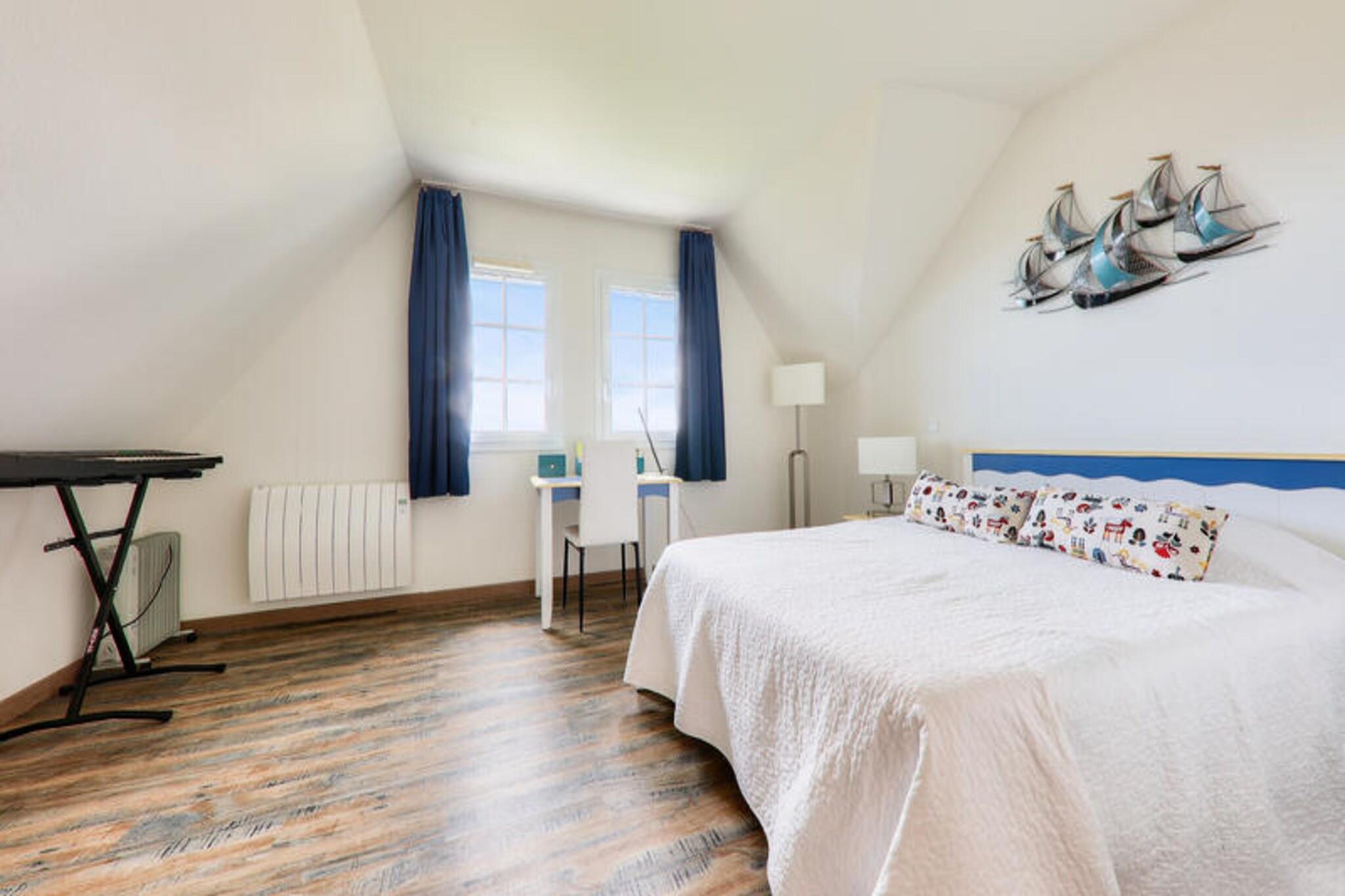 Denne komfortable lejlighed har to hyggelige soveværelser: det ene med en dobbeltseng og det andet med to enkeltsenge. I stuen er der en sovesofa til ekstra soveplads. To badeværelser, det ene med badekar og det andet med bruser, sammen med to separate toiletter, giver bekvemmelighed for familier eller grupper. Ejendommen er kæledyrsvenlig (mod betaling), og gæsterne har adgang til en fælles swimmingpool, åben fra midten af ??juni til midten af ??september, samt gratis udendørs parkering (afhængigt af tilgængelighed). Denne lejlighed ligger i landsbyens centrum, få skridt fra lystbådehavnen, sandstranden Fogeo og naturskønne kyststier. Nyd den pulserende atmosfære med nærliggende butikker, restauranter og et kasino, eller udforsk områdets naturlige skønhed gennem vandre- og cykelstier. Attraktioner såsom stranden og andre rekreative aktiviteter er inden for rækkevidde, og tilbyder noget for enhver rejsende. Den vestvendte lejlighed har balkon med havudsigt og lys opholdsstue. Køkkenet i amerikansk stil er fuldt udstyret med opvaskemaskine, køleskab og kaffemaskine, perfekt til at tilberede måltider. Yderligere faciliteter omfatter elektriske håndklædetørrere, opbevaring og valgfri WiFi og leje af sengetøj. Denne velbeliggende lejlighed tilbyder moderne bekvemmeligheder til en afslappende ferie ved havet.
