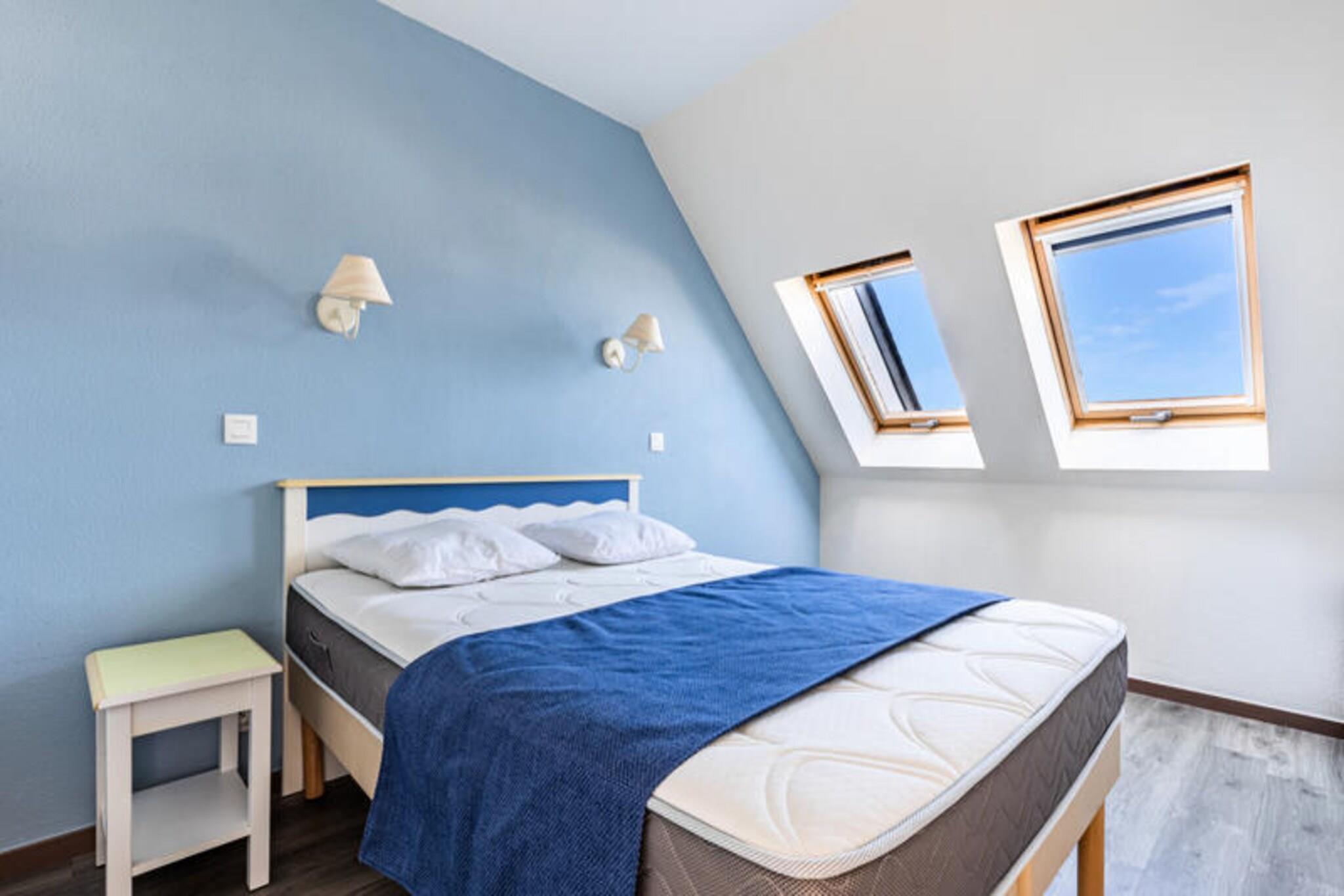 Denne charmerende 3-værelses lejlighed kan rumme op til 6 personer og er beliggende på første sal i en bolig nær havet. Lejligheden har to komfortable soveværelser: det ene med køjesenge og det andet med en dobbeltseng. Den rummelige stue har en sovesofa og en udtræksseng, ideel til yderligere gæster. Der er to badeværelser, det ene med bruser og det andet med badekar. Kæledyr er tilladt mod et ekstra gebyr, og der er dedikeret udendørs parkering for din bekvemmelighed. Ejendommen er ideelt beliggende nær marinaen og sandstranden Fogeo, hvilket gør den perfekt for dem, der nyder vandreture langs kysten eller strandaktiviteter. Det omkringliggende område byder på masser at udforske, herunder den livlige strandpromenade med butikker, et kasino og spisemuligheder. Boligen ligger også tæt på vandrestier, der byder på en smuk udsigt over havet og den omkringliggende natur. Gå en tur til landsbyens centrum på blot et par minutter, eller nyd de forskellige attraktioner, der gør denne region til en populær destination ved havet. Indvendigt indeholder lejligheden et fuldt udstyret amerikansk køkken med spiseplads, samt en balkon med udsigt mod vest, perfekt til afslapning udendørs. Opholdsstuen er lys og velindrettet, og lejligheden er udstyret med Wi-Fi-adgang (afhængig af tilgængelighed) og tv. Lejlighedens moderne faciliteter, herunder en vaskemaskine, sikrer et behageligt ophold, mens den fælles swimmingpool er åben fra midten af ??juni til midten af ??september.
